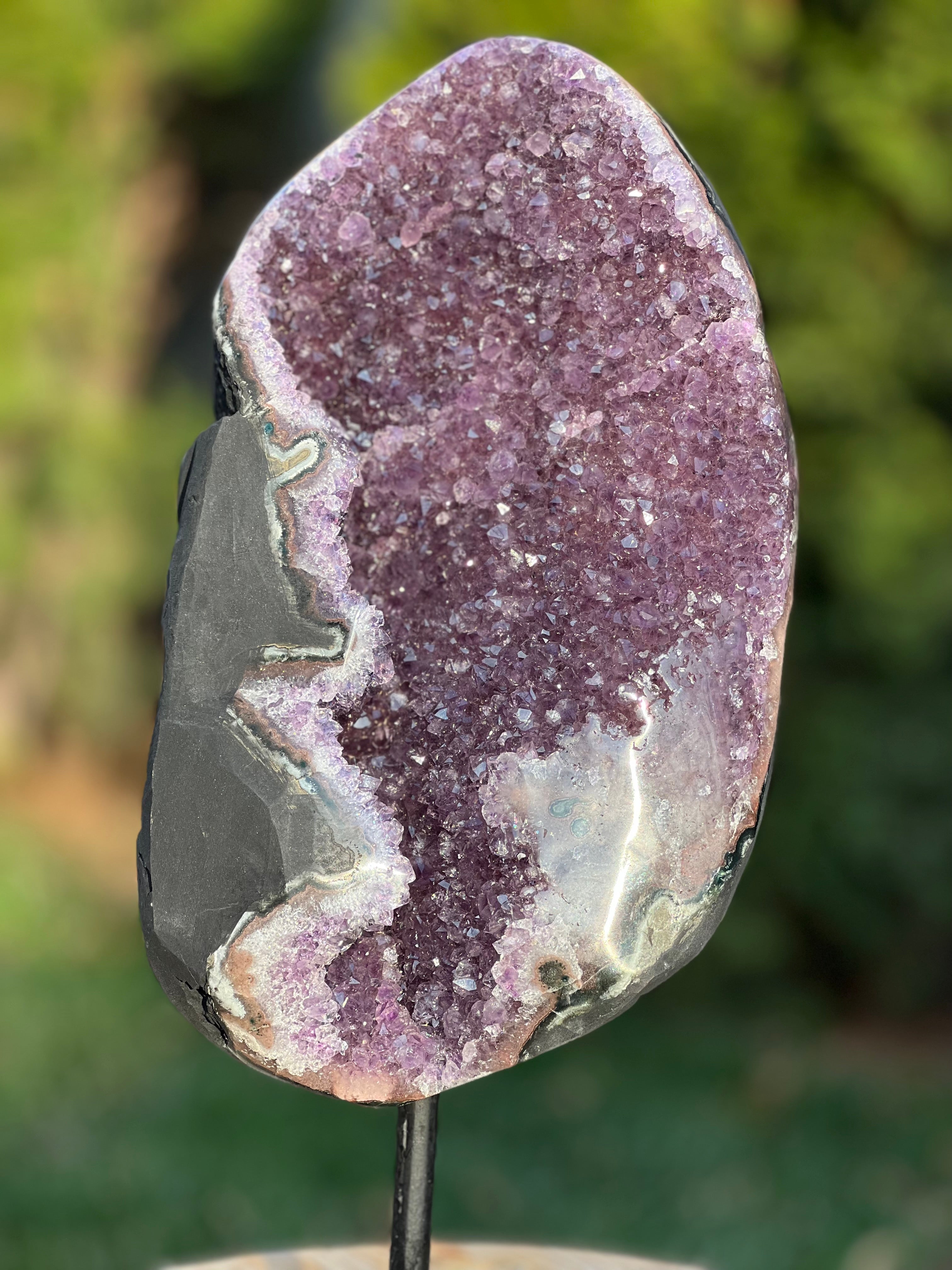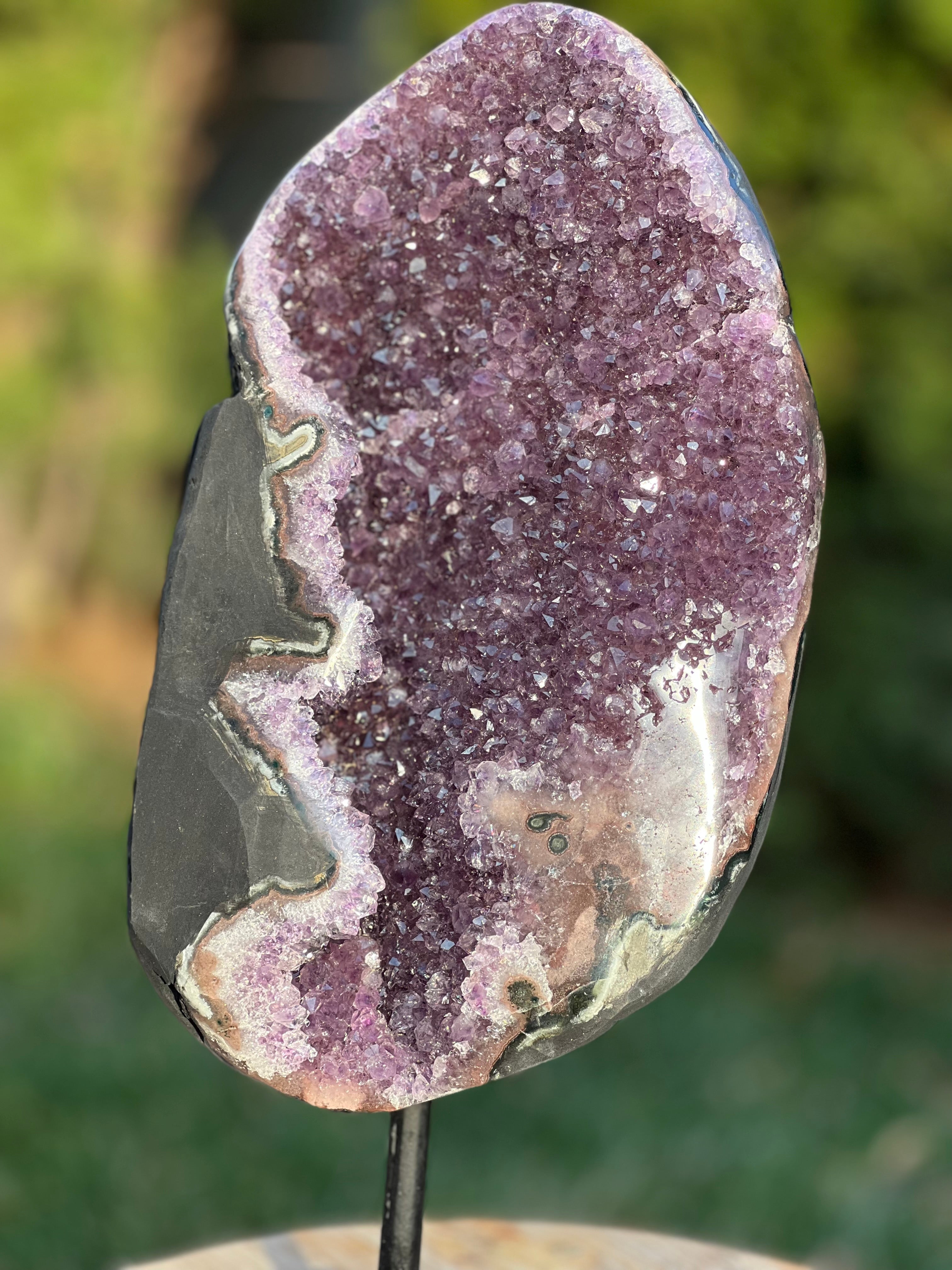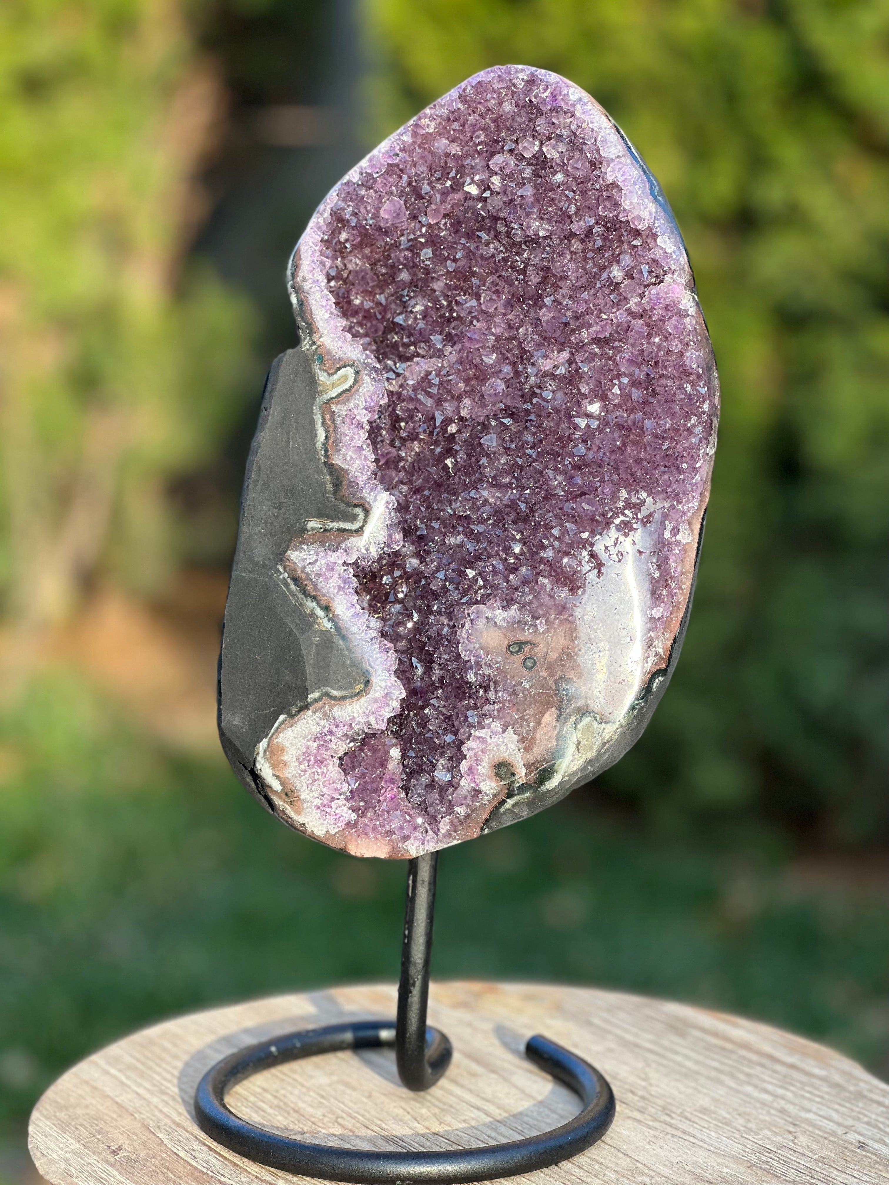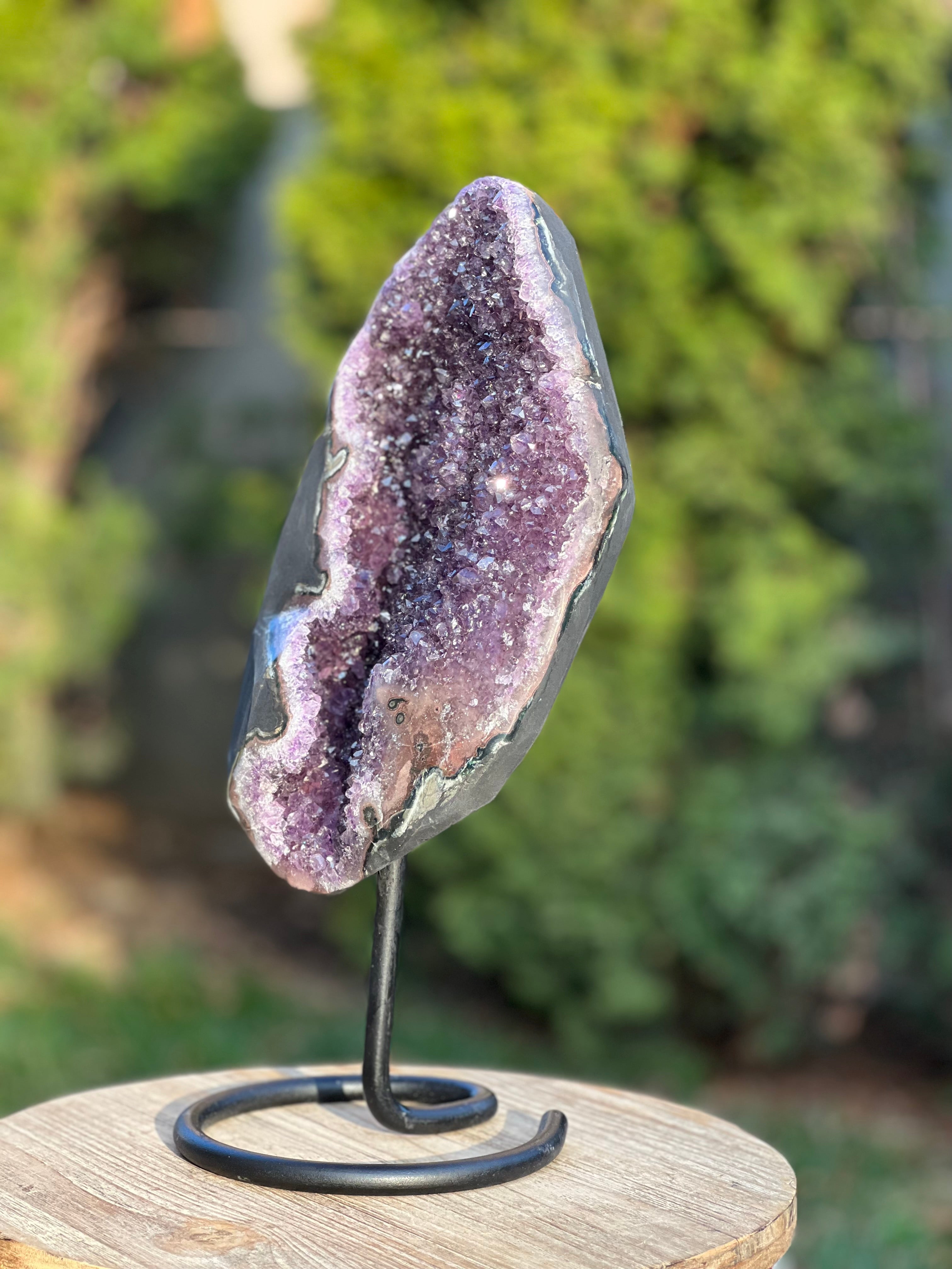 Uruguayi ametiszt geoda XL modell 2, méret (állvánnyal együtt): 39 cm * 17 * 9 cm