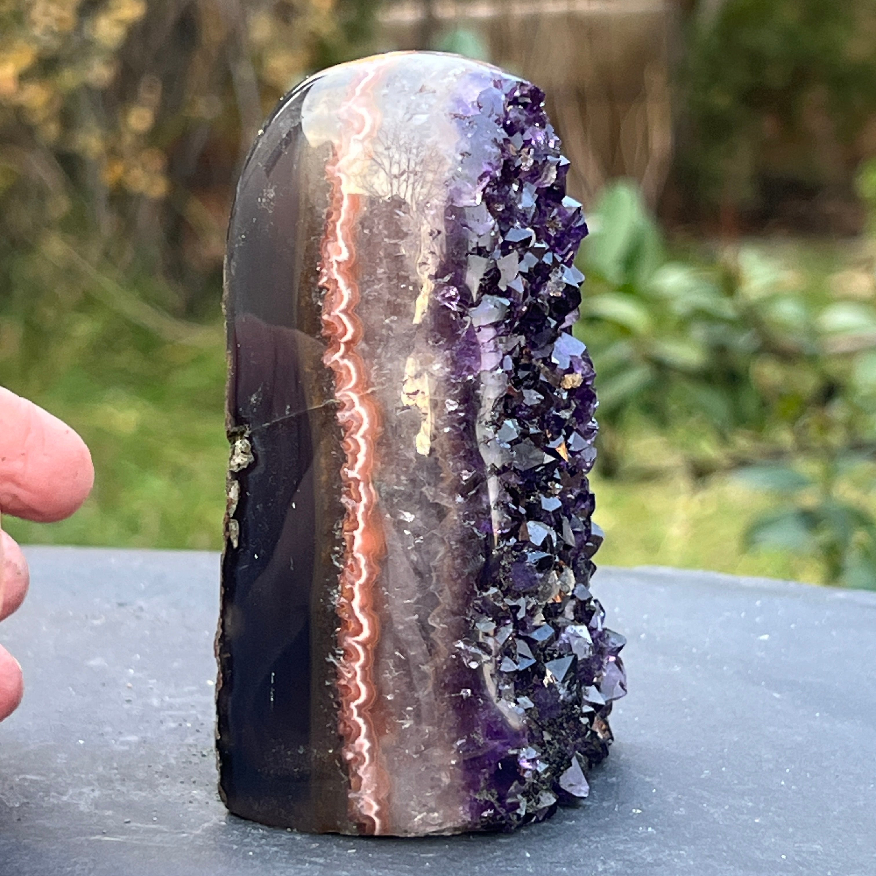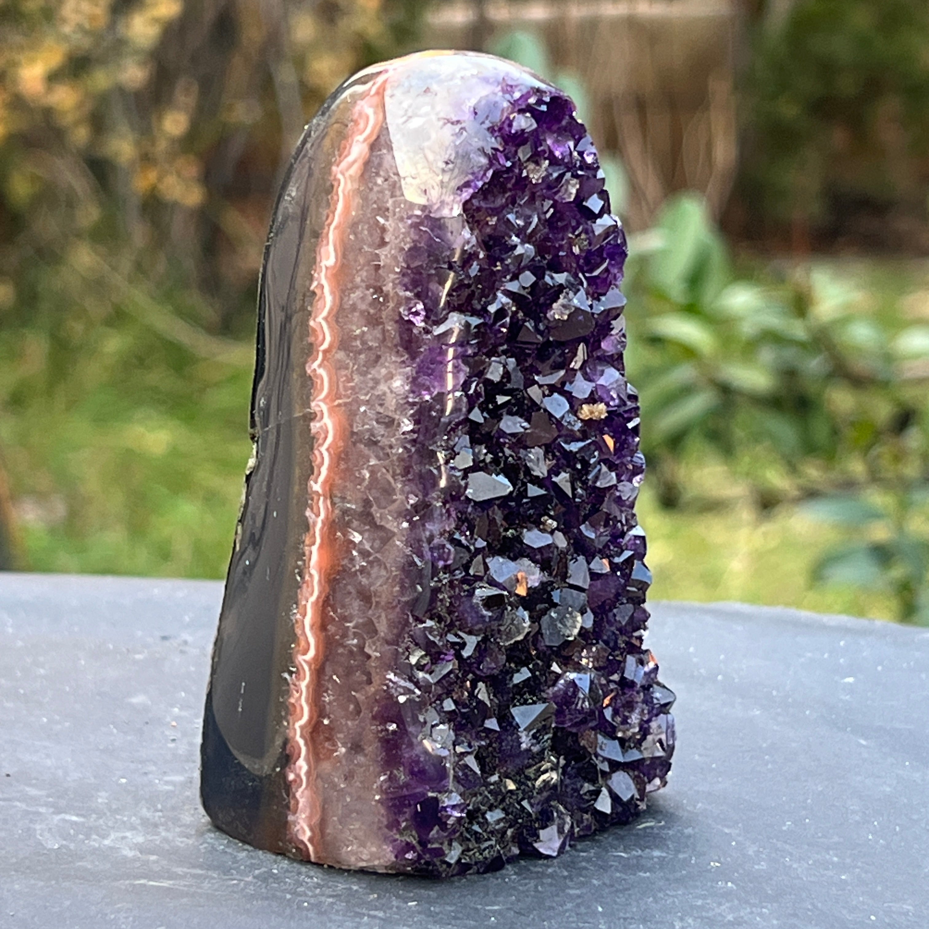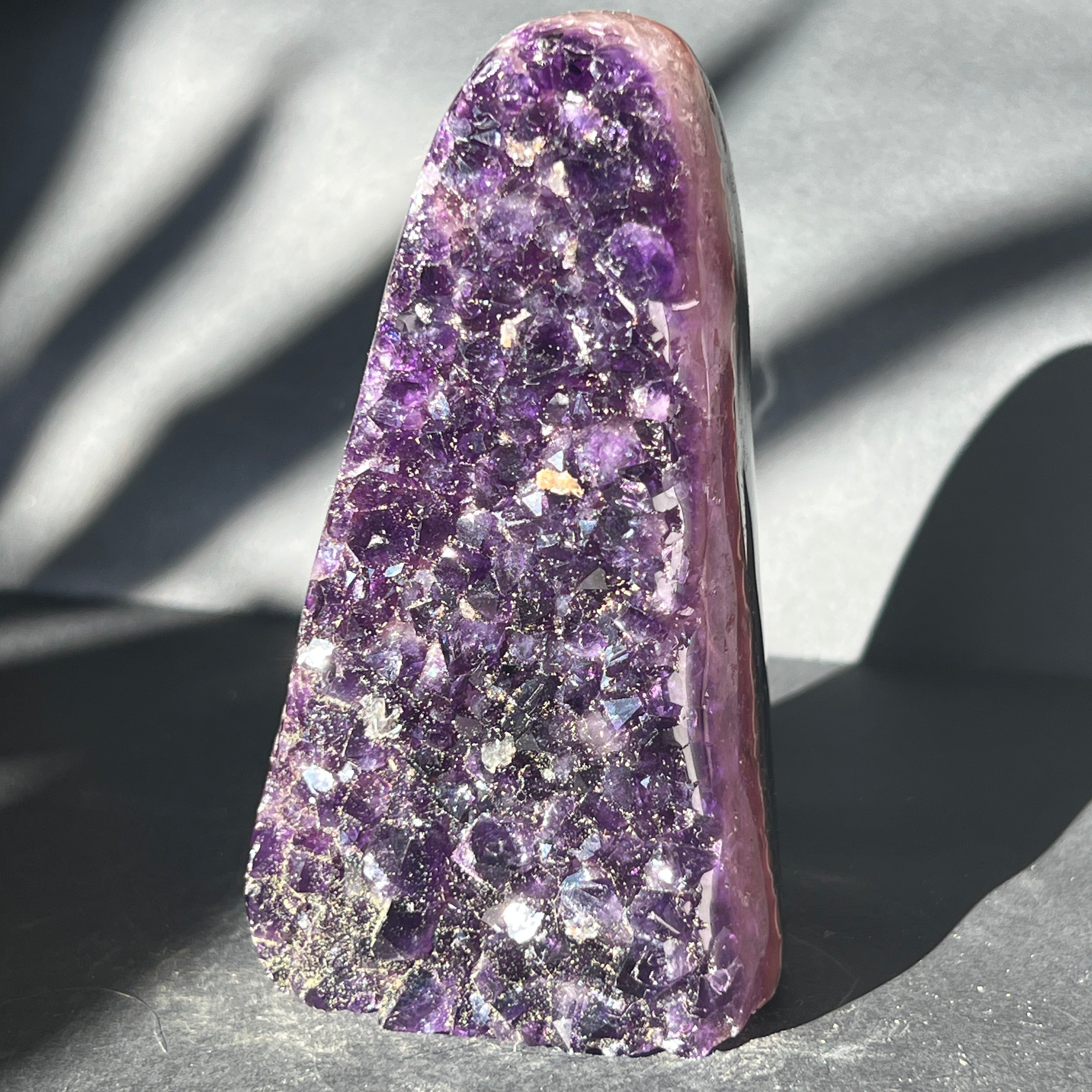 Uruguayi ametiszt geóda AAA modell 19, méretei 10 * 4,5 * 4,7 cm, 405 gramm