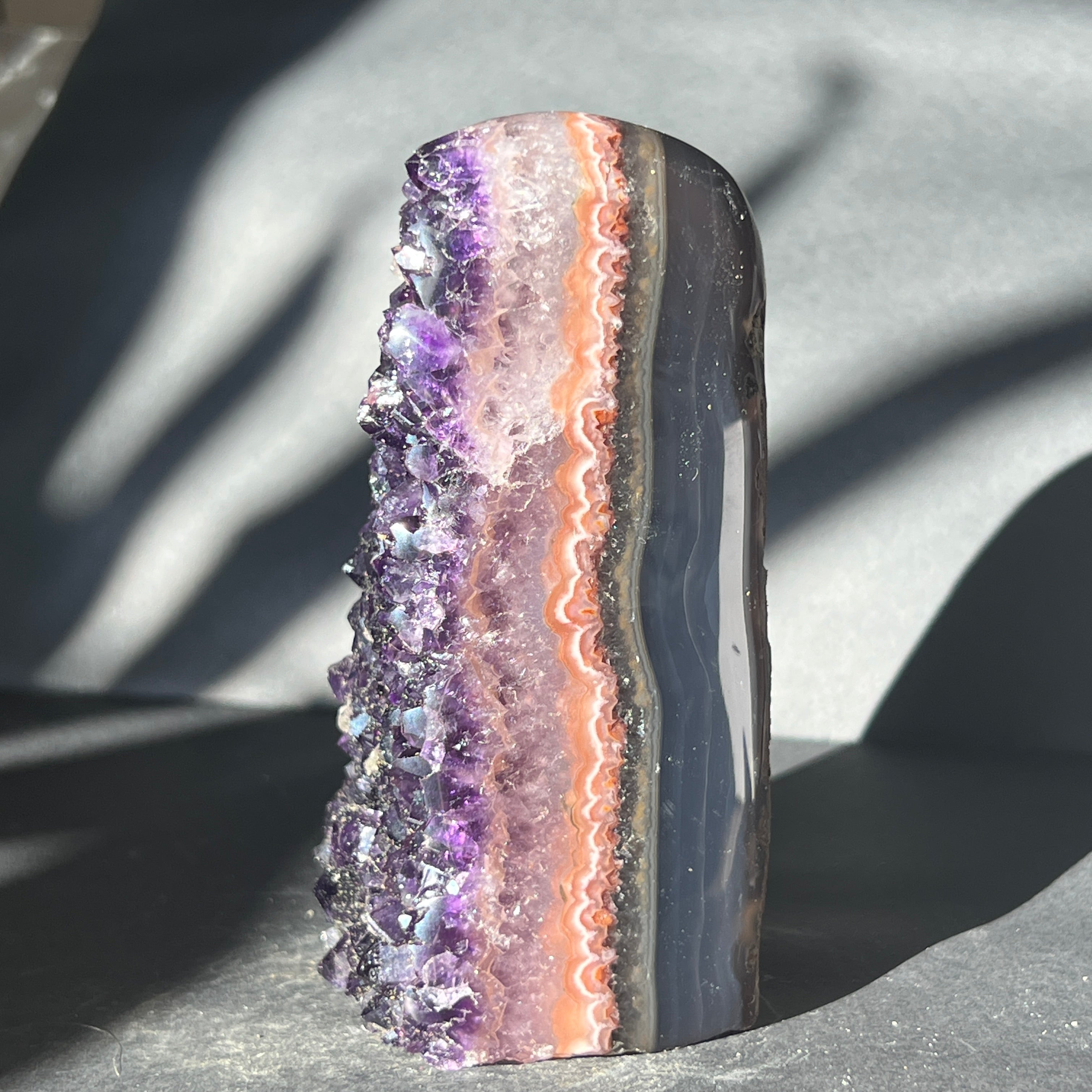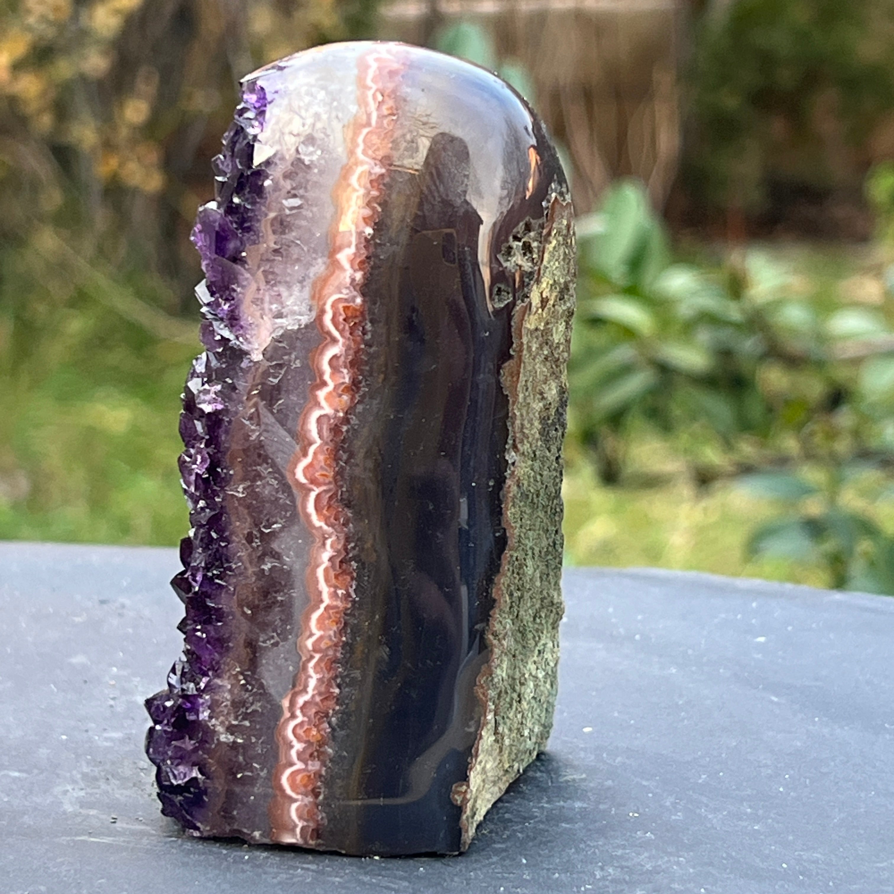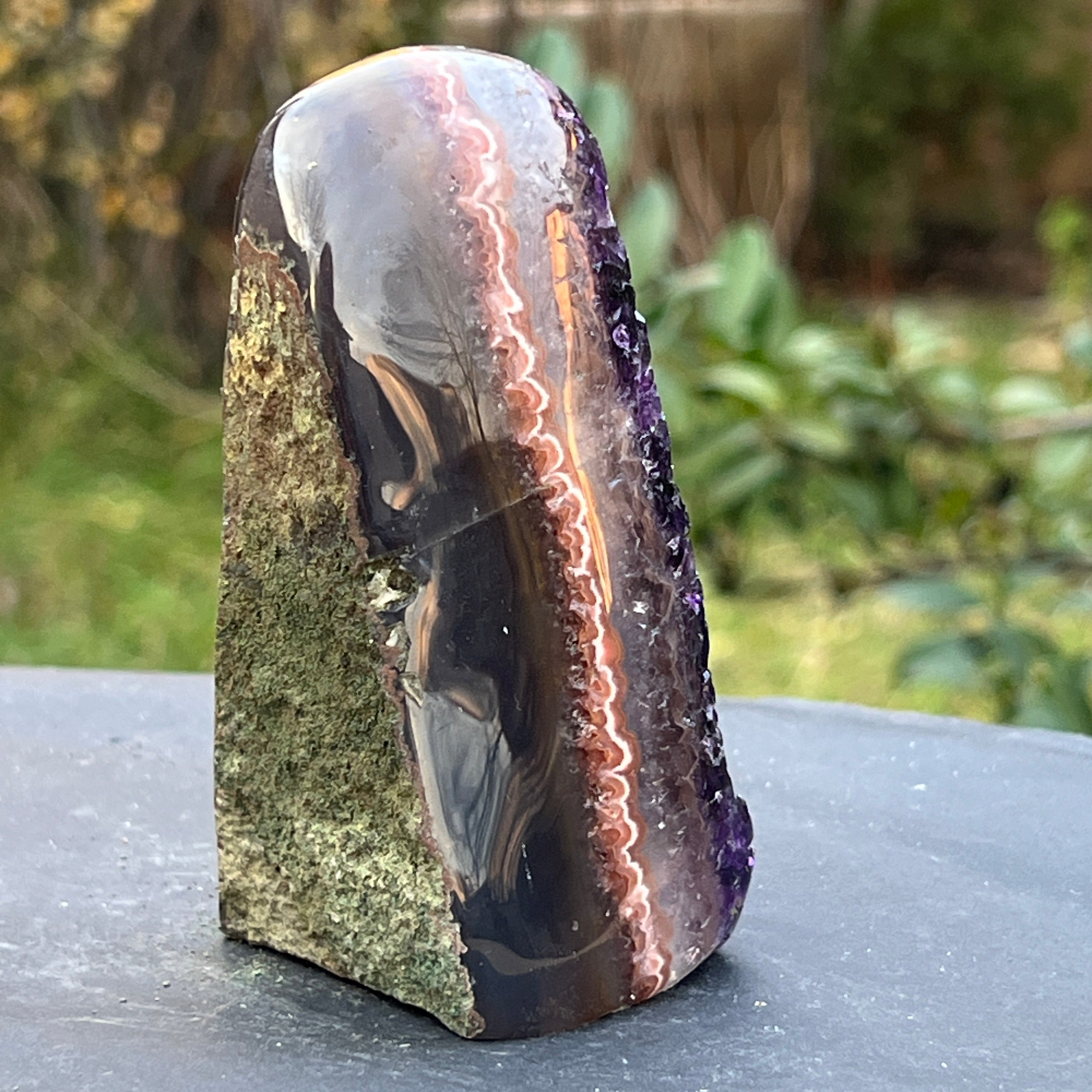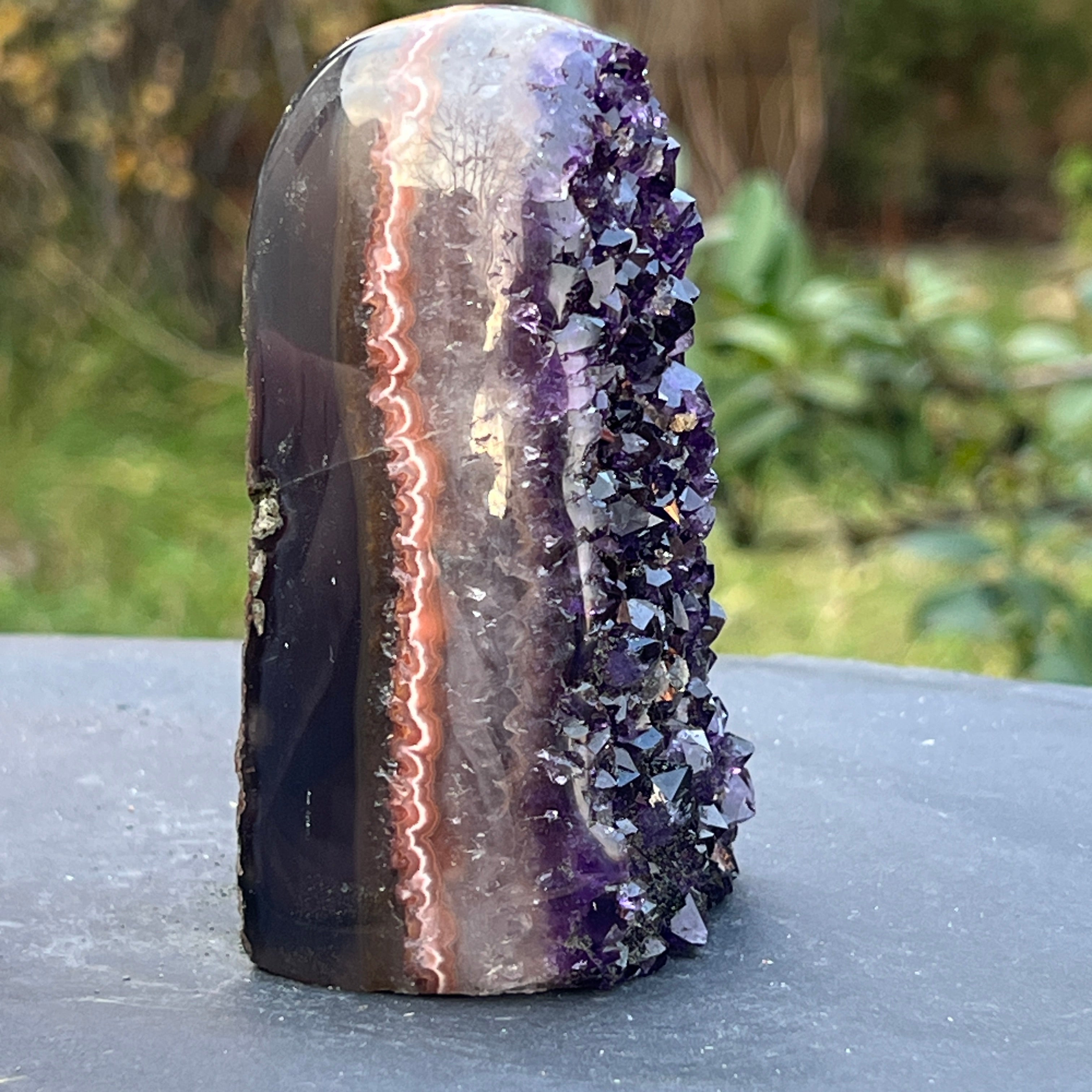 Uruguayi ametiszt geóda AAA modell 19, méretei 10 * 4,5 * 4,7 cm, 405 gramm