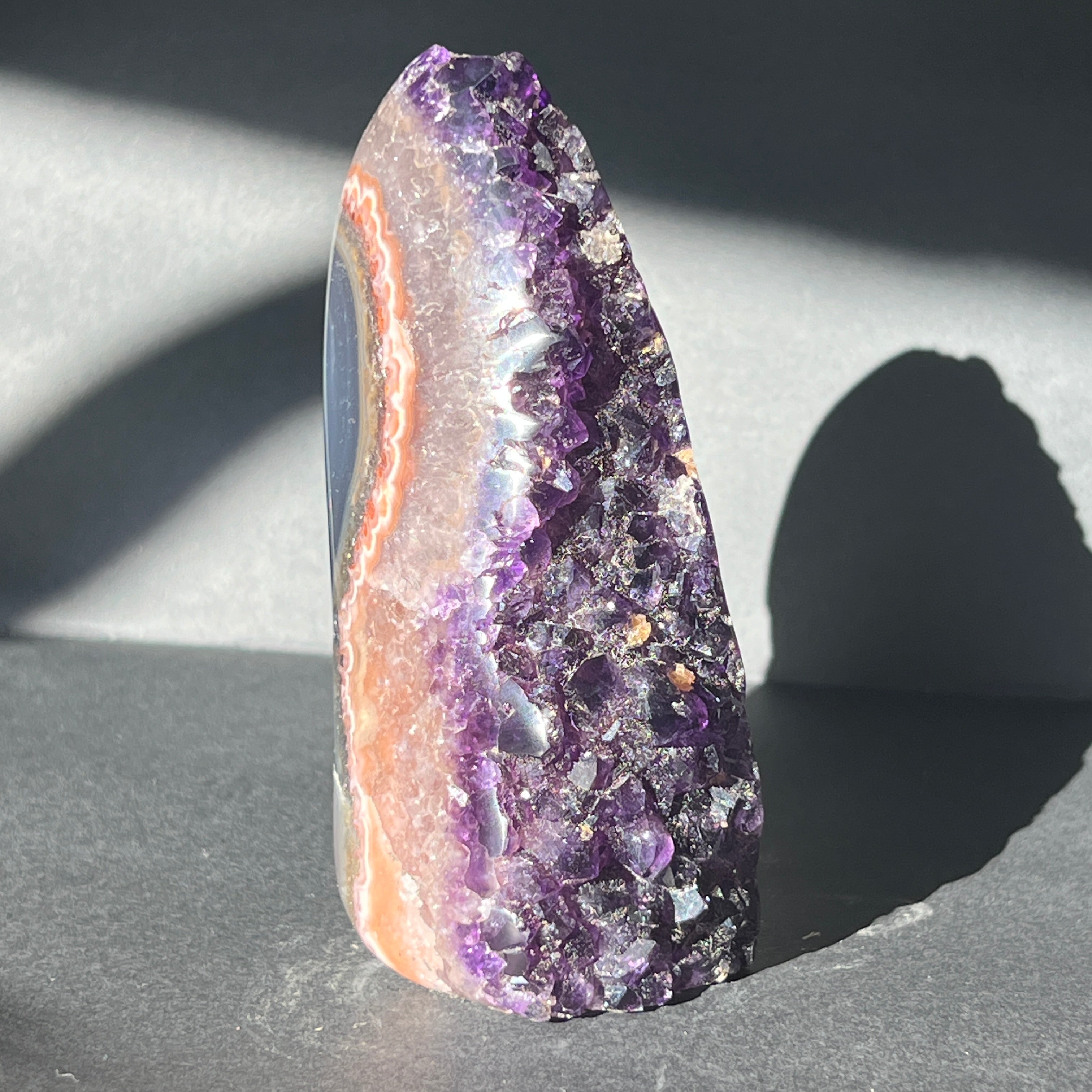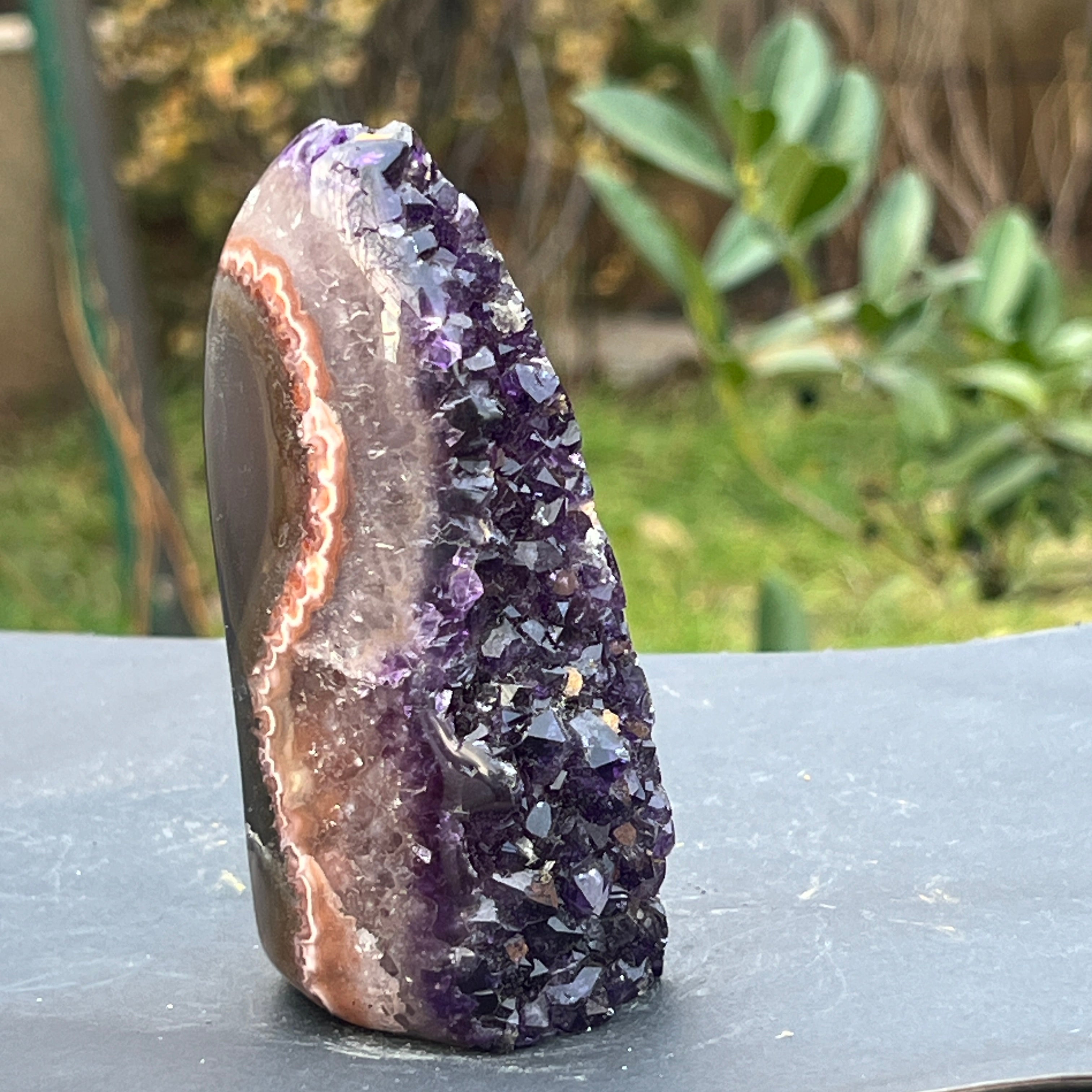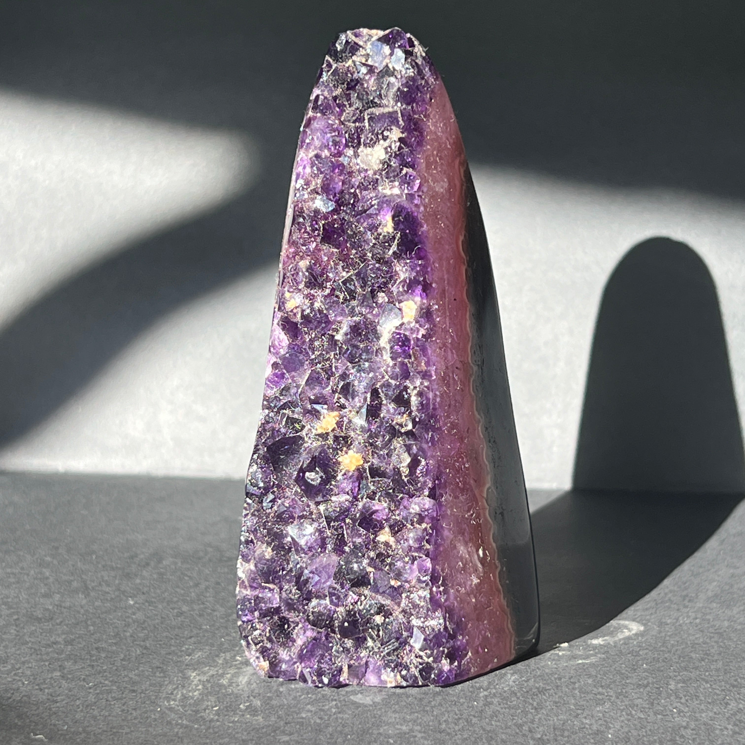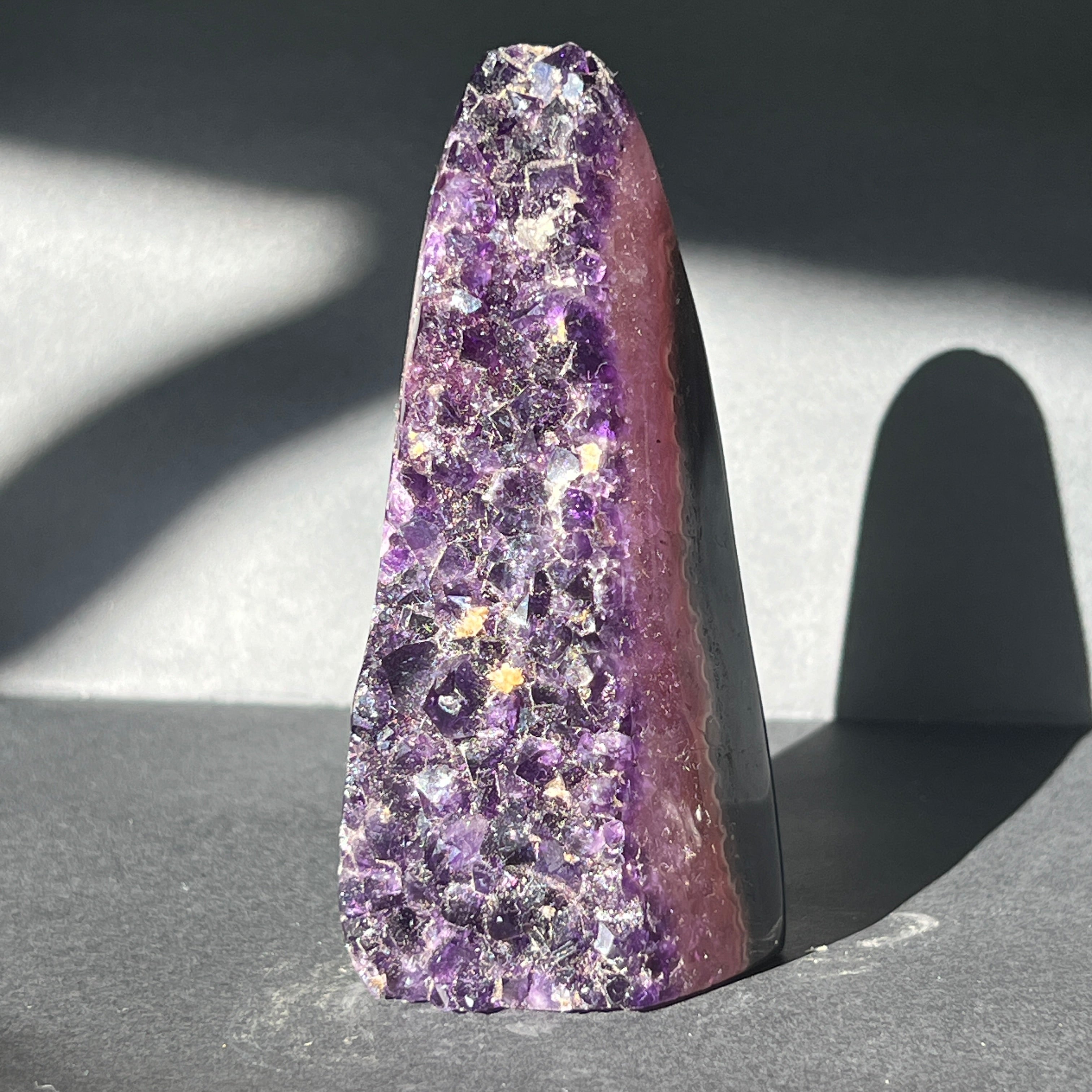 Uruguayi ametiszt geóda AAA modell 8, méretei 10,1 * 4,5 * 5 cm, 330 gramm