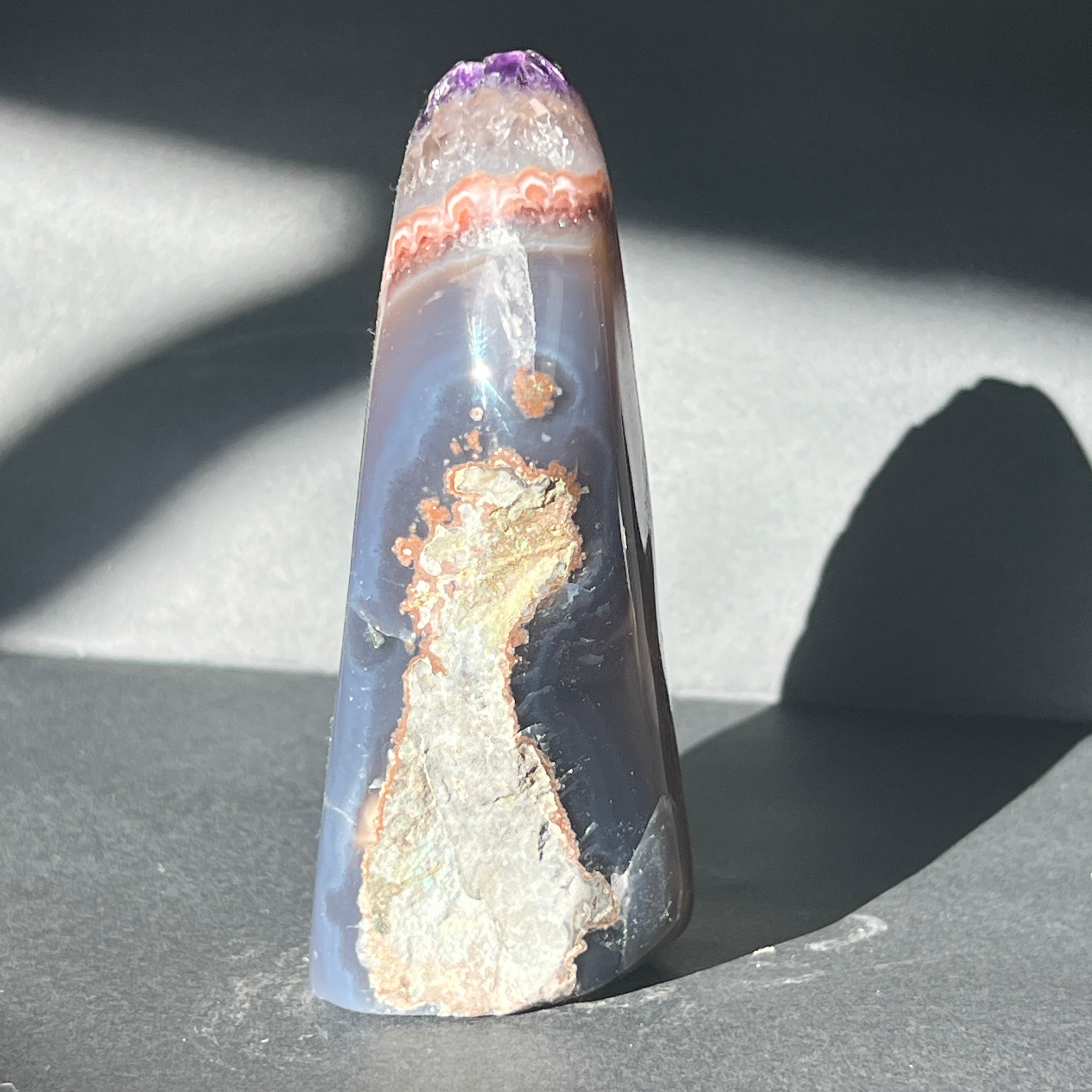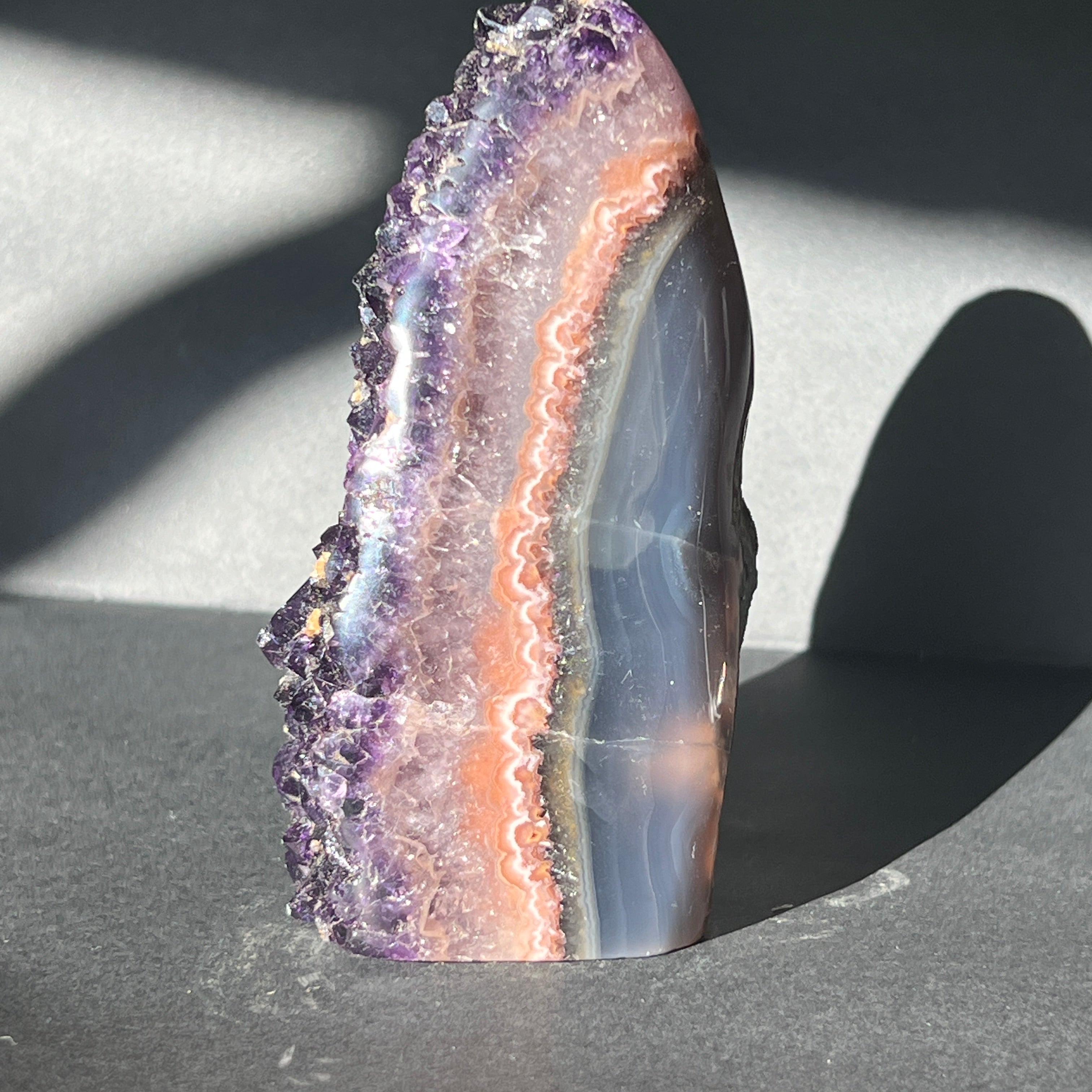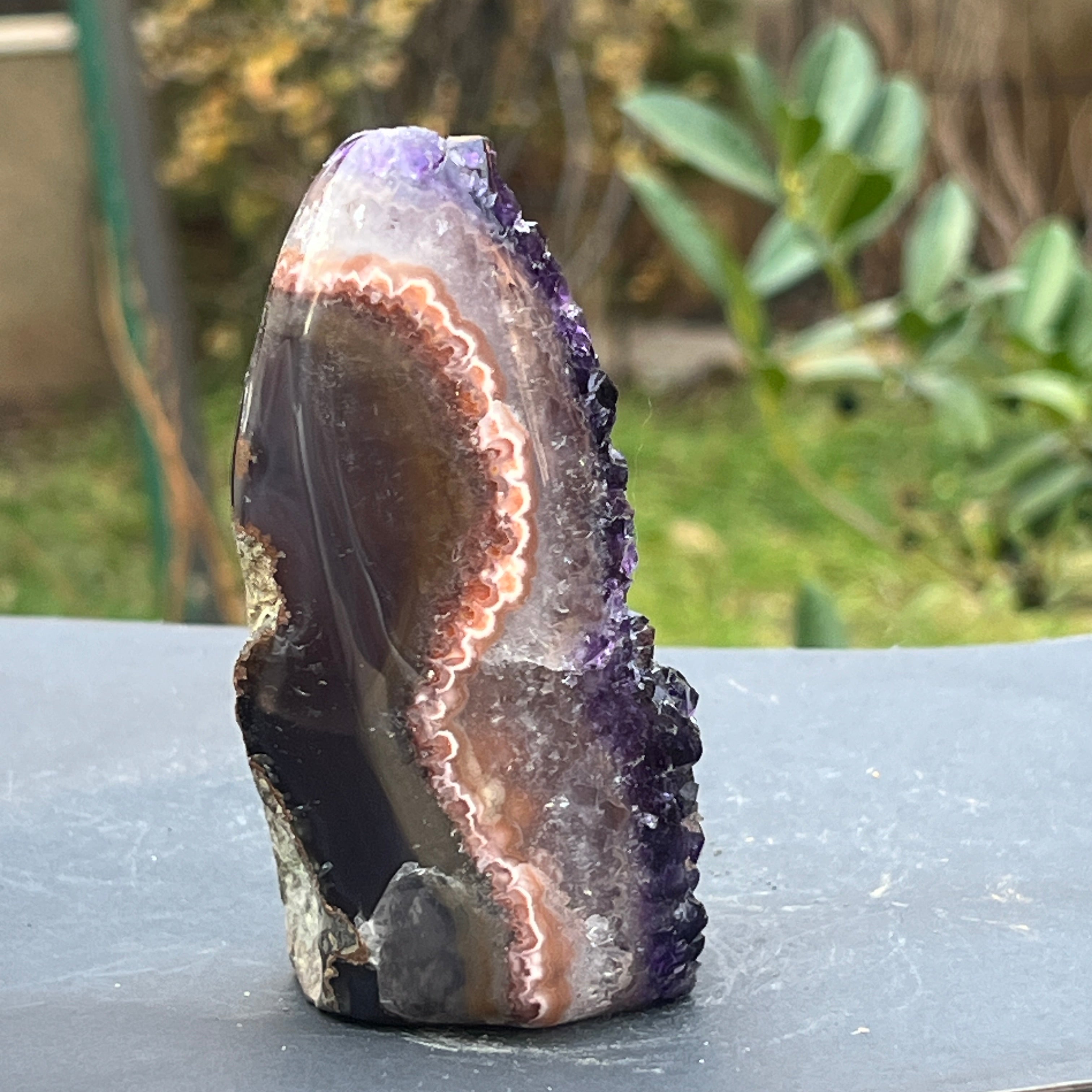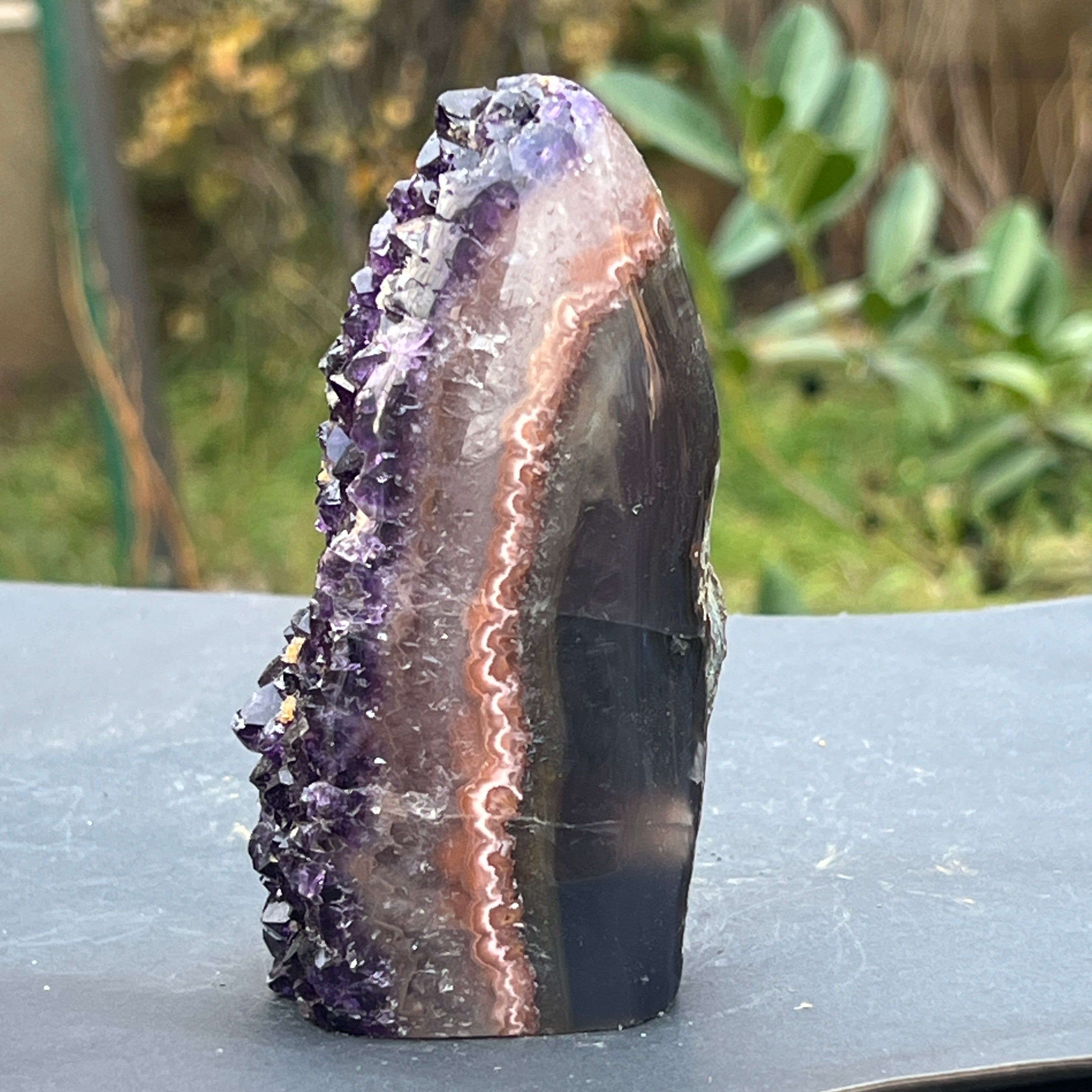 Uruguayi ametiszt geóda AAA modell 8, méretei 10,1 * 4,5 * 5 cm, 330 gramm