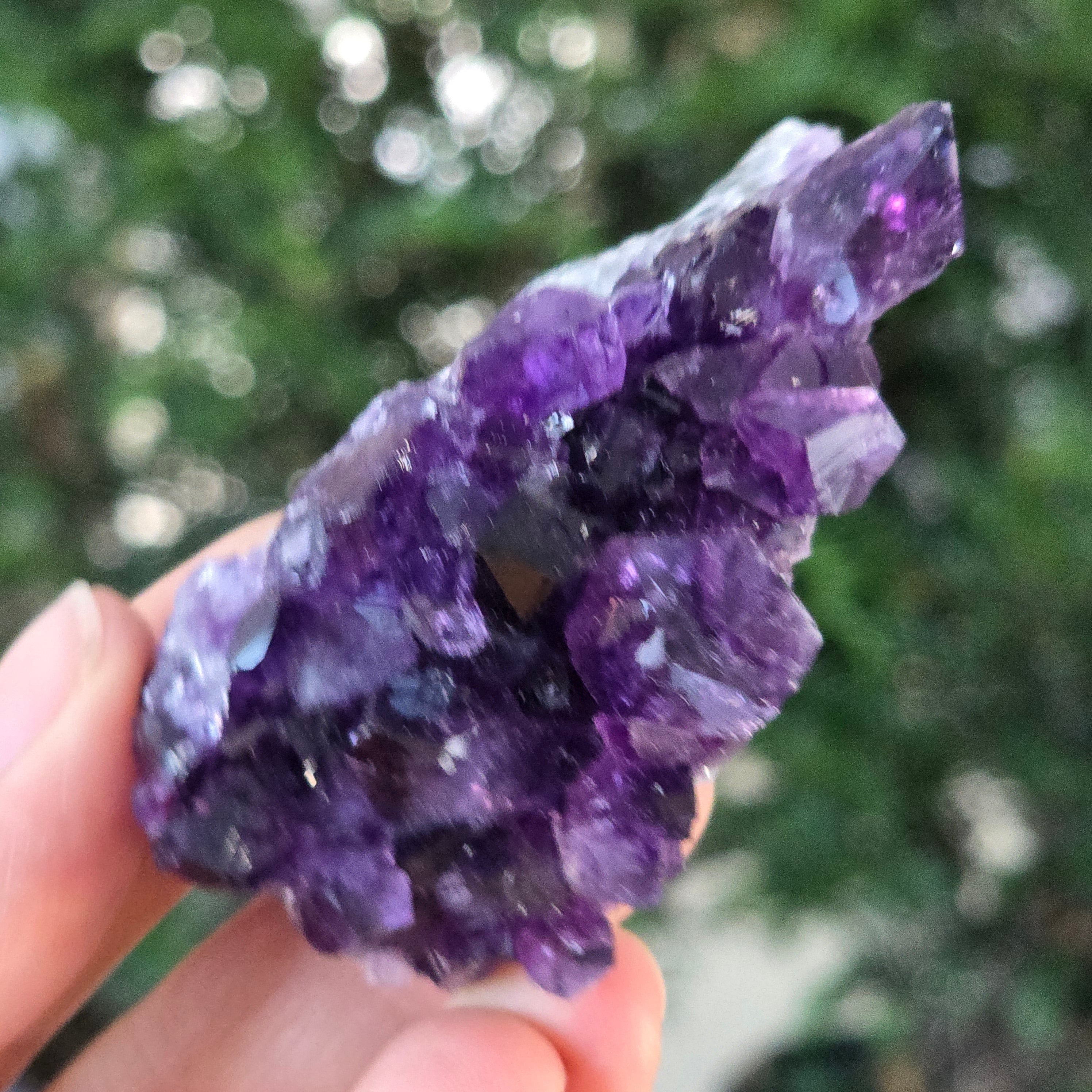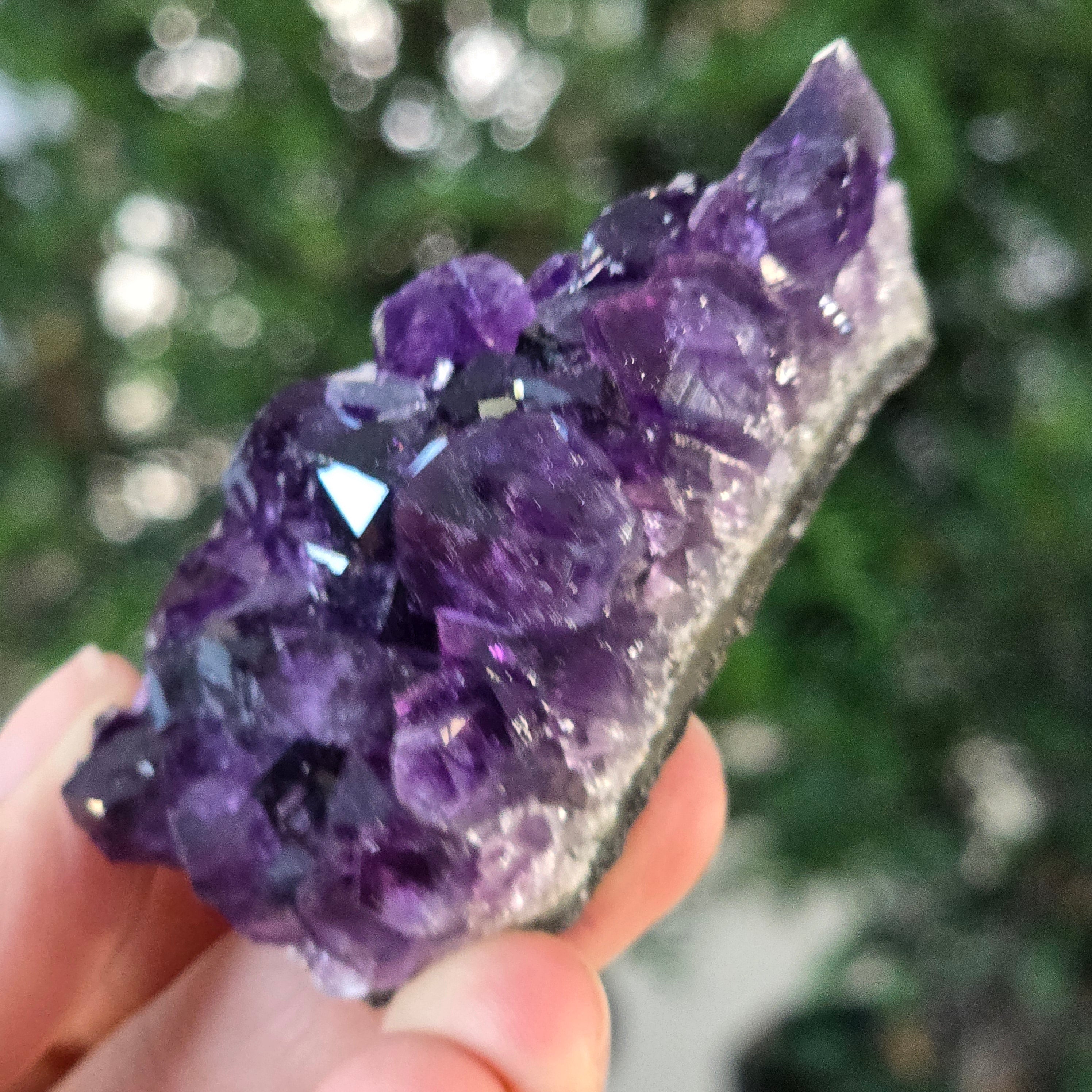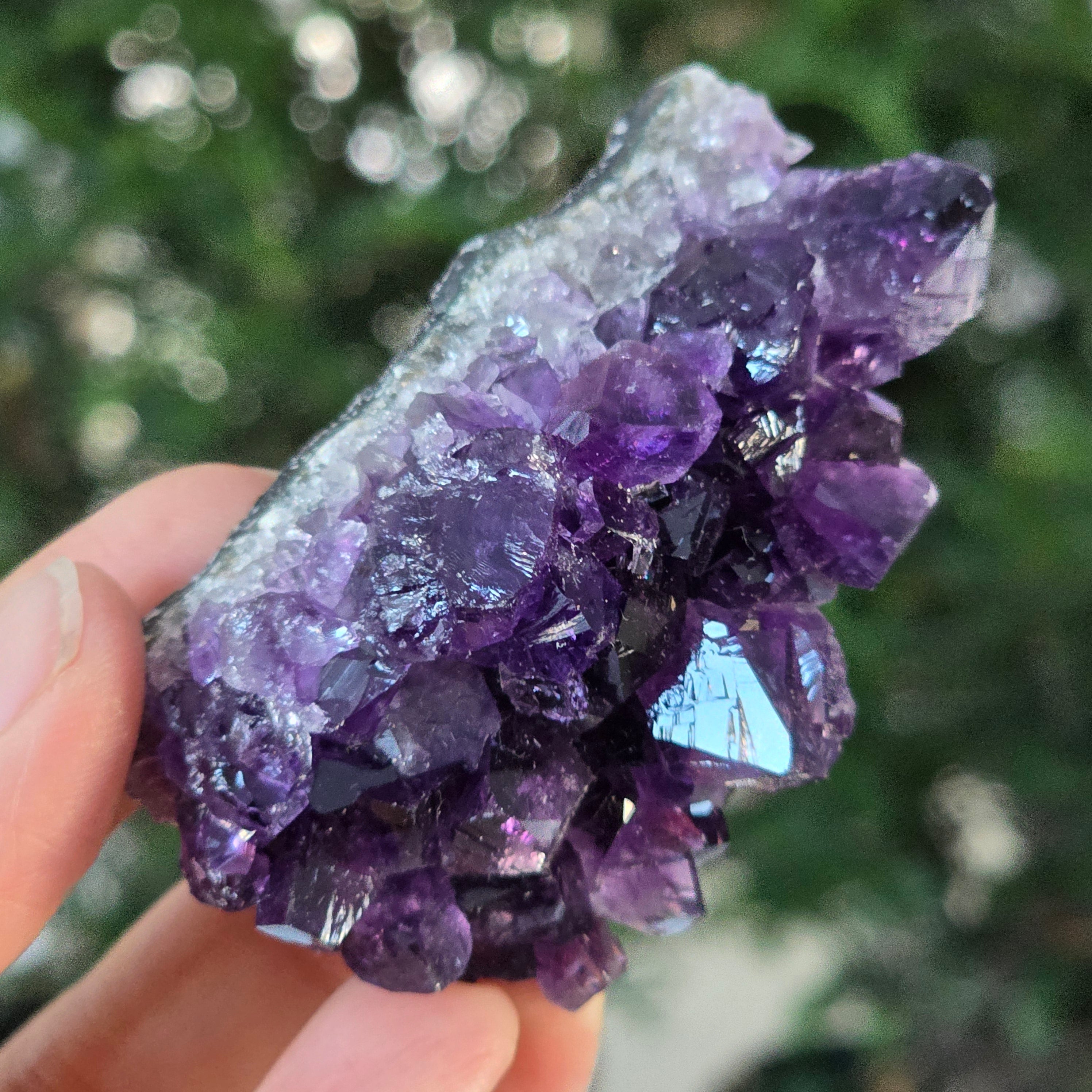 Ez az uruguayi ametiszt klaszterkivételes minőségű, magas tisztító és tisztánlátó rezgéseket hordoz. Tökéletesen formált kristályai a fényt hipnotikus lila árnyalatok táncába vonják – ritka darab, ideális gyűjtők számára, vagy olyan terekbe, amelyek kifinomultságot és valódi energetikai egyensúlyt igényelnek.