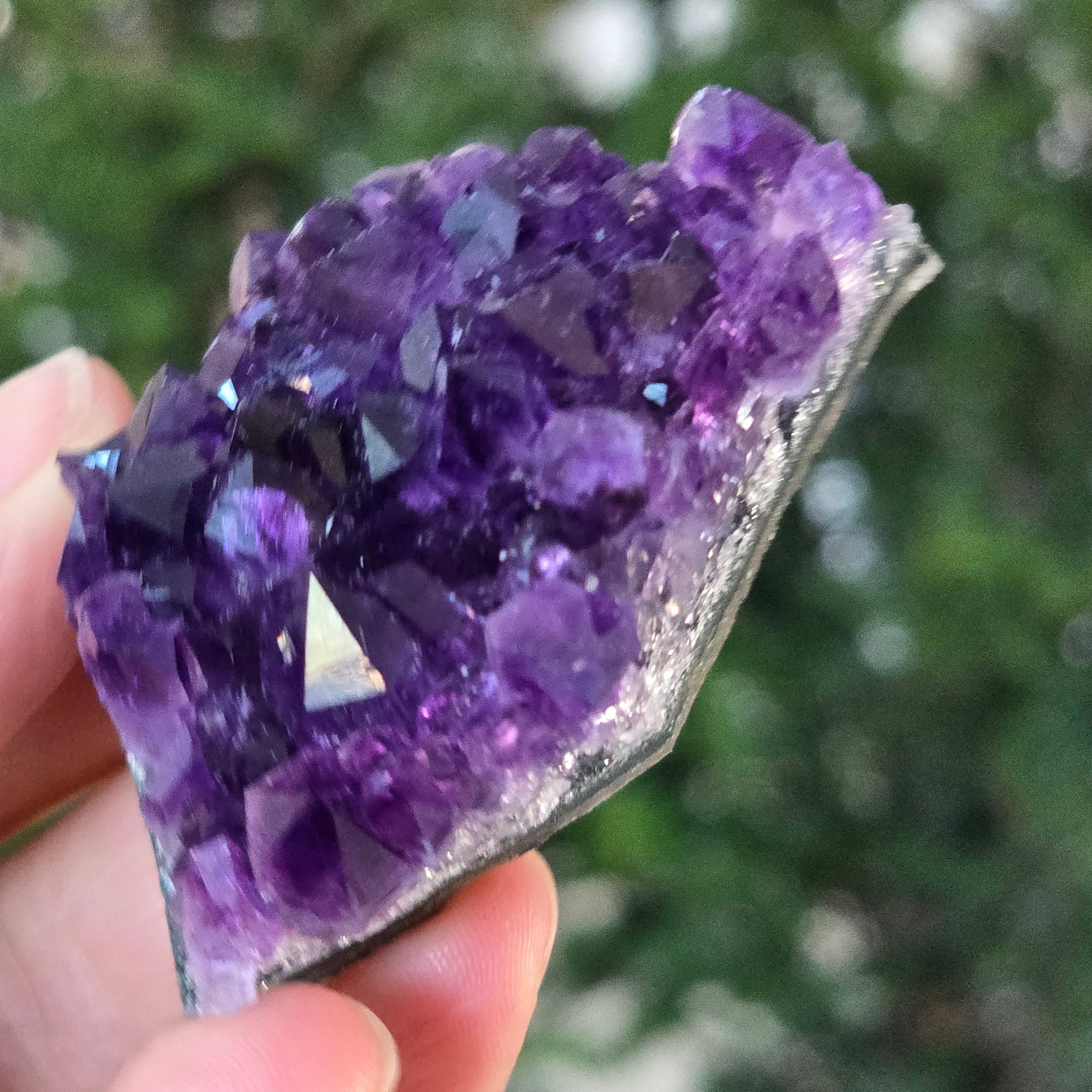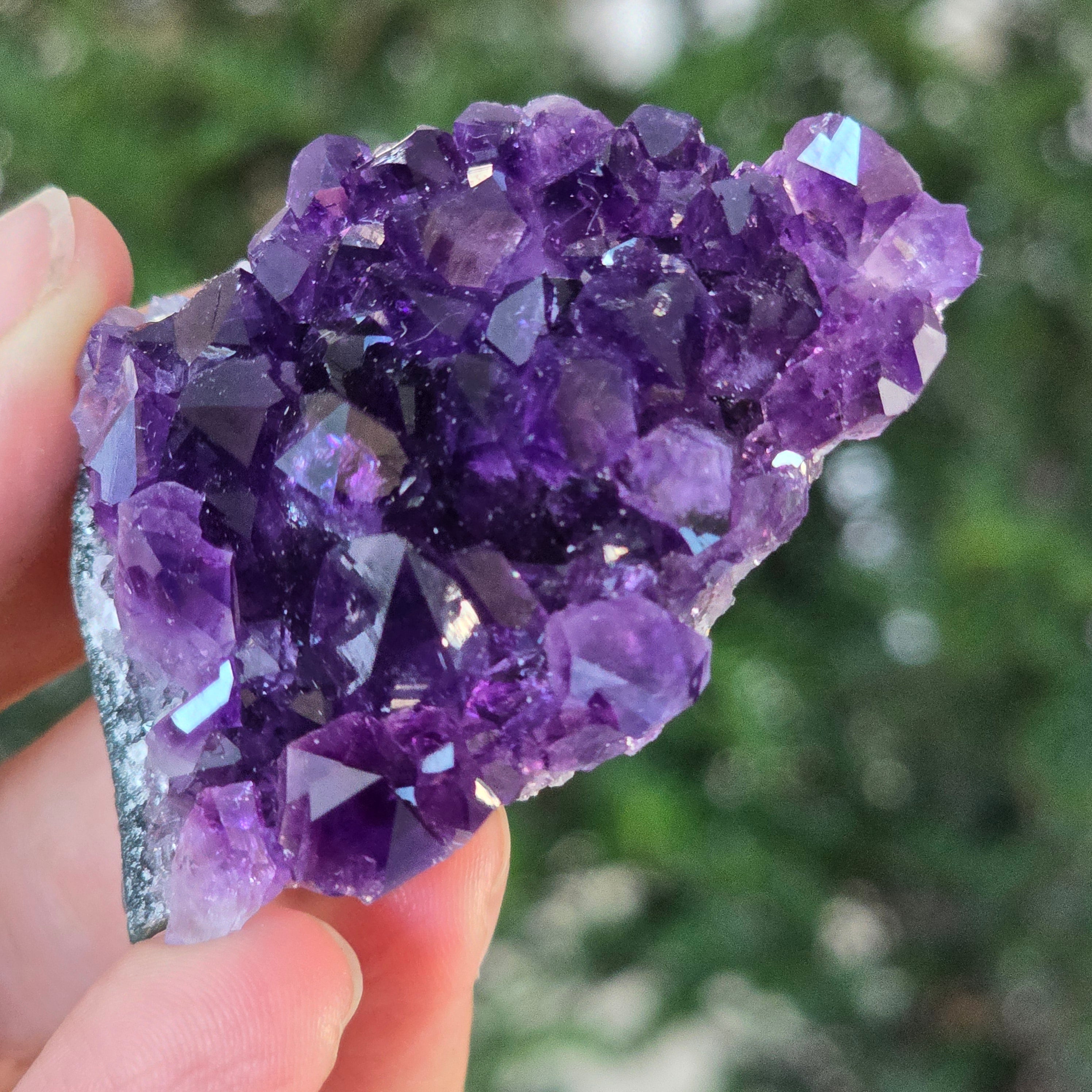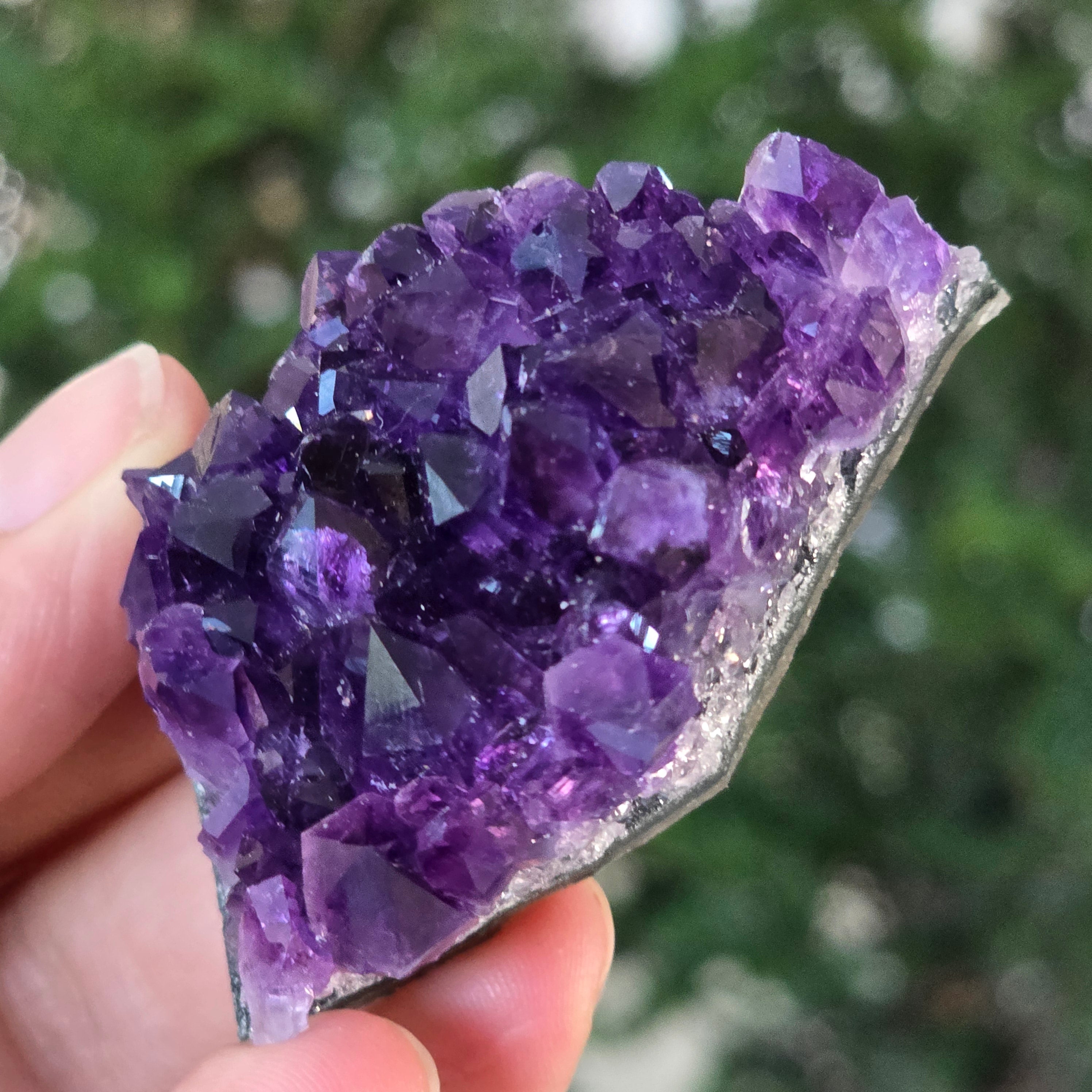 • Szín: intenzív lila fényes reflexekkel, mély árnyalat, amely az uruguayi ametisztre jellemző