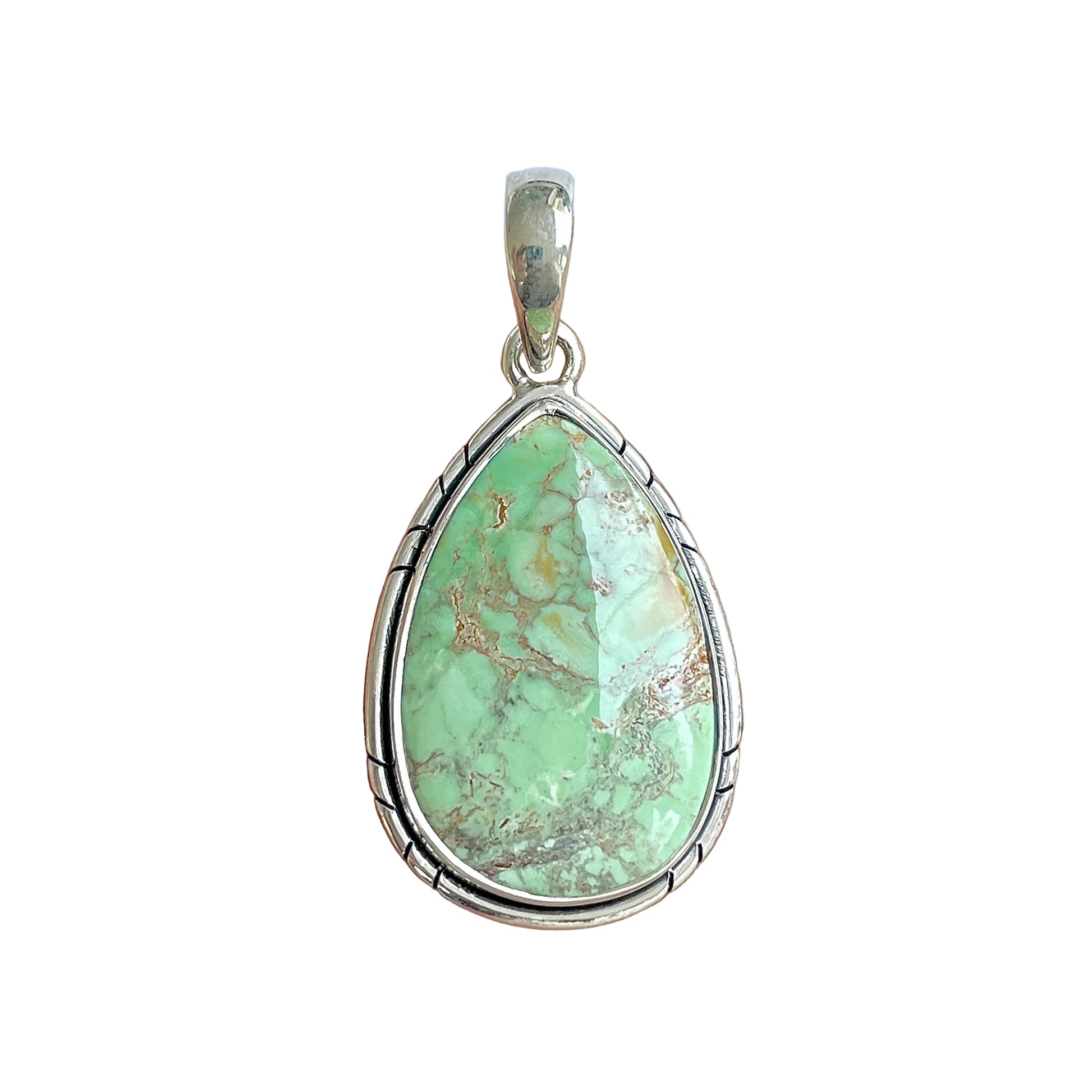 Ez az egyedi variszcit medál a természet szépségét ragadja meg a friss zöld és a föld meleg tónusai közötti egyensúlyban. Természetes erezete, mintha az idő által rajzolt ásványtérképek lennének, a szív és a gyökerek, az ég és a föld közötti kapcsolatot idézi.