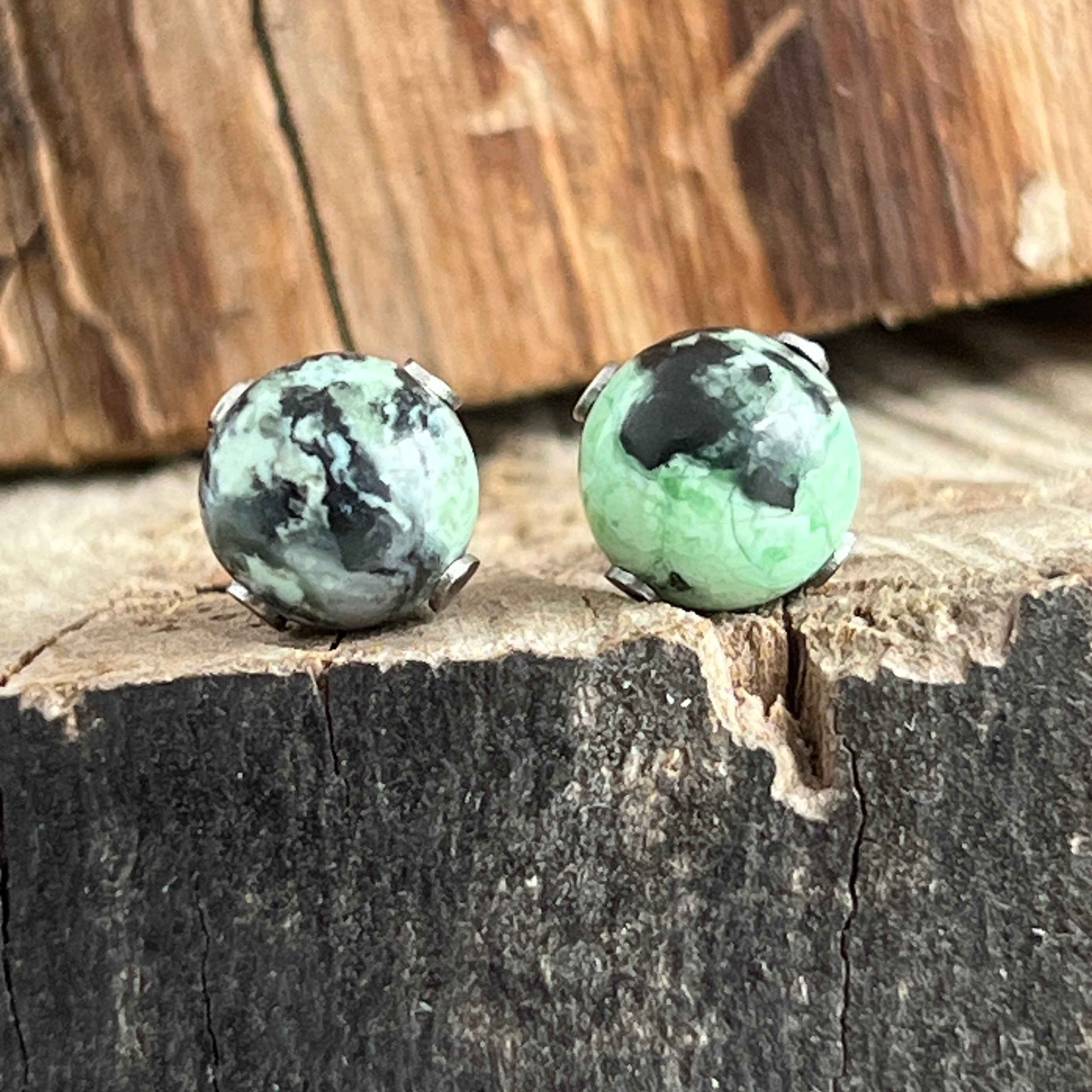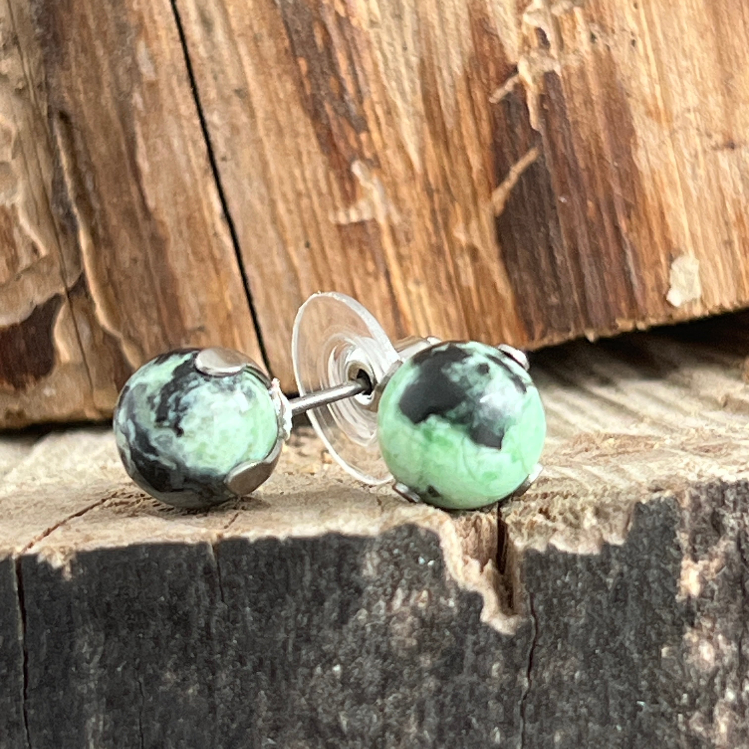 Variszkit gömb fülbevaló, 8 mm-es szegecs