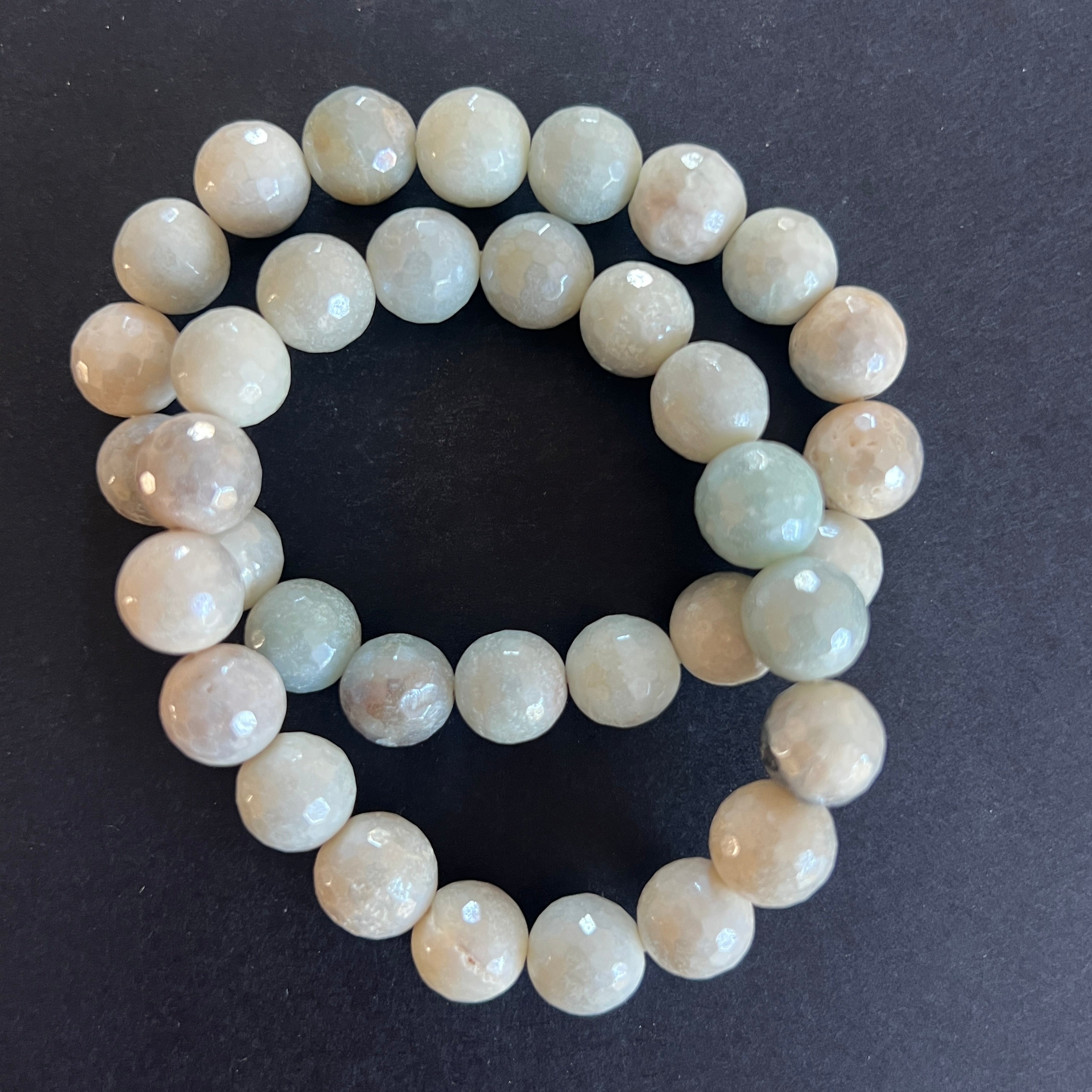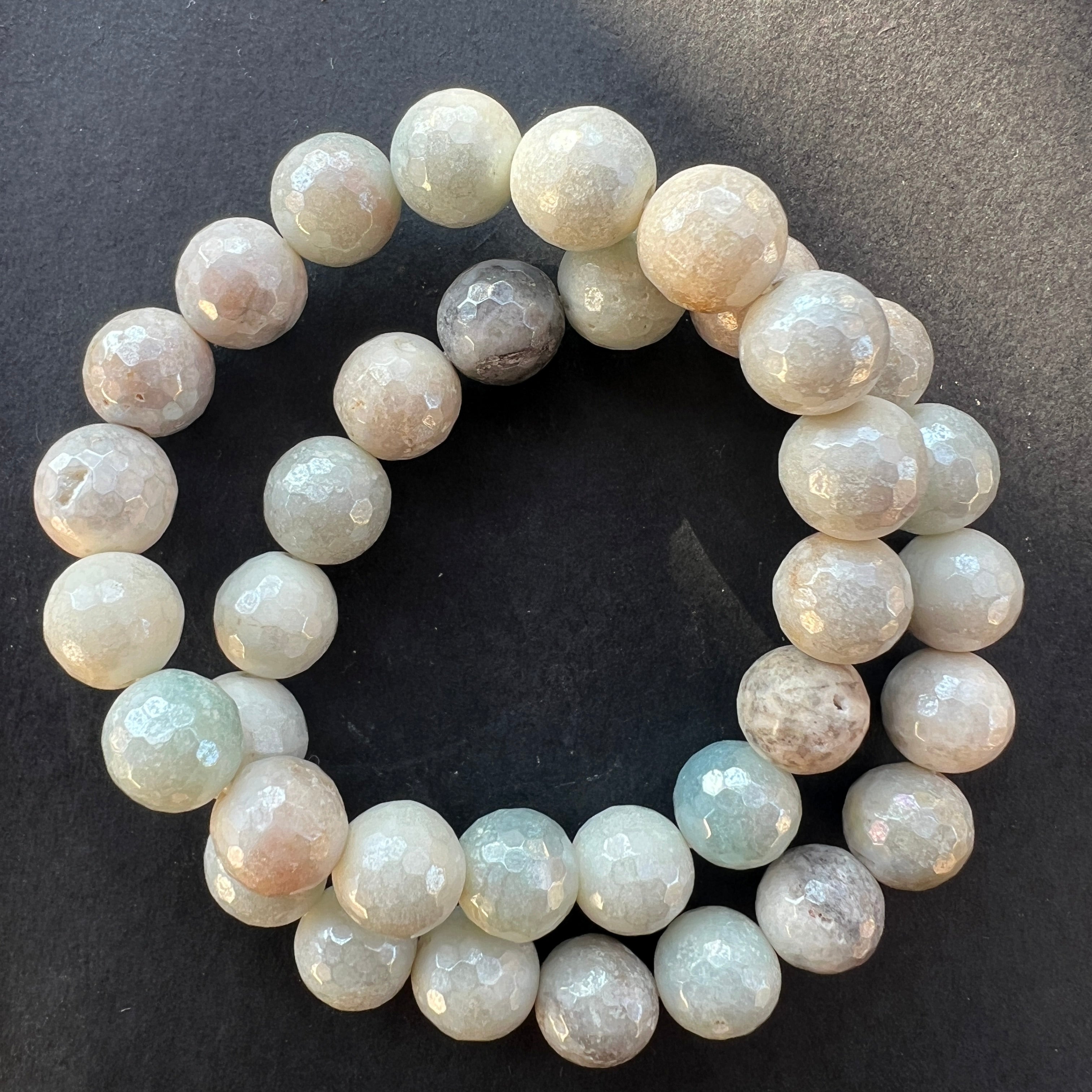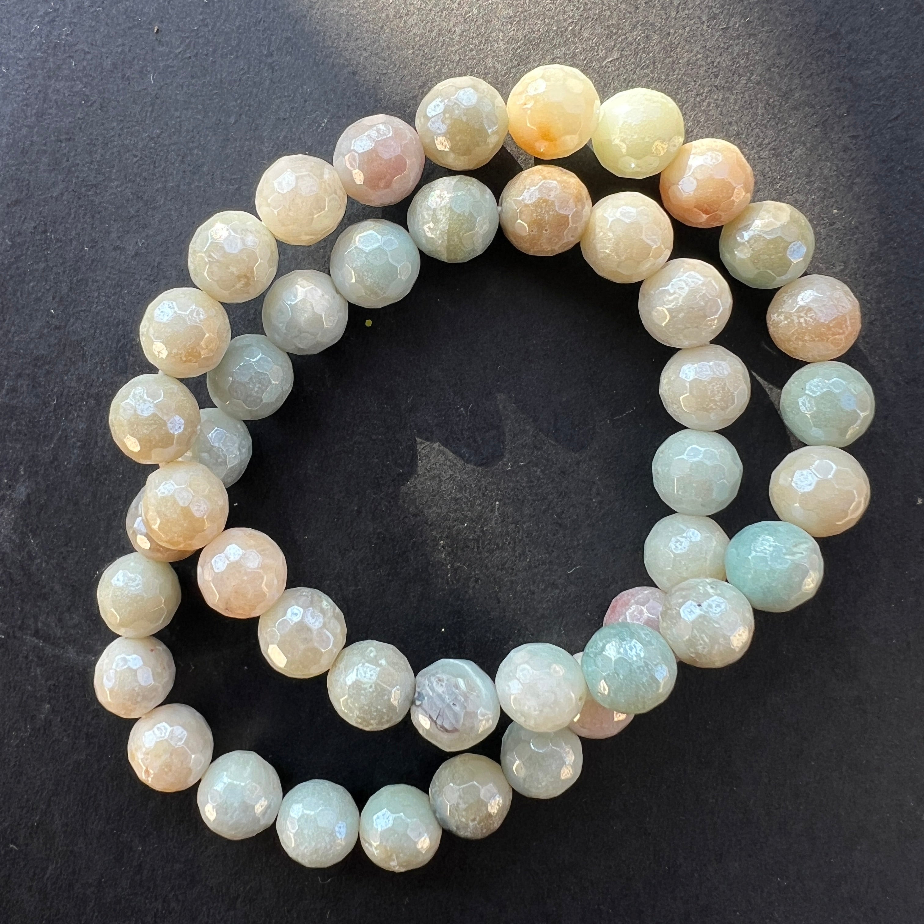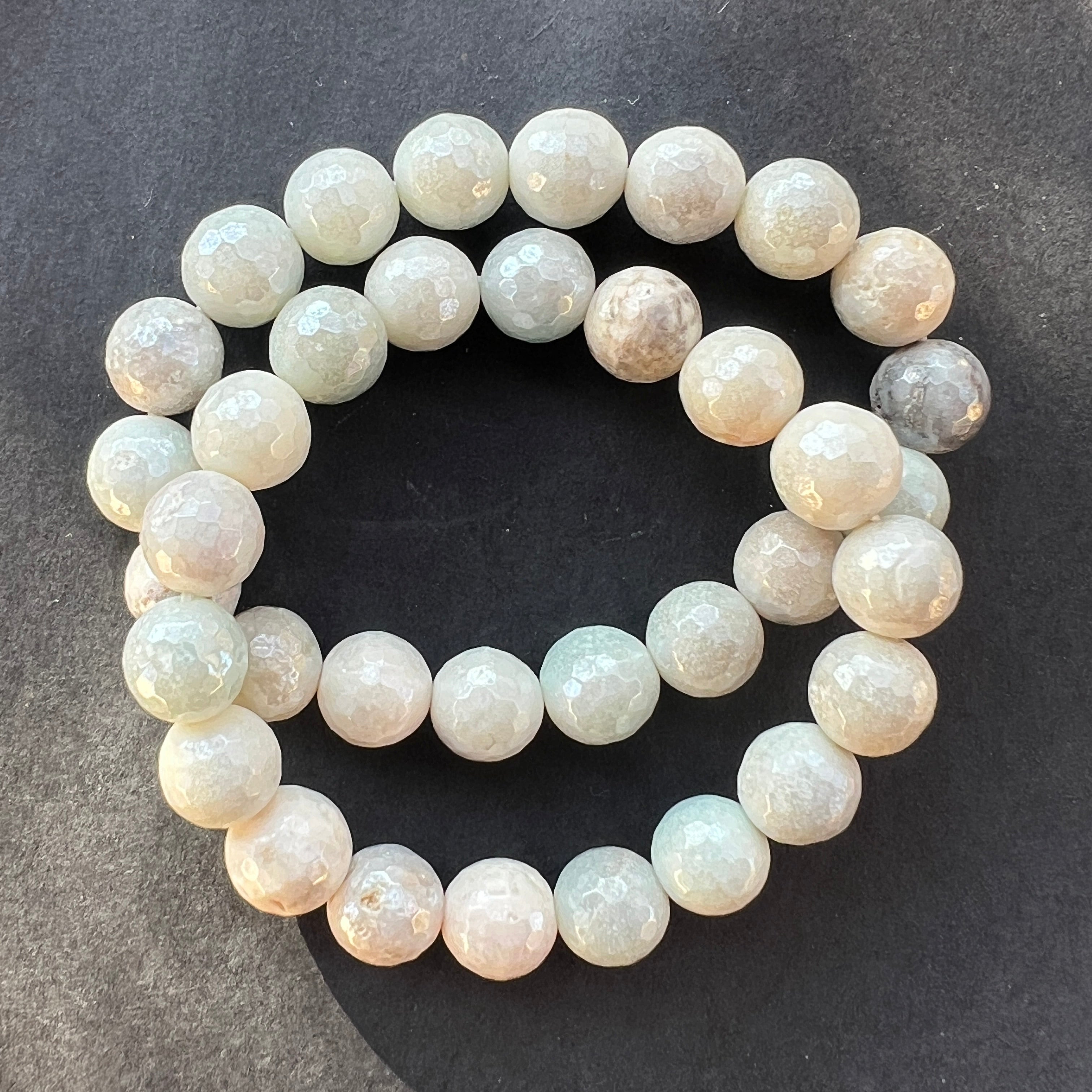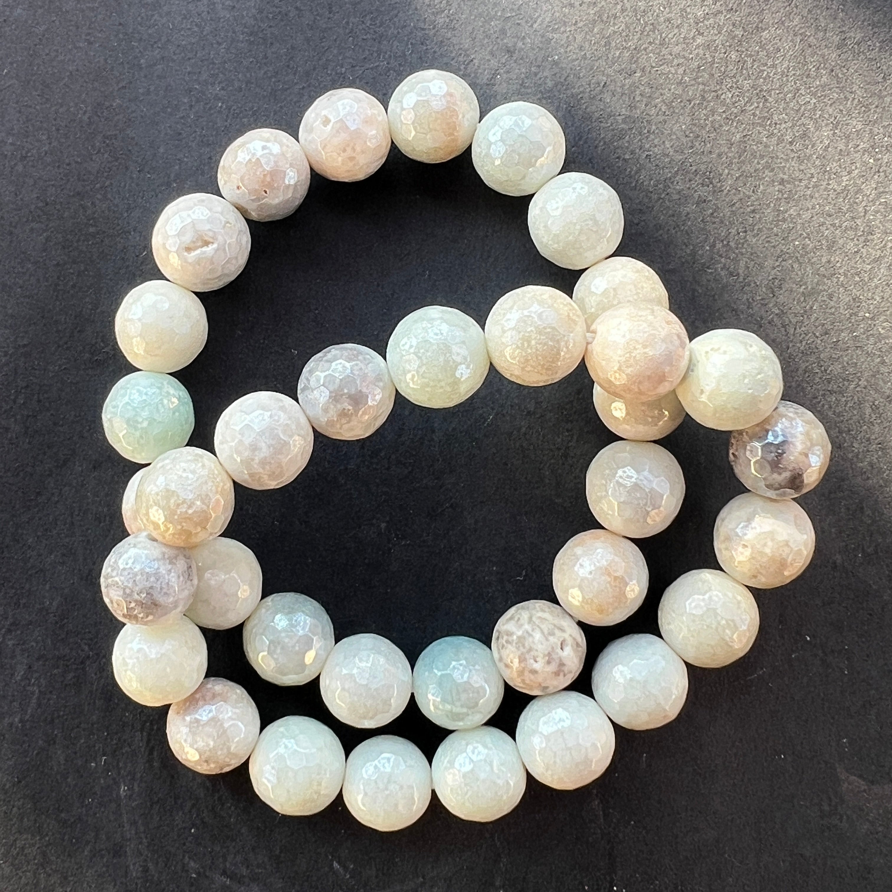 Kalcit karkötő, kék karibi fazettás gömbek 10mm