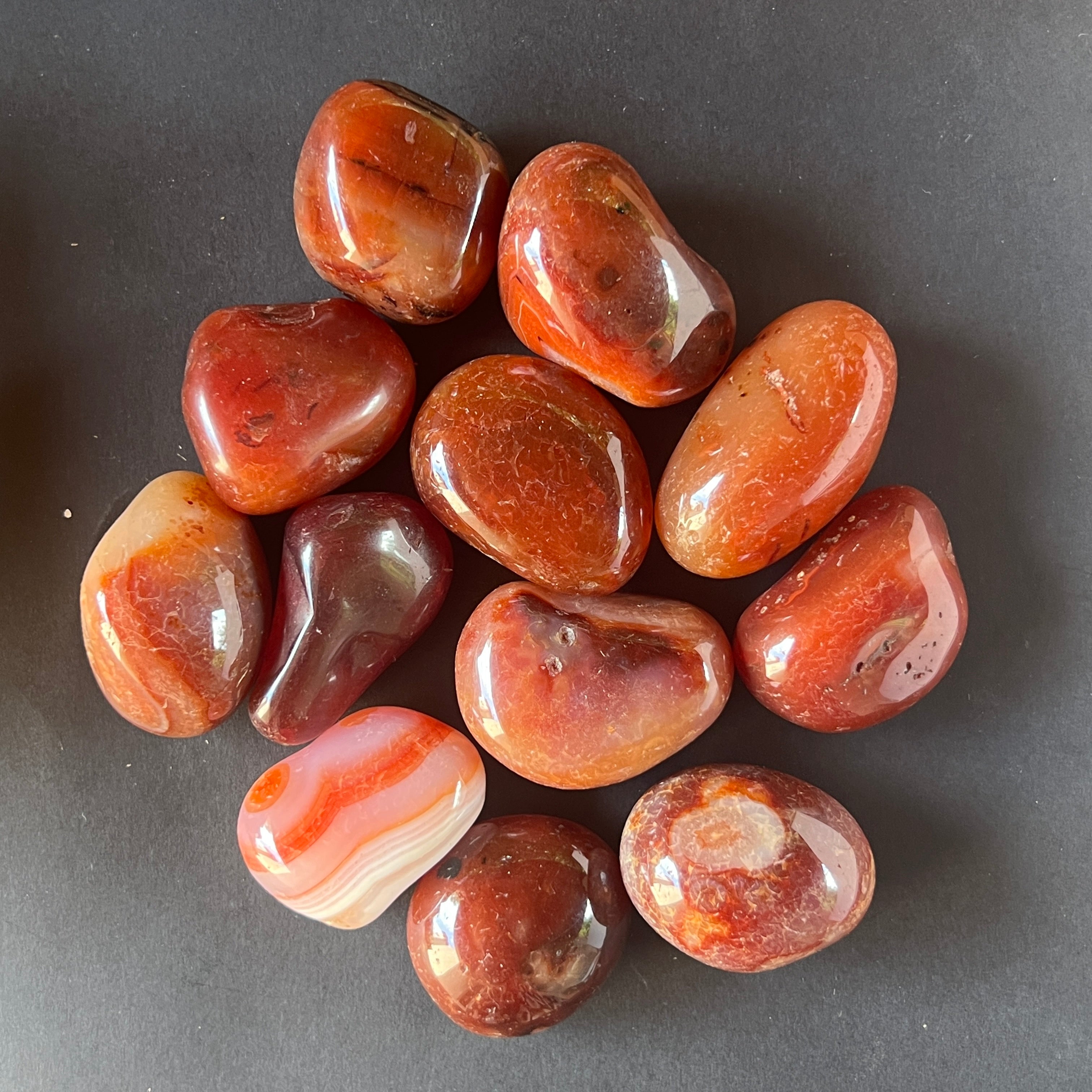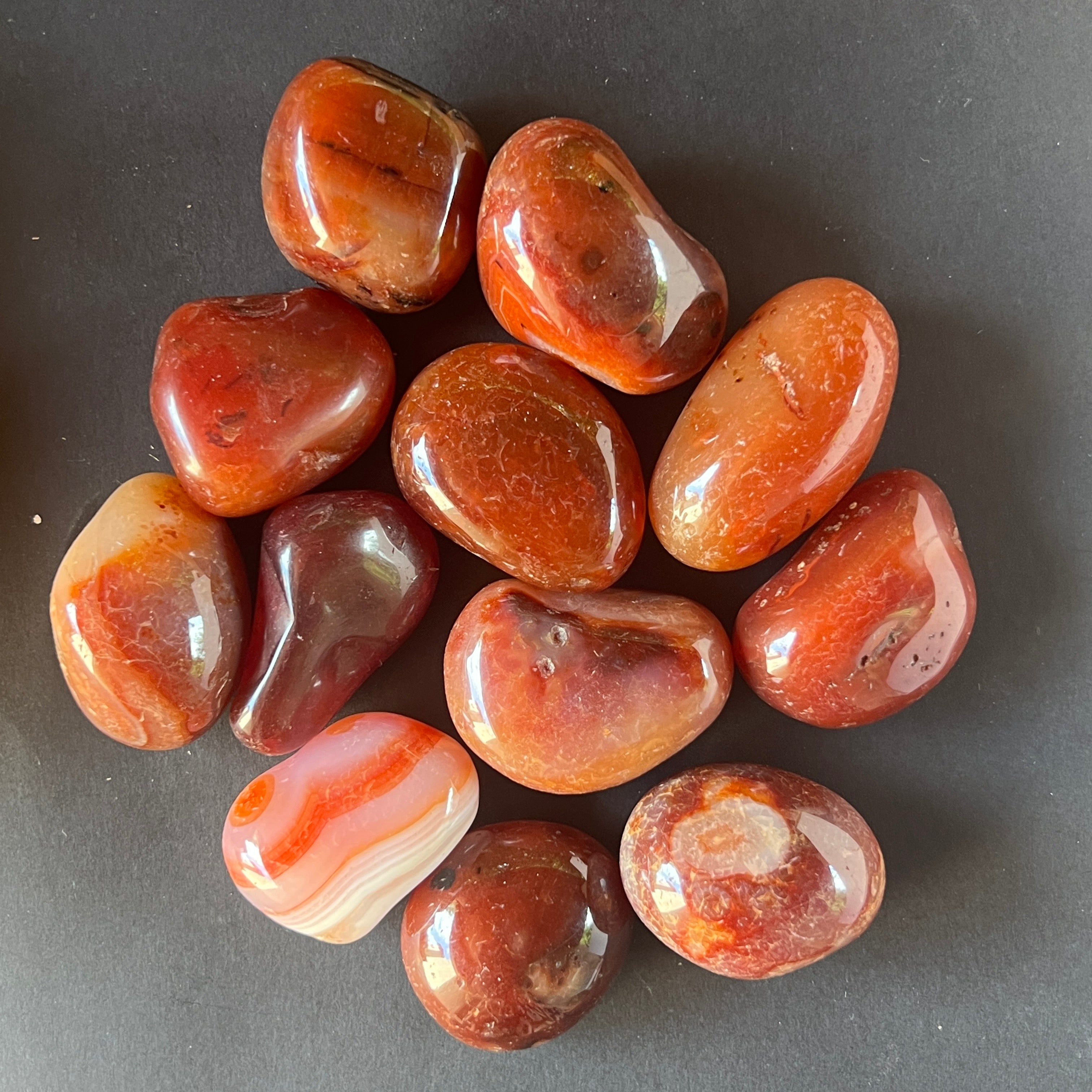 Vörös achát görgetett kő L, méretei 3 és 4 cm közöttiek. Az ár a kő méretétől függ, kérjük, válassza ki a kívánt méretet.