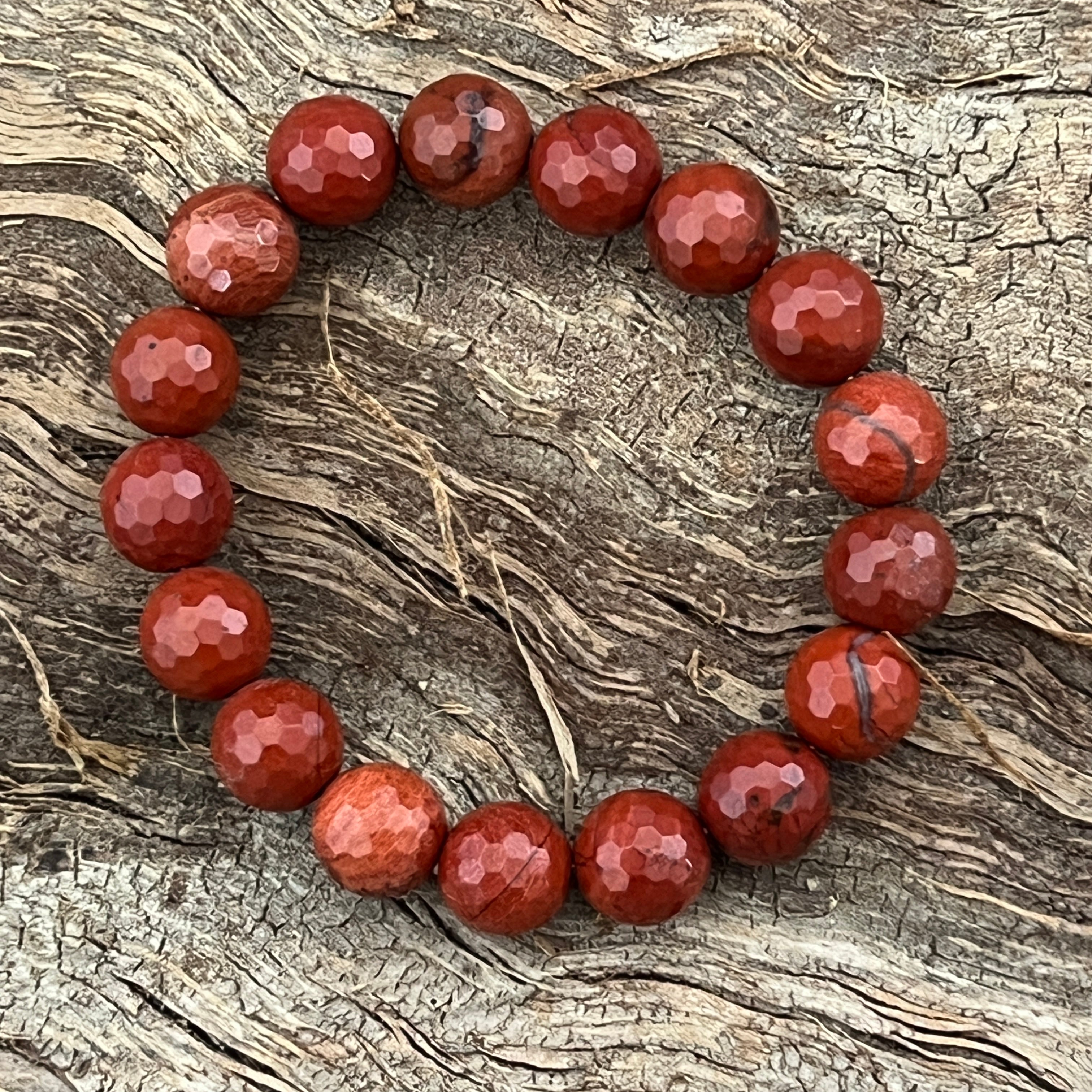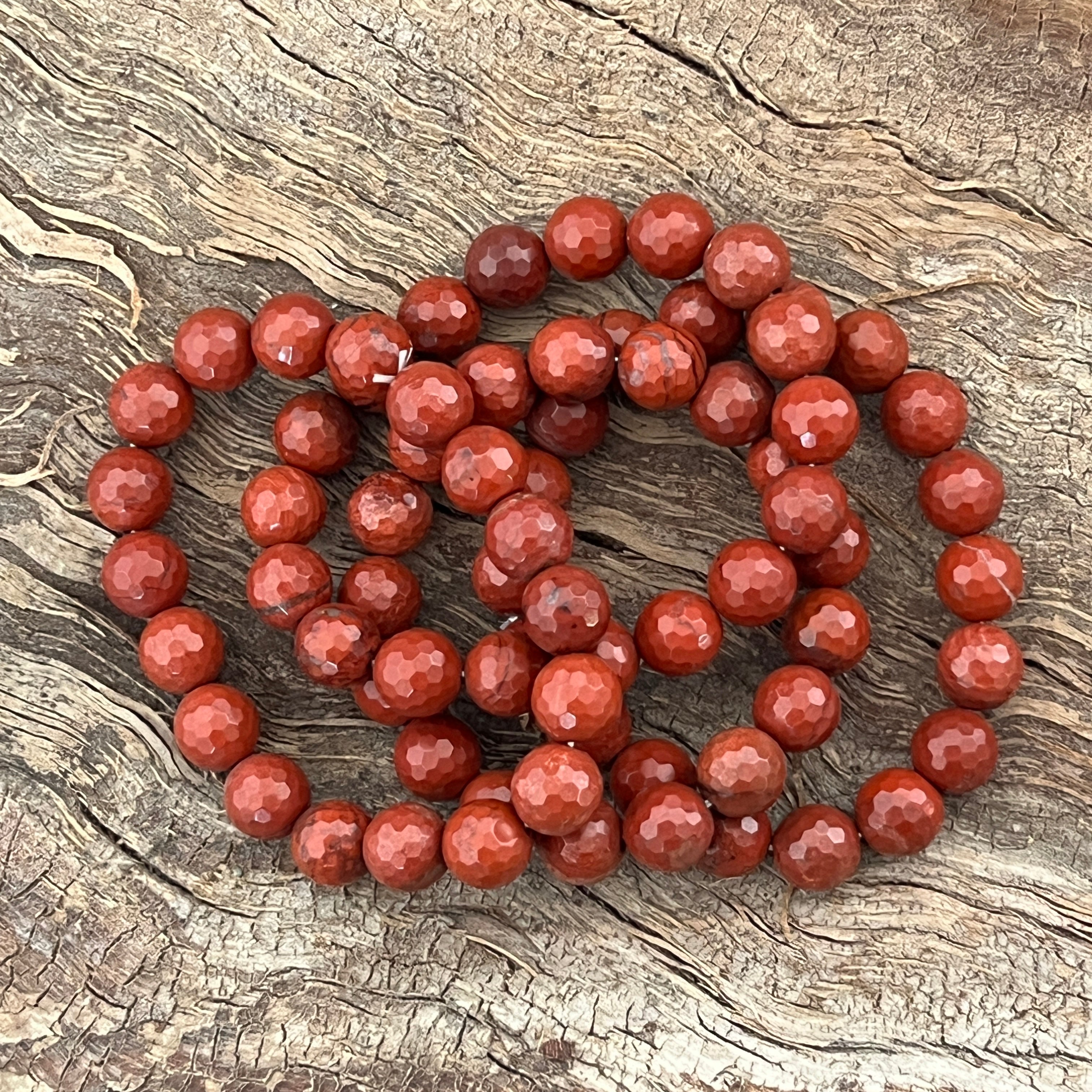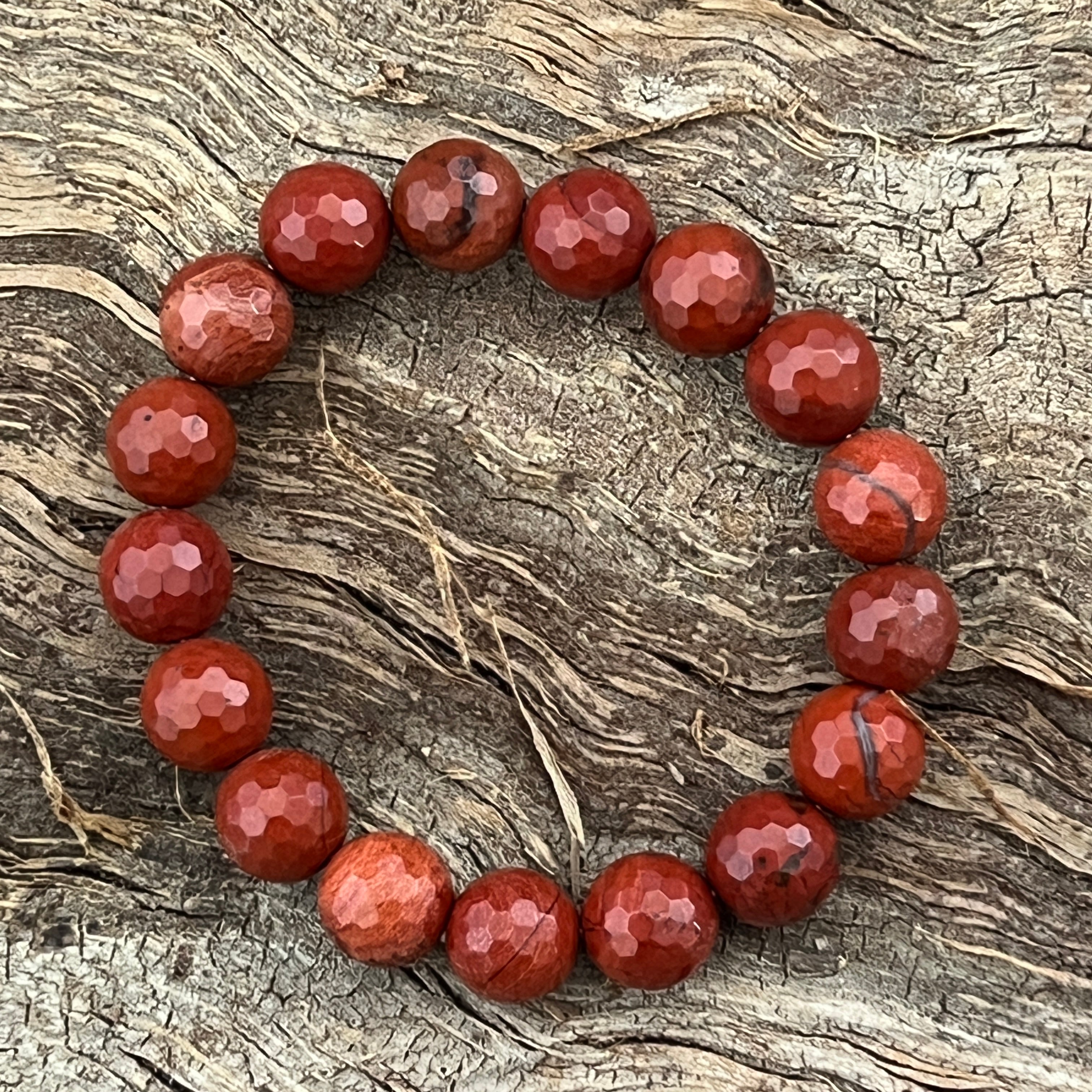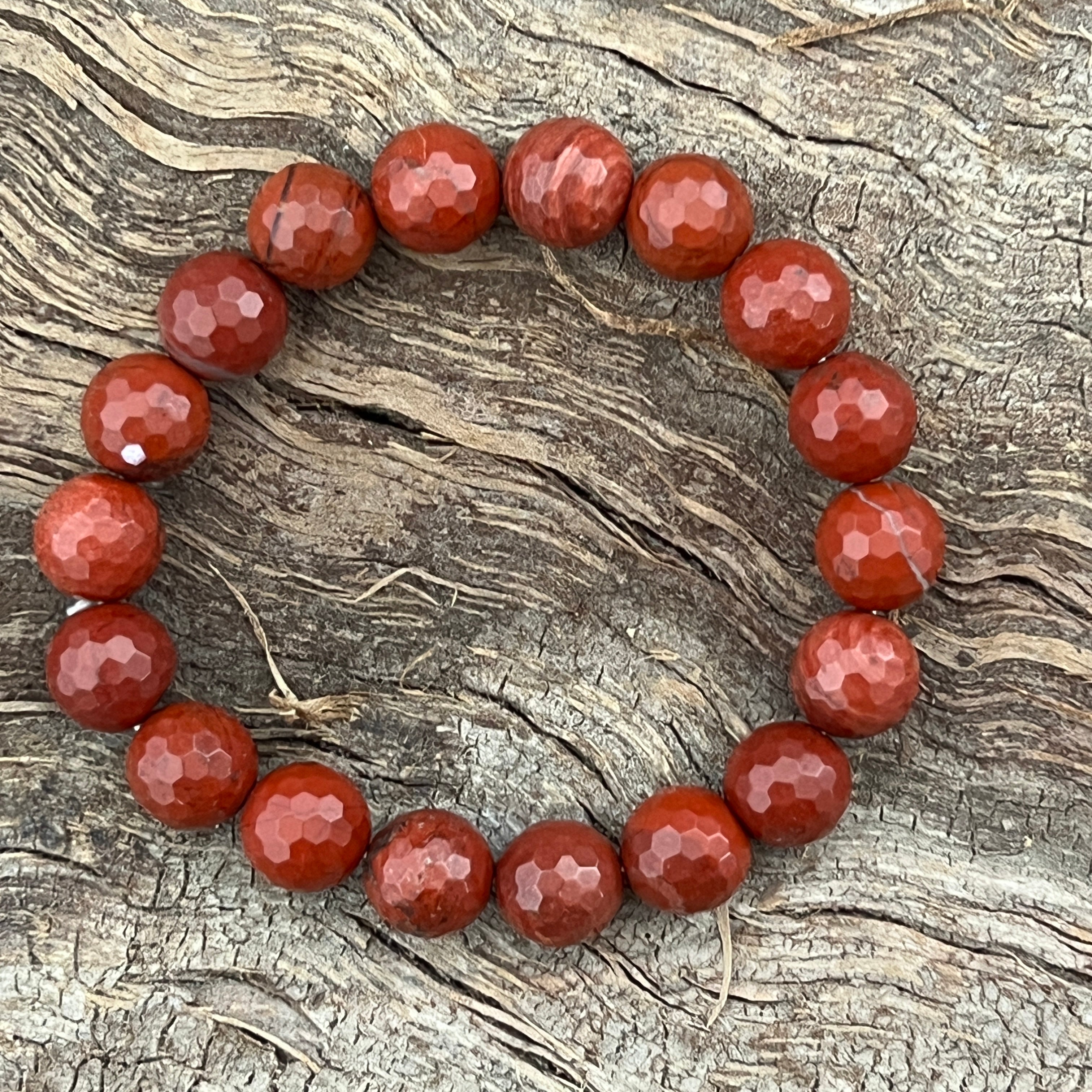 Ez a fazettált vörös jáspis karkötő 10–11 mm-es gömb alakú gyöngyökből áll, és ötvözi a kő természetes szépségét a fazettált csiszolás kifinomultságával, amely minden mozdulatnál finom csillogást kölcsönöz. Meleg, intenzív vörös színével az életenergiát és a földi energiával való mély kapcsolatot idézi fel.