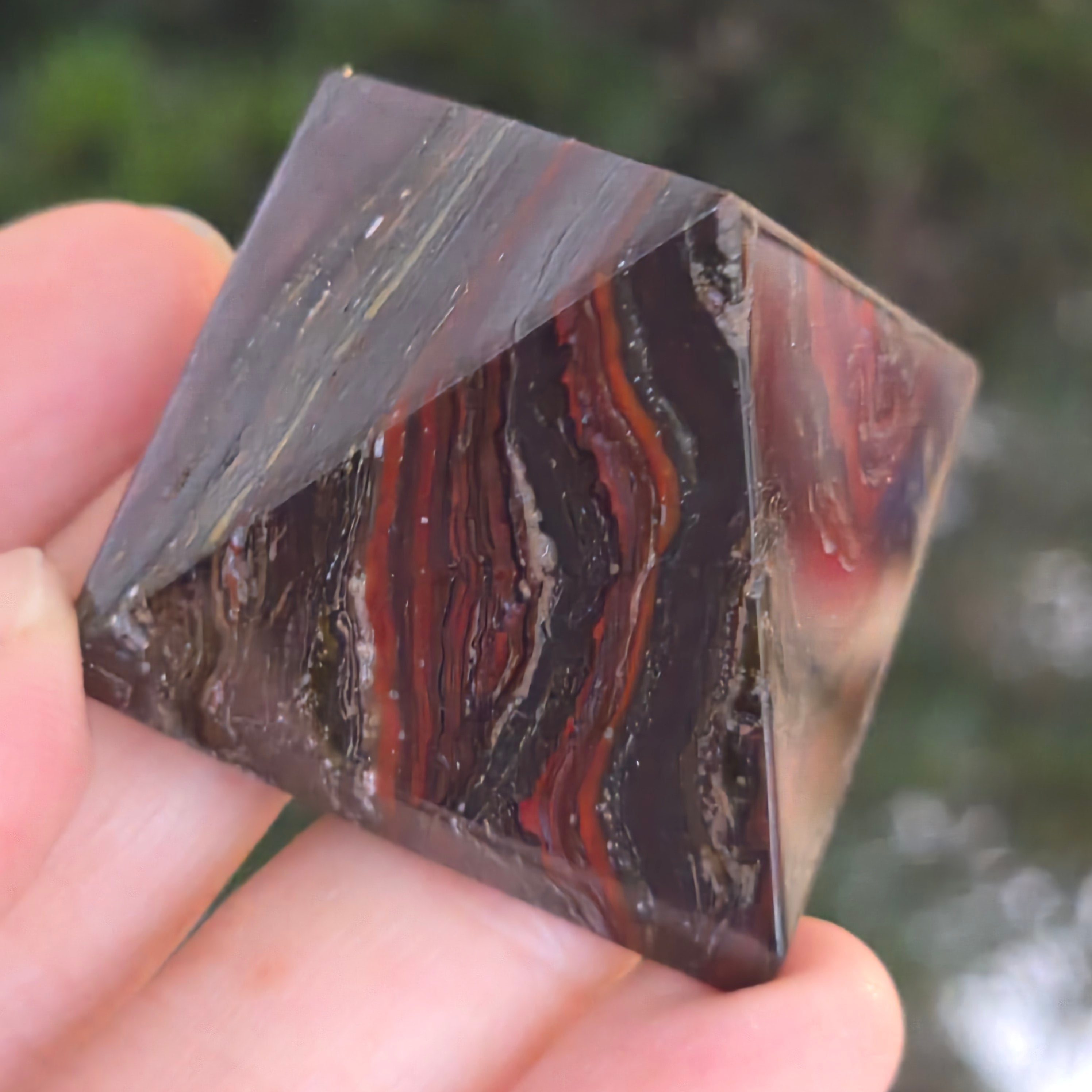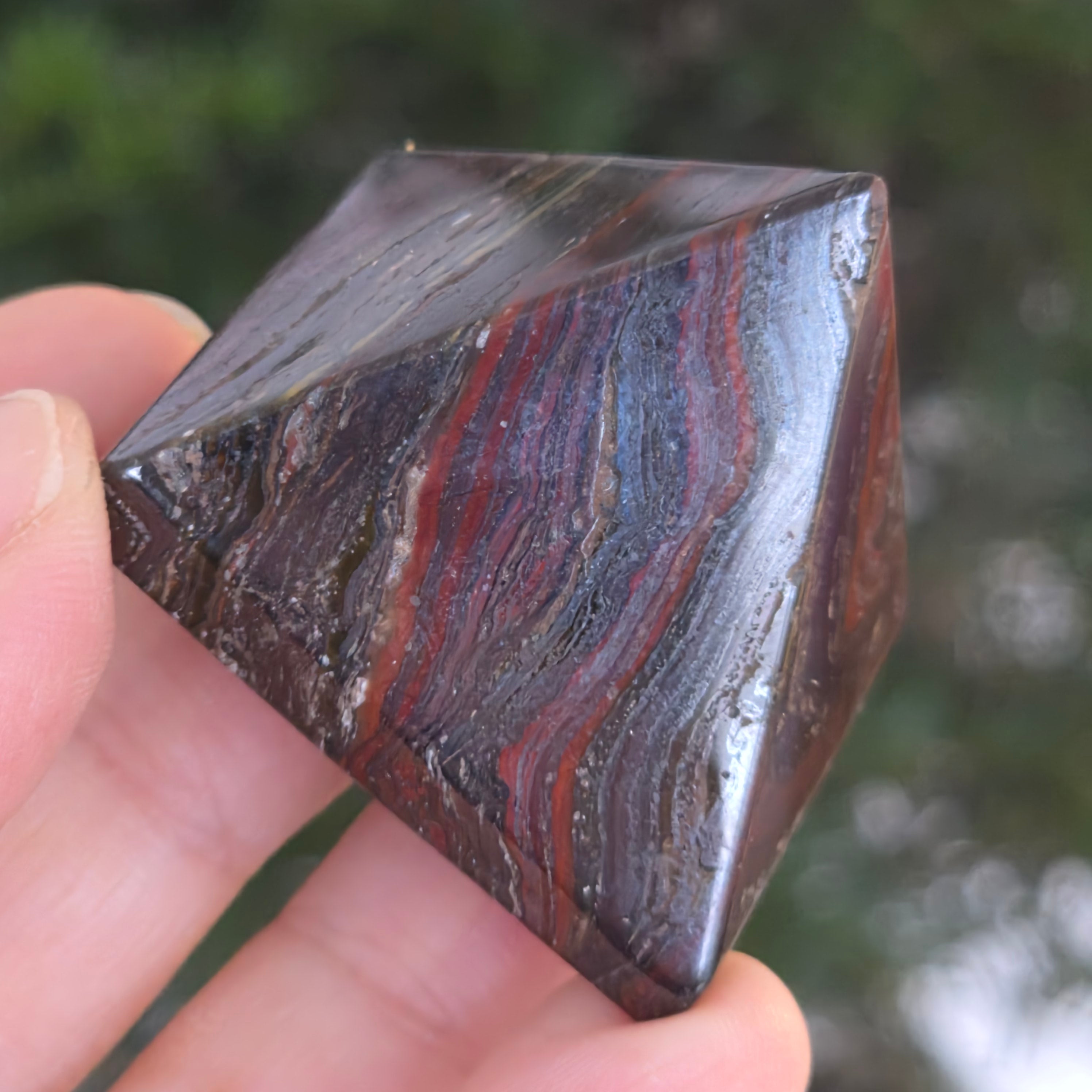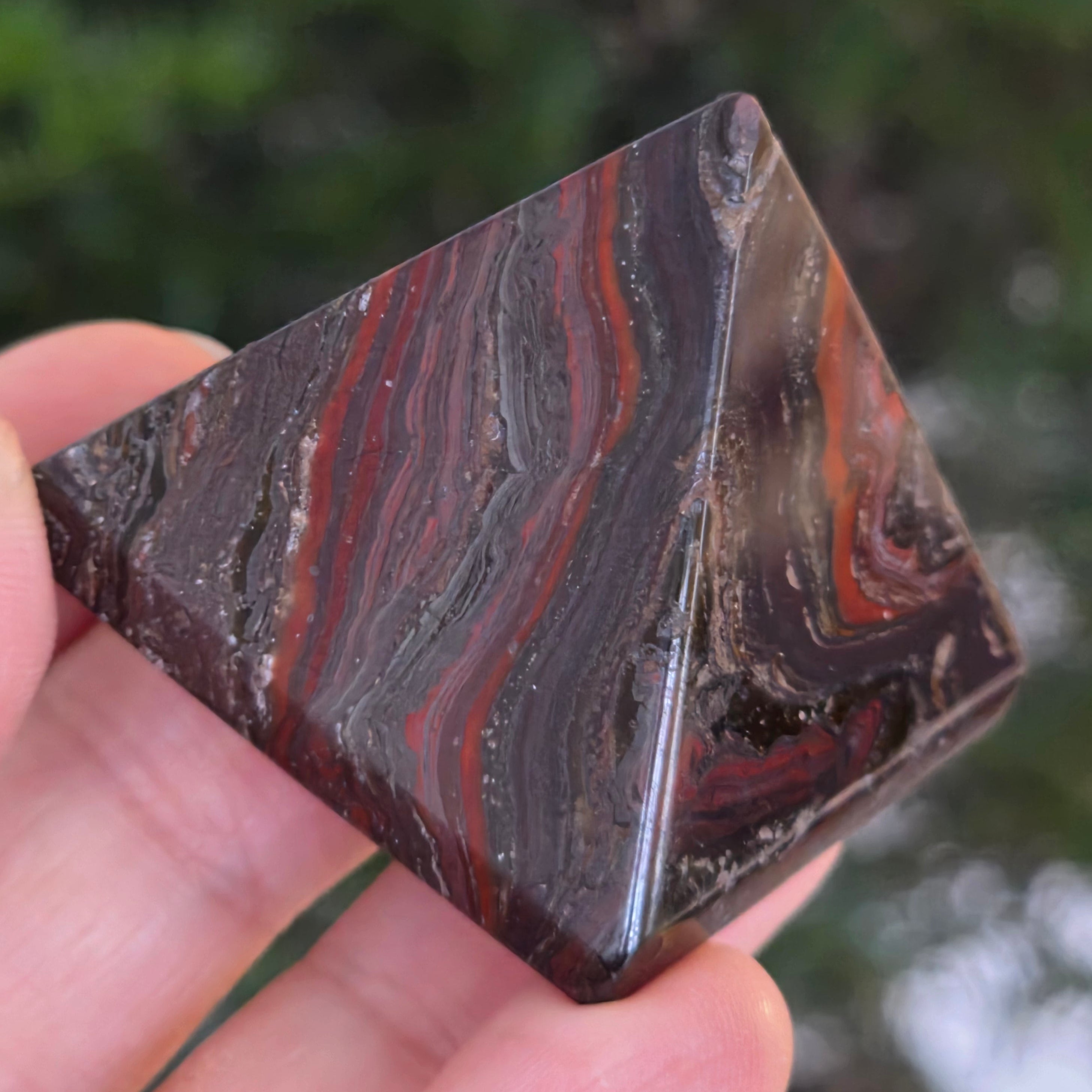 Vörös jáspis piramis hematittal csíkozott
