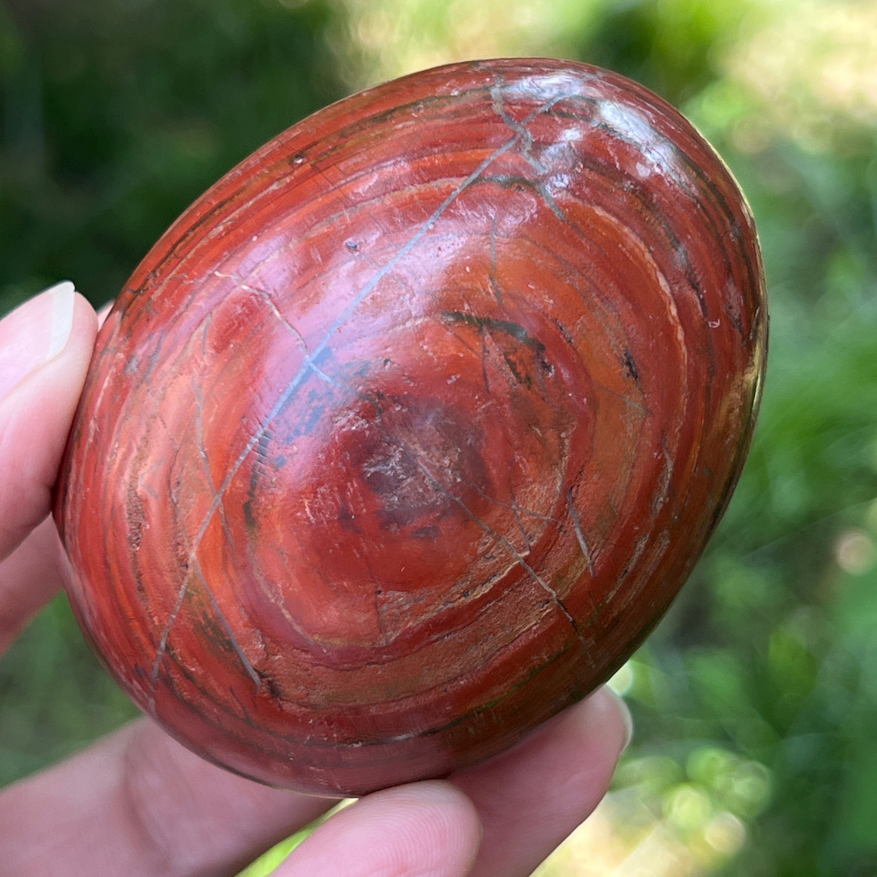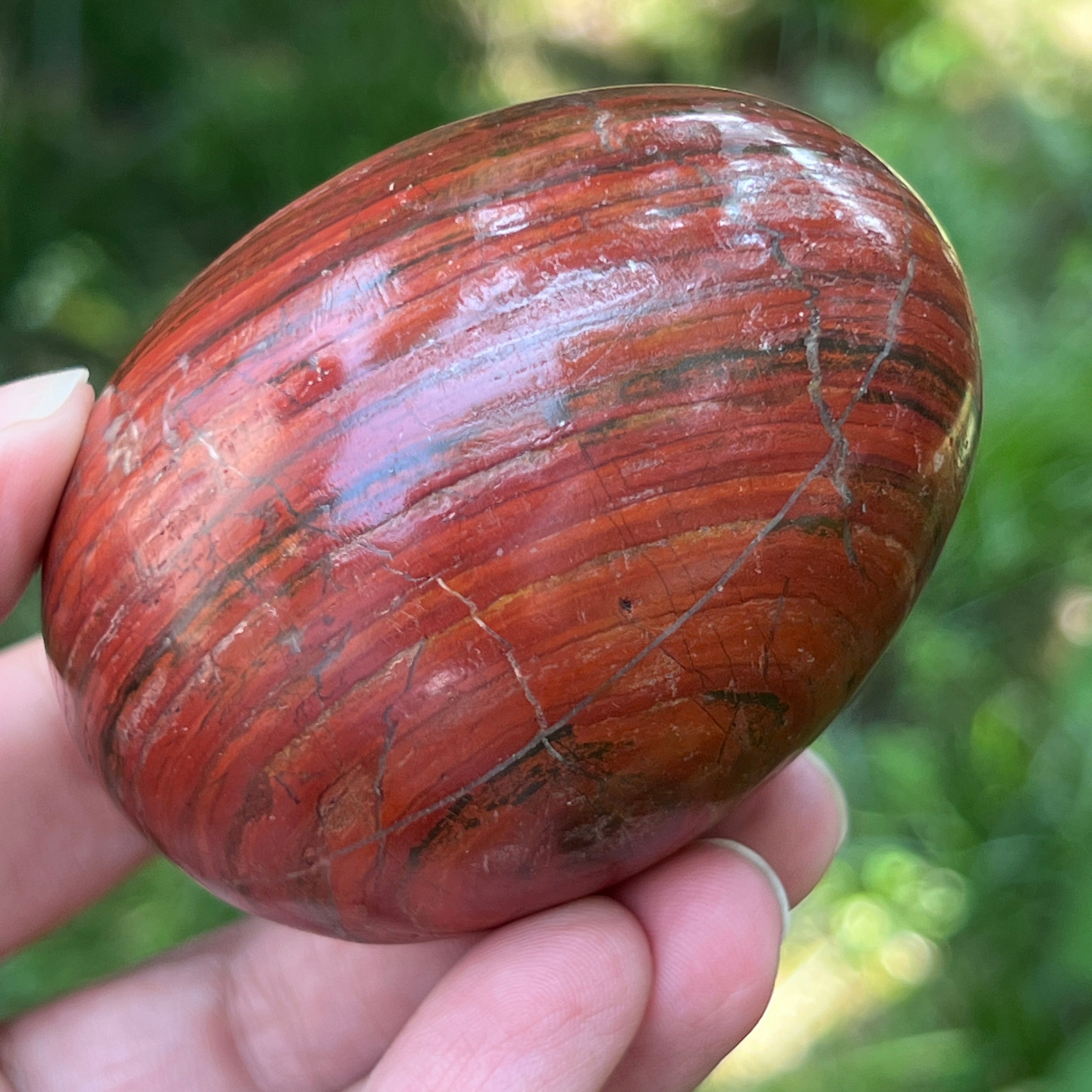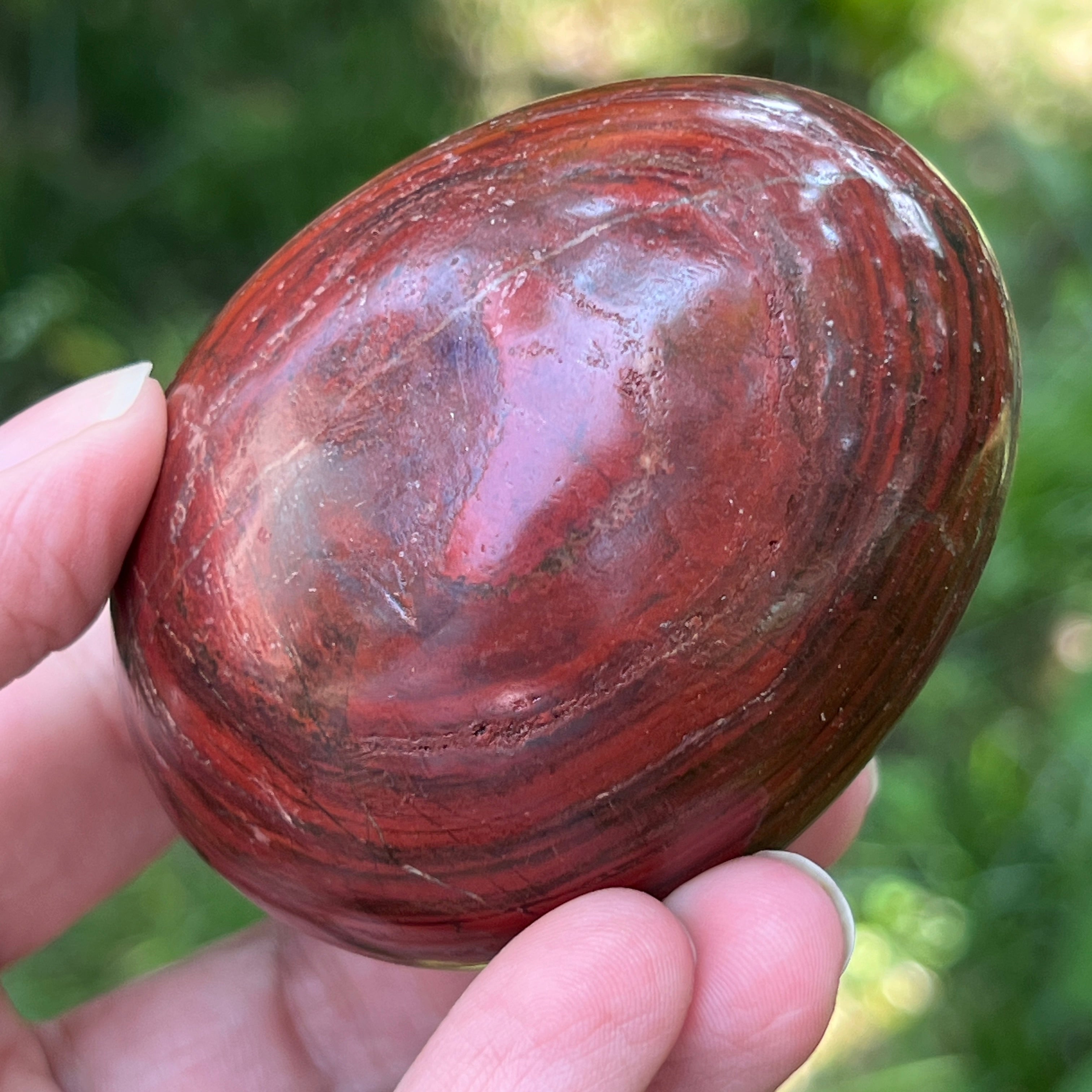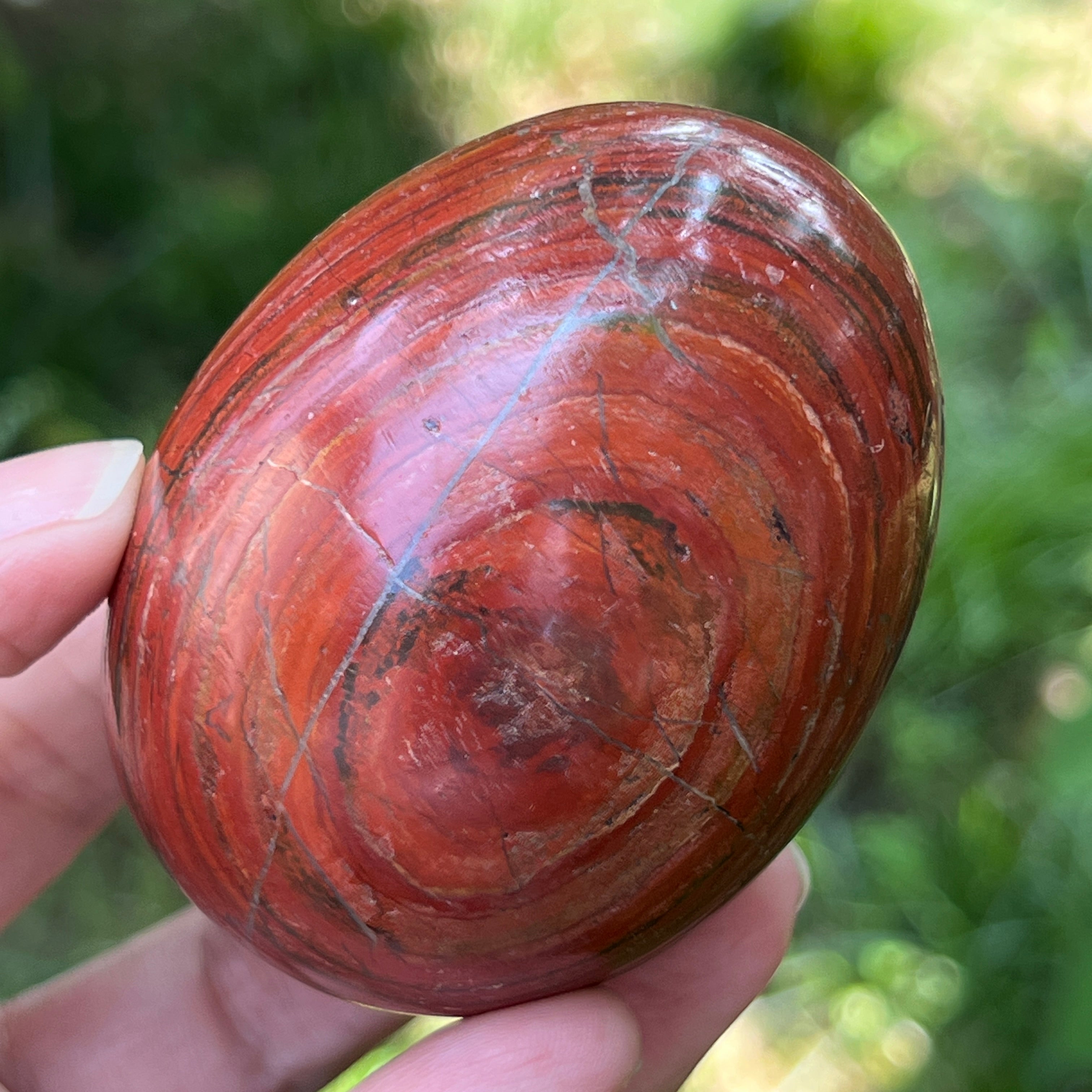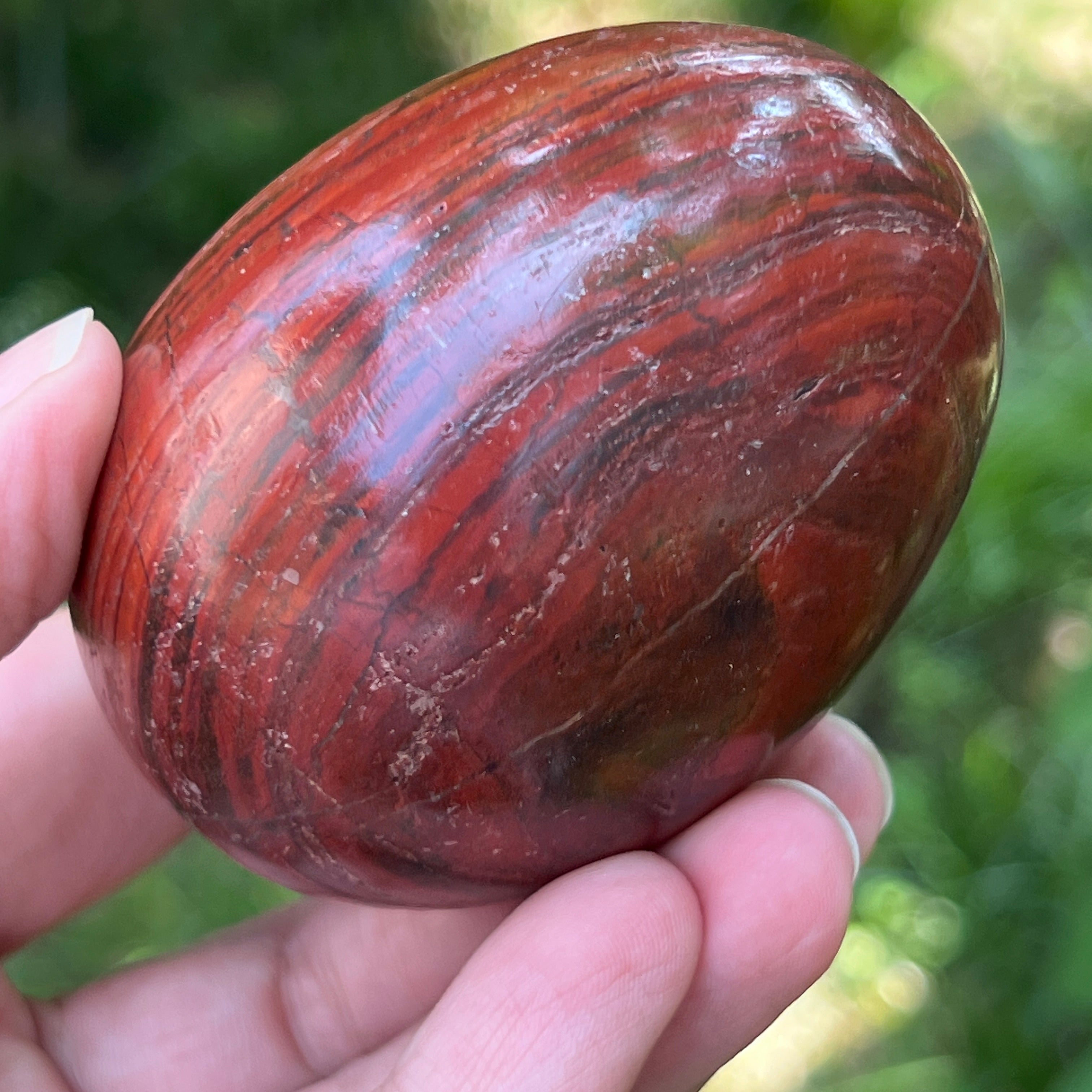 Vörös jaspis tojás Zimbabwe-ből, 5-ös modell, mérete 6,8 * 5,3 cm