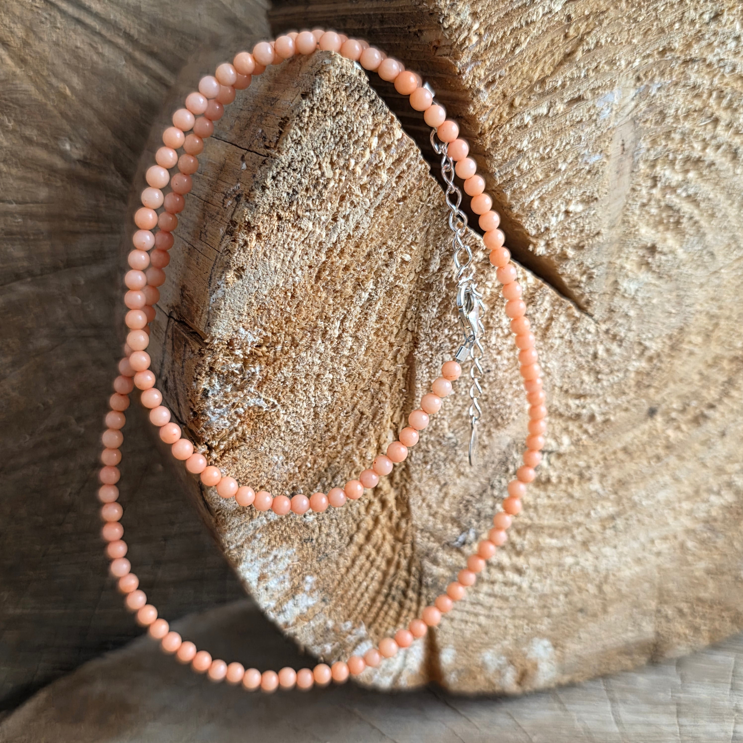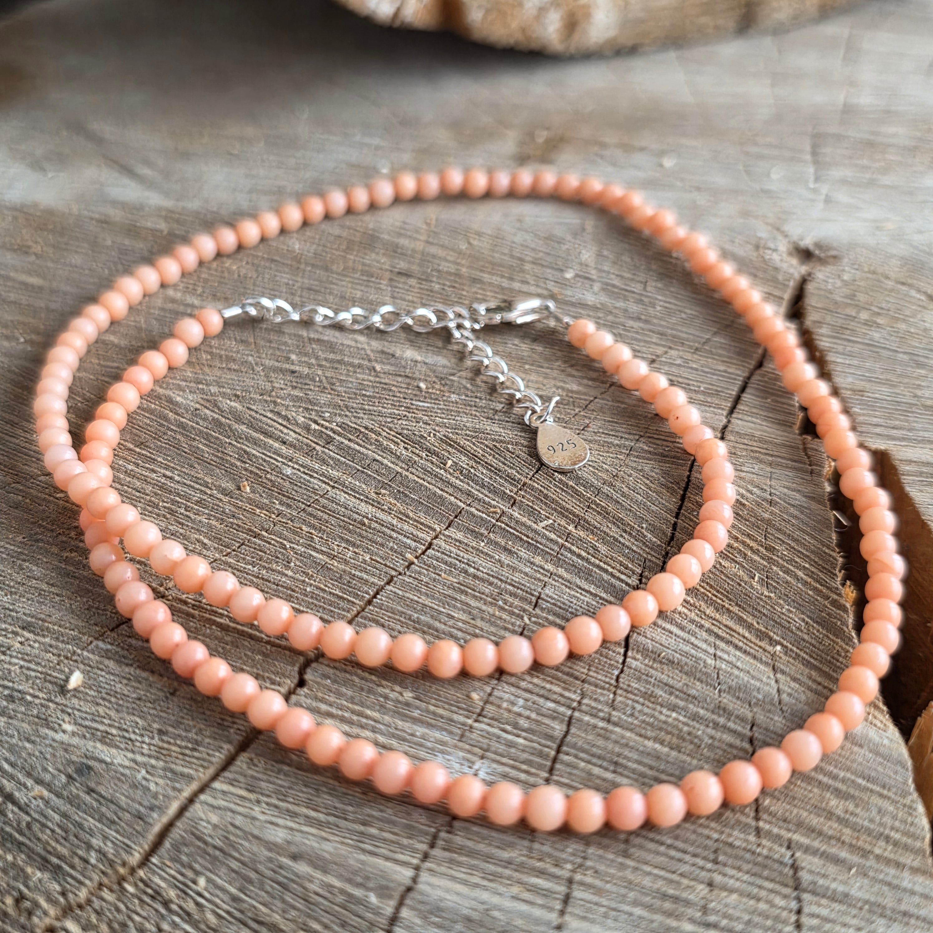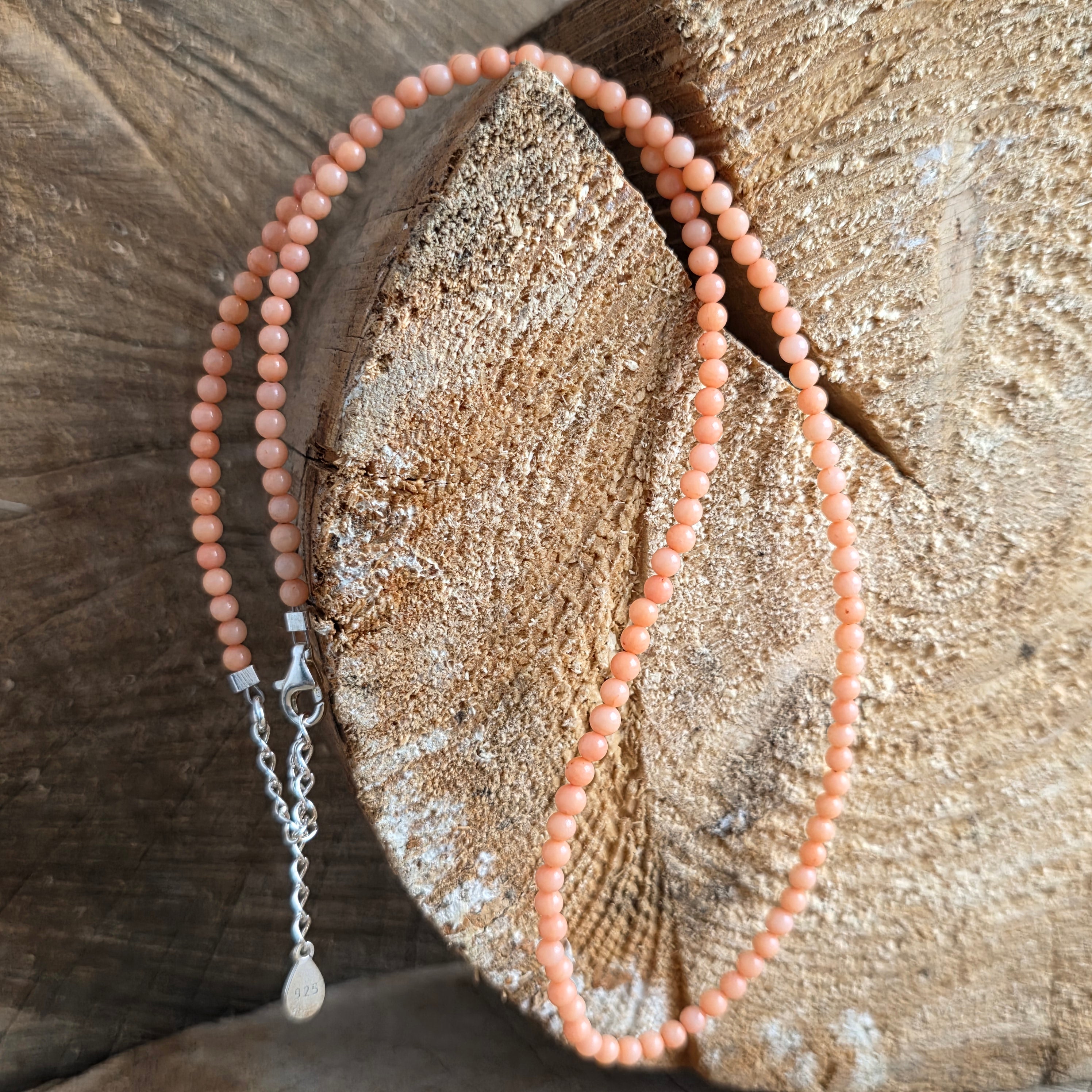 Nyaklánc, mint egy szellő a mélyből – puha, gyengéd és meleg, szinte nosztalgikus hangulattal. Rózsaszín korall, polírozott 3 mm-es áttetsző gömbök, úgy táncol a szálon, mint a tenger elfeledett emléke, minden élettörténetével, újjászületésével és szerelemmel.