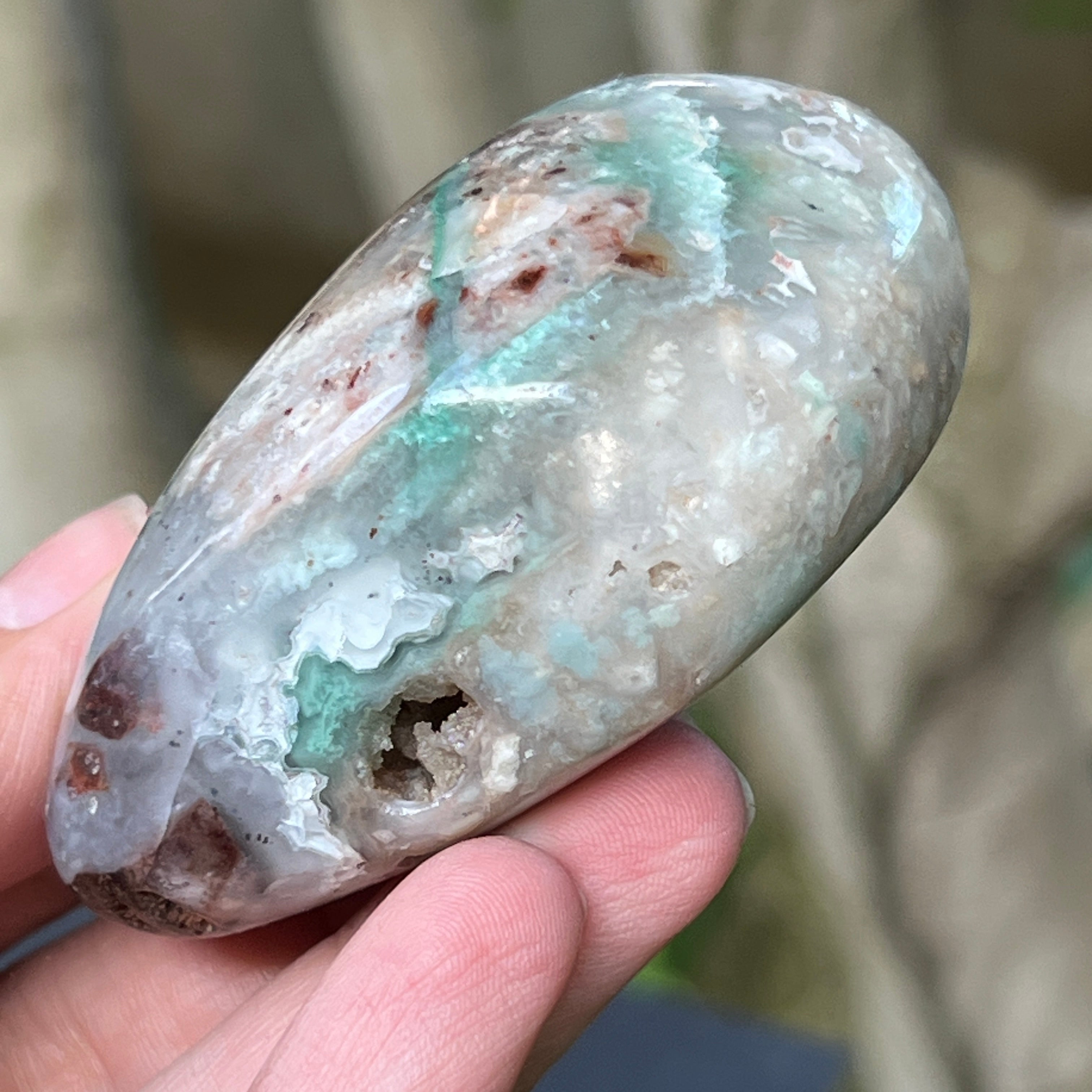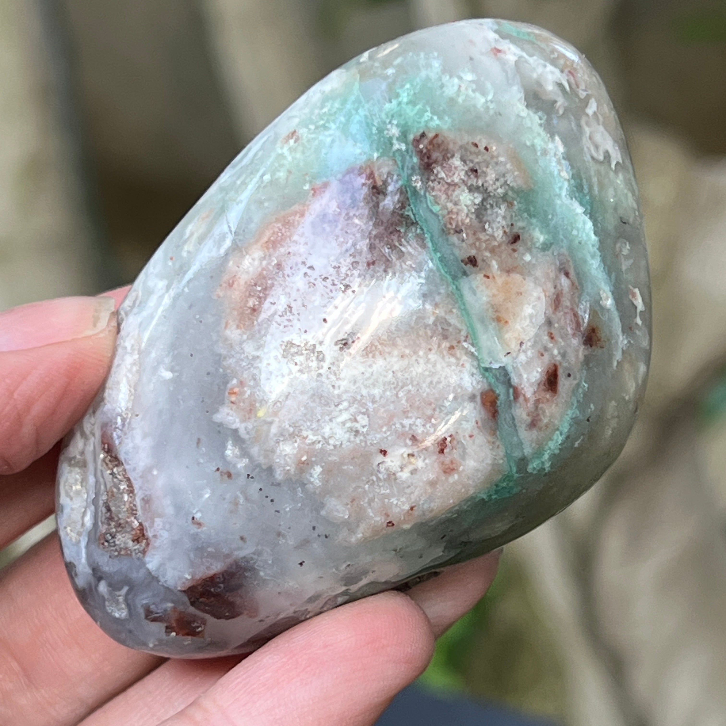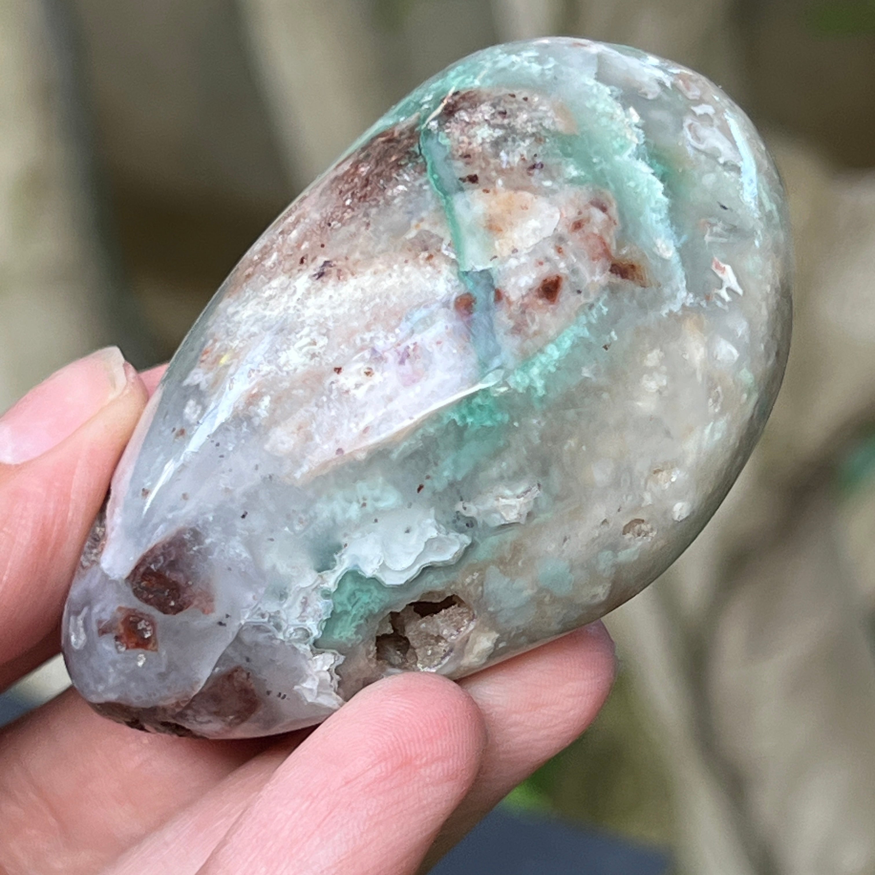Zimbabwei kék-zöld krómkalcedon palmstone | 5. modell