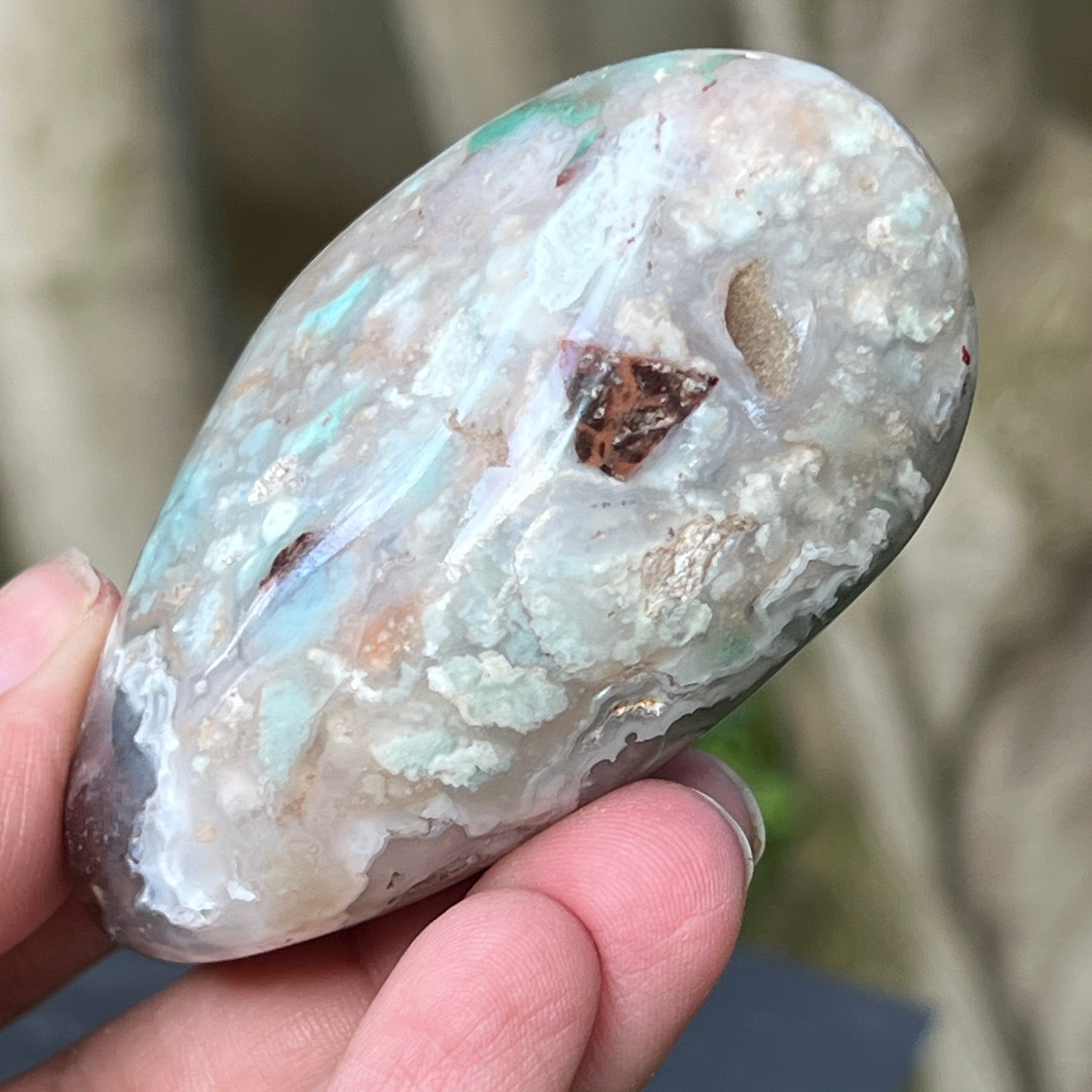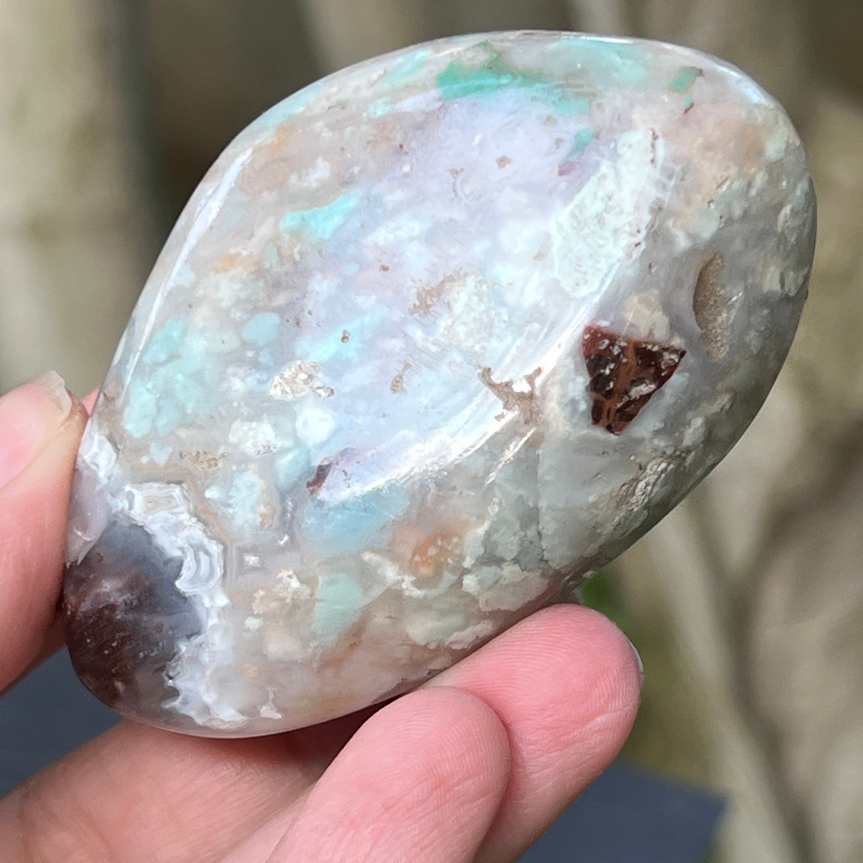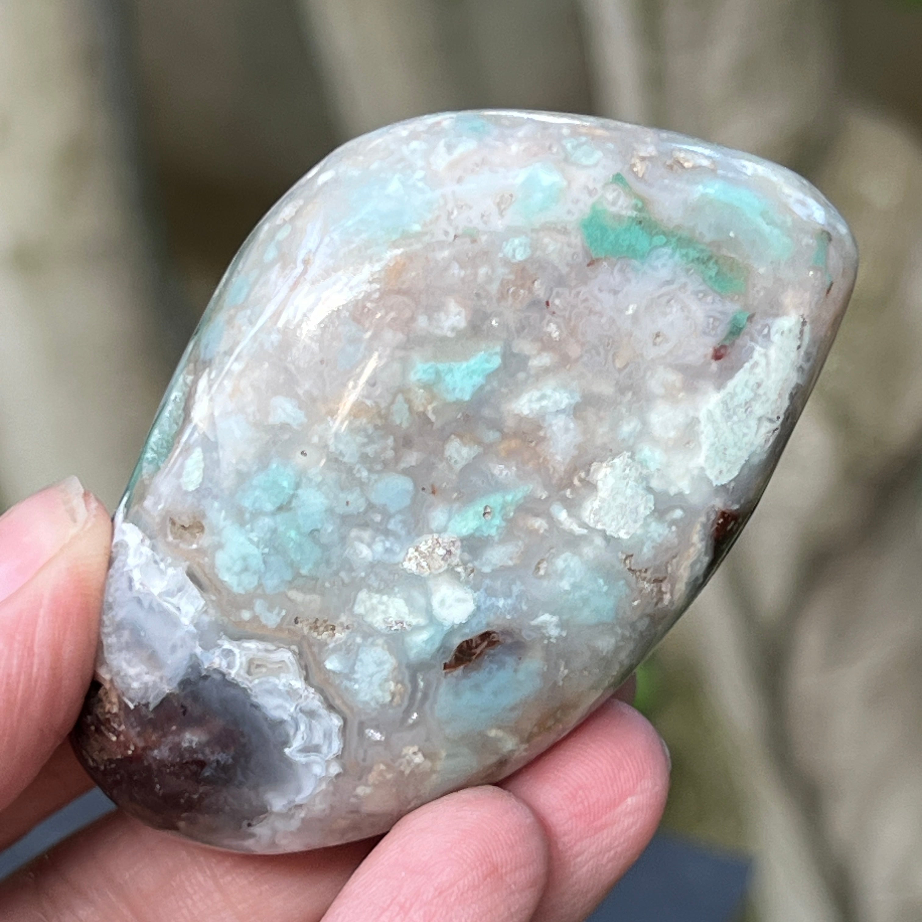 Zimbabwei kék-zöld krómkalcedon palmstone | 5. modell