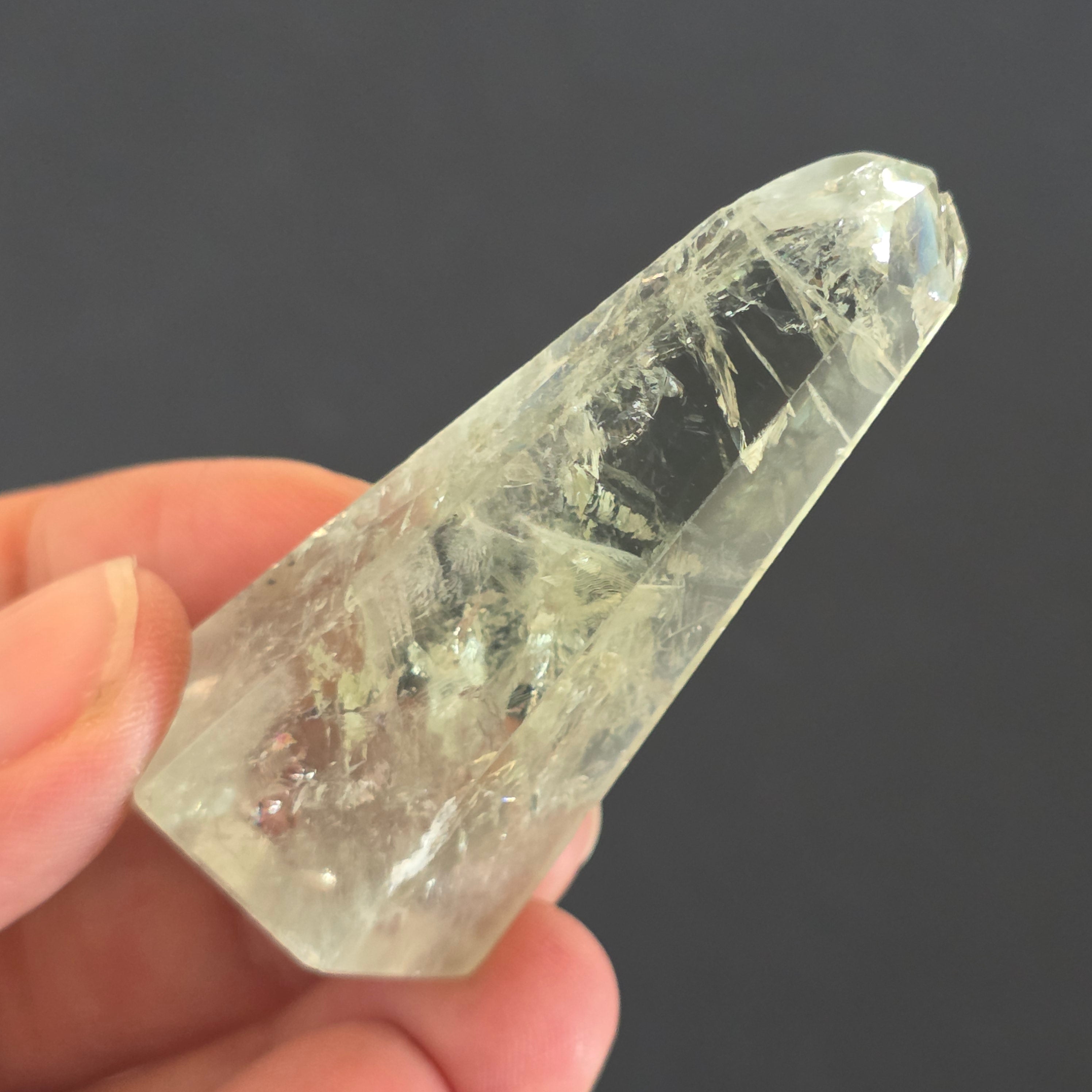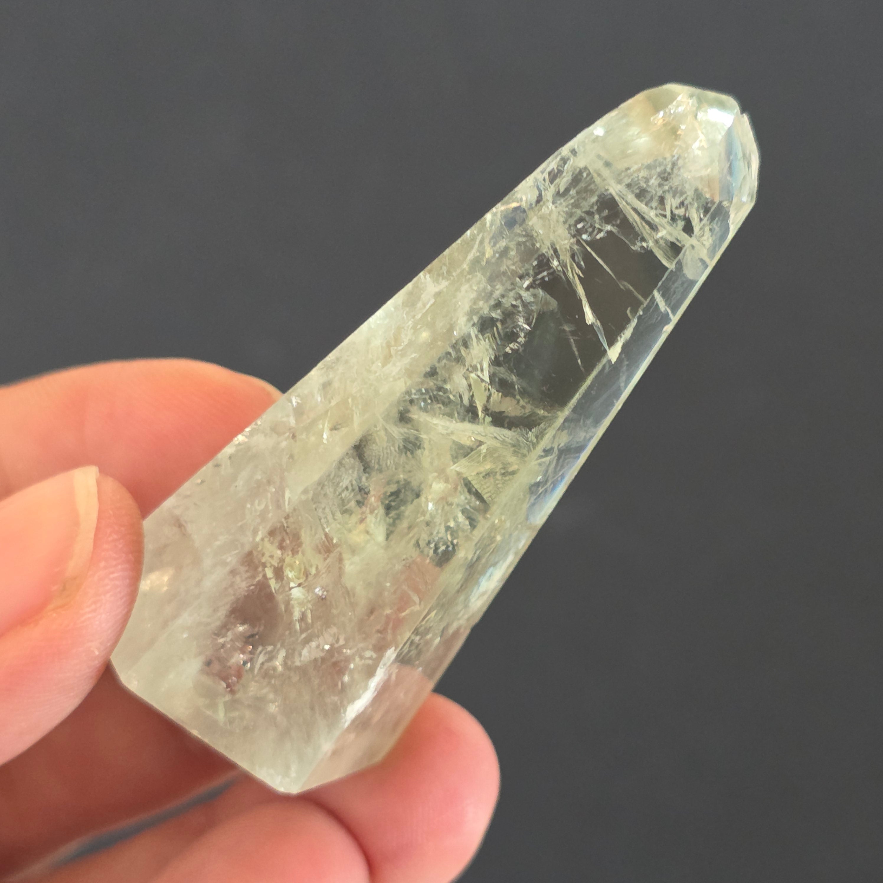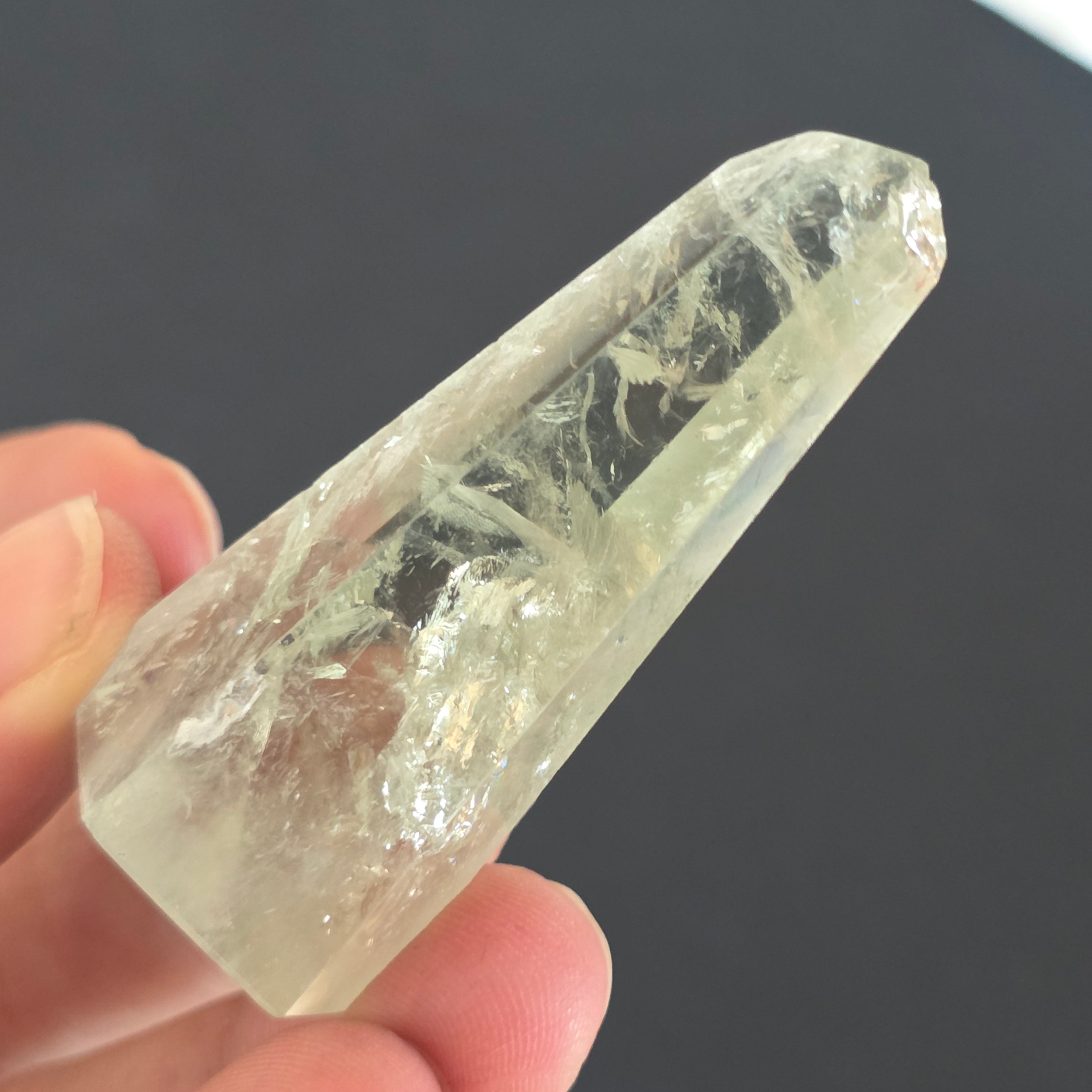 Az obeliszk Zöld ametiszt Ritka és kifinomult megjelenés, amely egyensúly és megújulás rezgését hordozza. Nyugodt és tiszta energiája önvizsgálatra és tisztaságra hív, áttetsző árnyalatai pedig a napfelkeltekelő erdő nyugalmát idézik. Egyedülálló darab, ideális a gyűjtők és a ritka kristályok rajongóinak egyaránt.