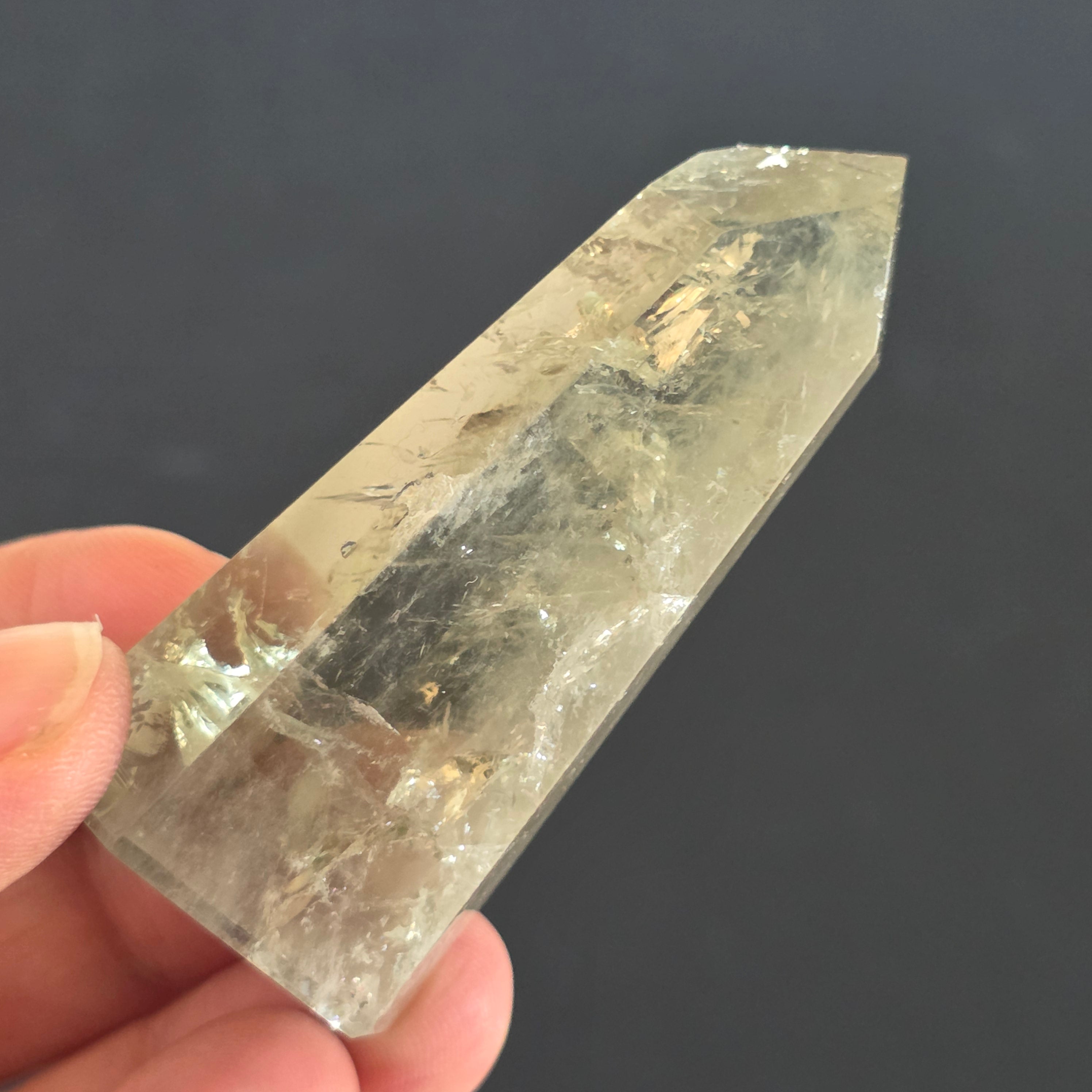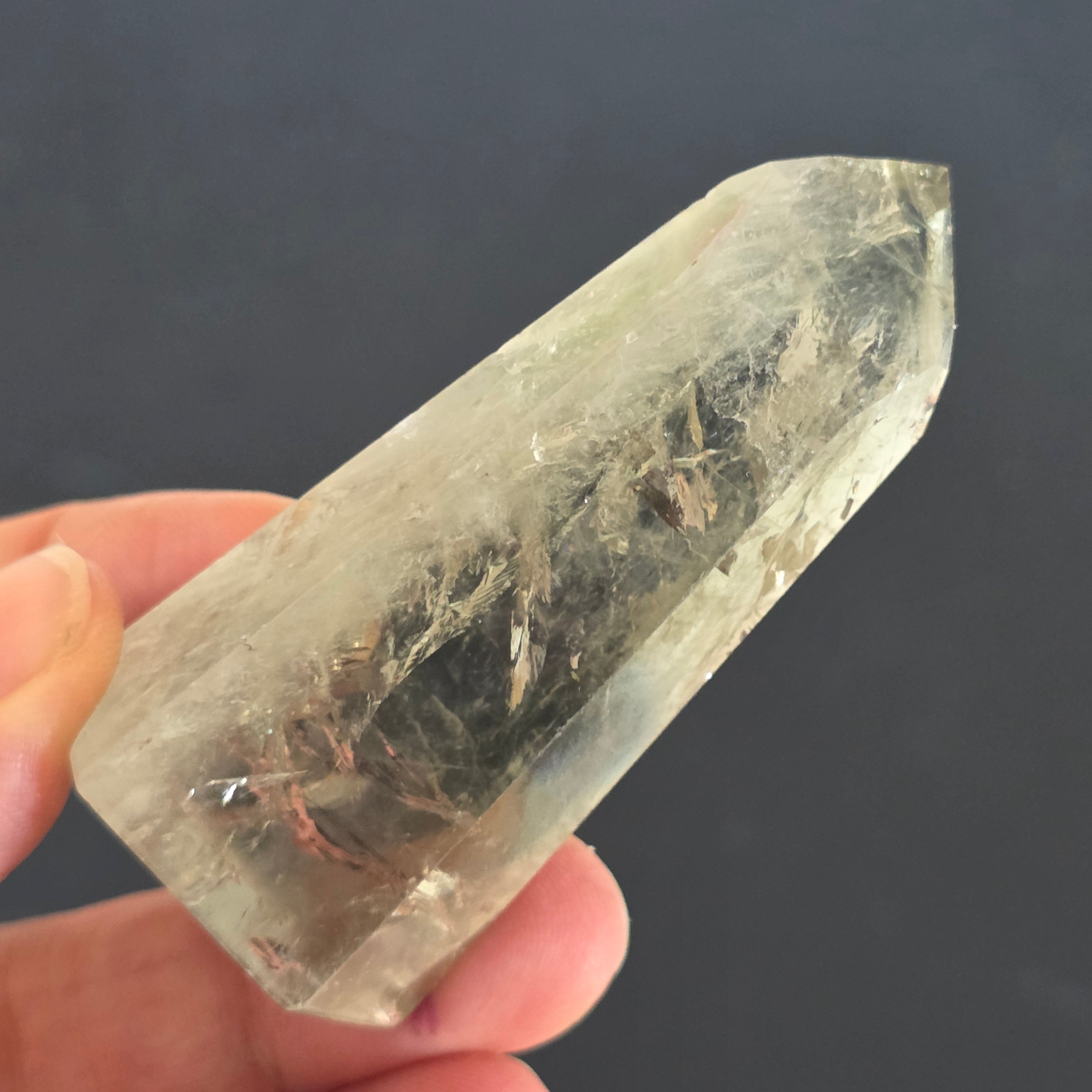 Az obelisk ametisztzöldből készült Ritka és kifinomult megjelenés, amely egyensúly és megújulás rezgését hordozza. Nyugodt és tiszta energiája önvizsgálatra és tisztaságra hív, áttetsző árnyalatai pedig a napfelkeltekelő erdő nyugalmát idézik. Egy egyedi darab, ideális a gyűjtőknek és a ritka kristályok rajongóinak.
