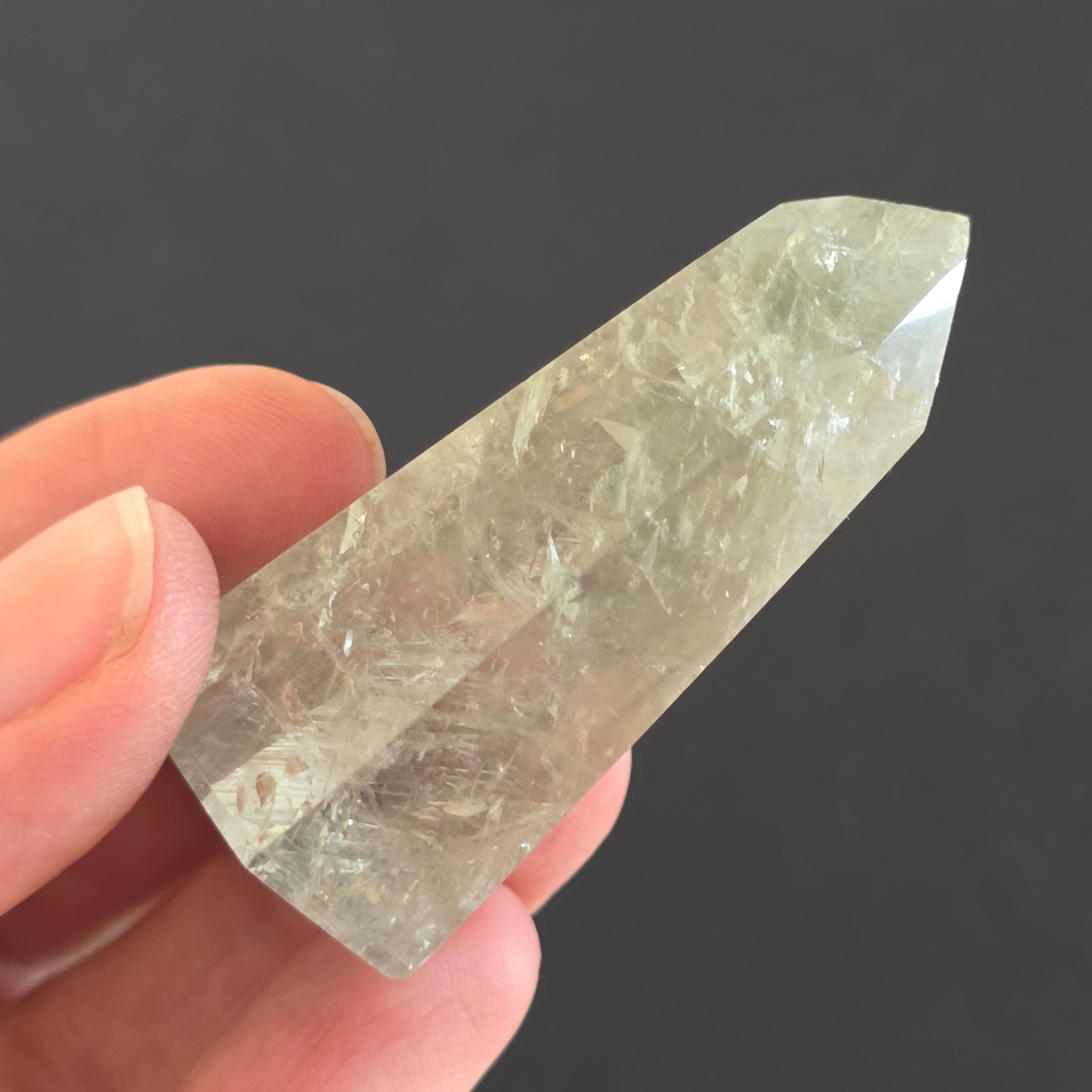 Az obelisk ametisztzöldből készült Ritka és kifinomult megjelenés, amely egyensúly és megújulás rezgését hordozza. Nyugodt és tiszta energiája önvizsgálatra és tisztaságra hív, áttetsző árnyalatai pedig a napfelkeltekelő erdő nyugalmát idézik. Egy egyedi darab, ideális a gyűjtőknek és a ritka kristályok rajongóinak.
