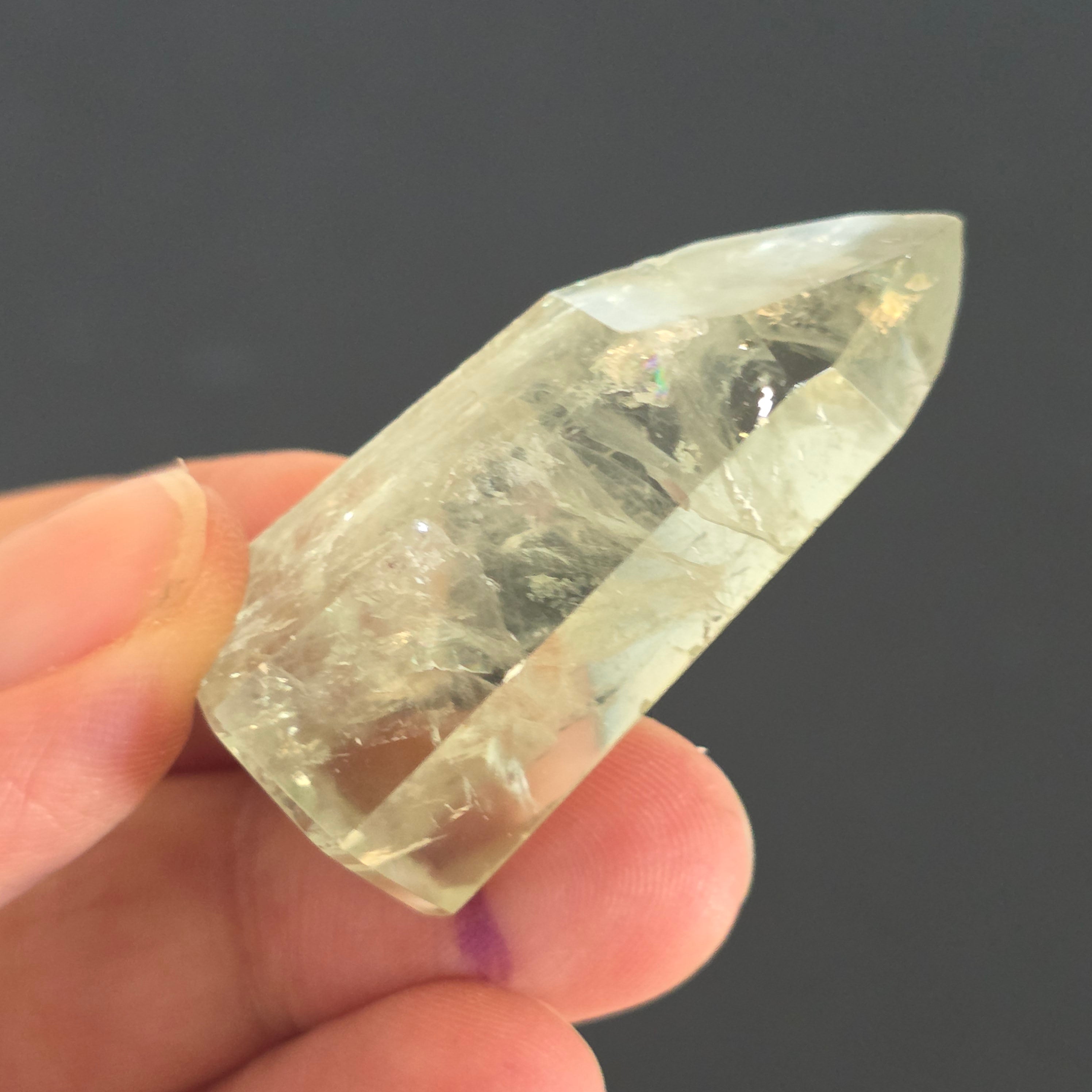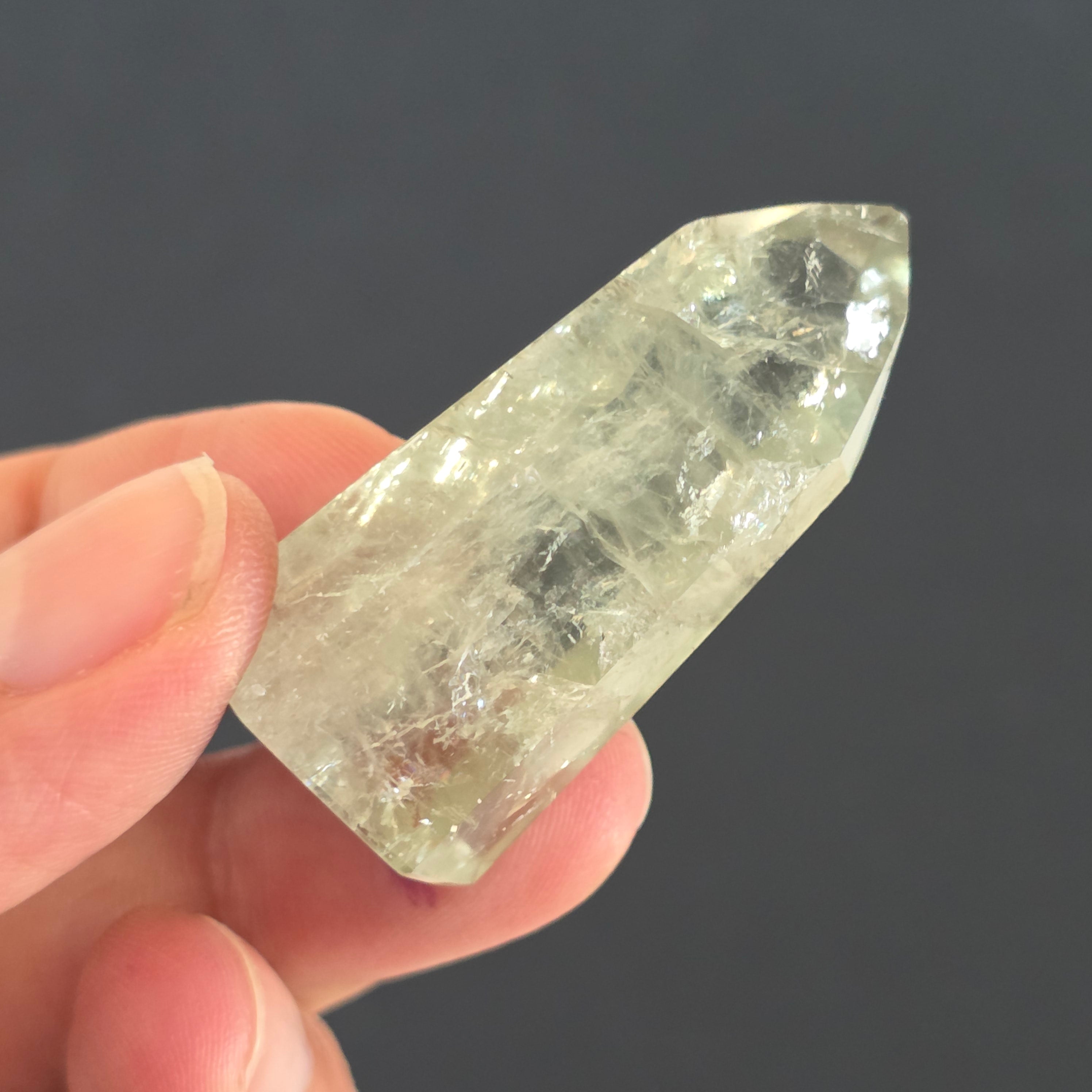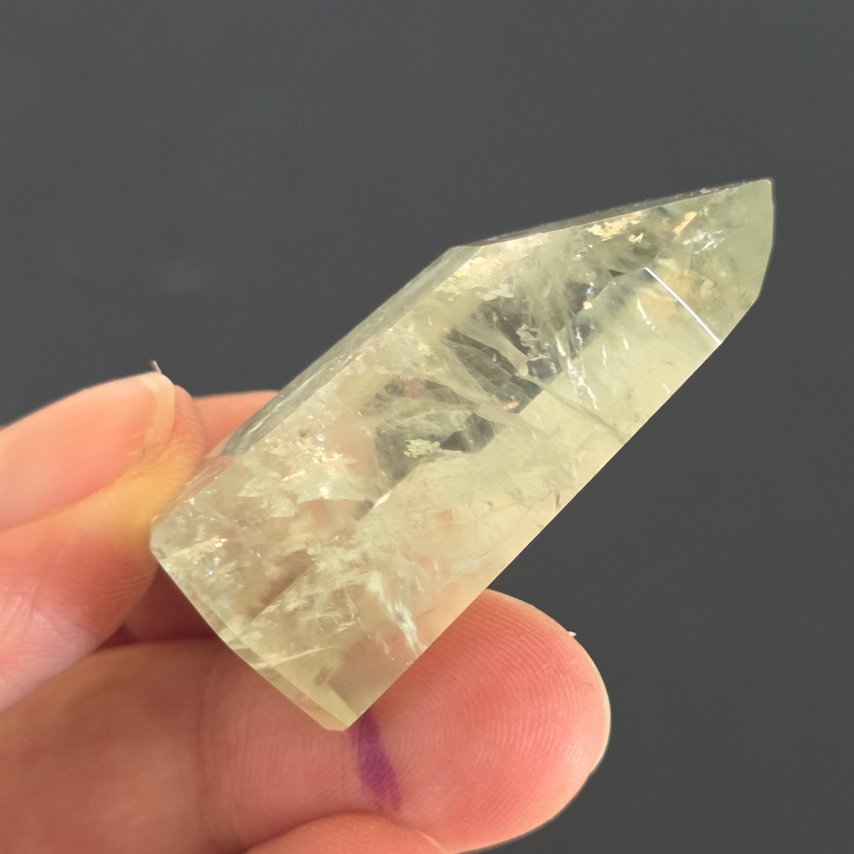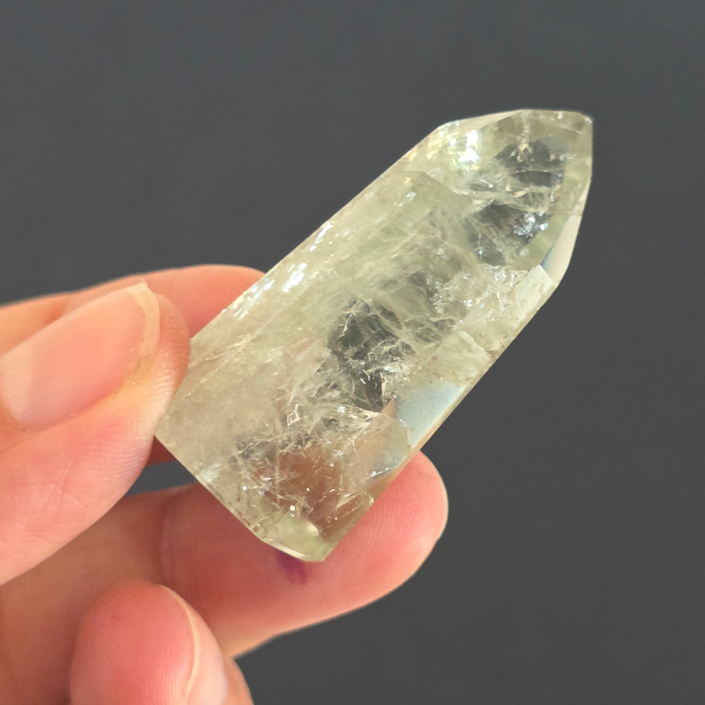 A zöld ametiszt obeliszk ritka és kifinomult látványt nyújt, az egyensúly és megújulás rezgését hordozva. Nyugodt és tiszta energiája önreflexióra és tisztánlátásra invitál, az áttetsző árnyalatok pedig egy erdő nyugalmát idézik hajnalban. Egyedi darab, ideális gyűjtőknek és ritka kristályok szerelmeseinek.
