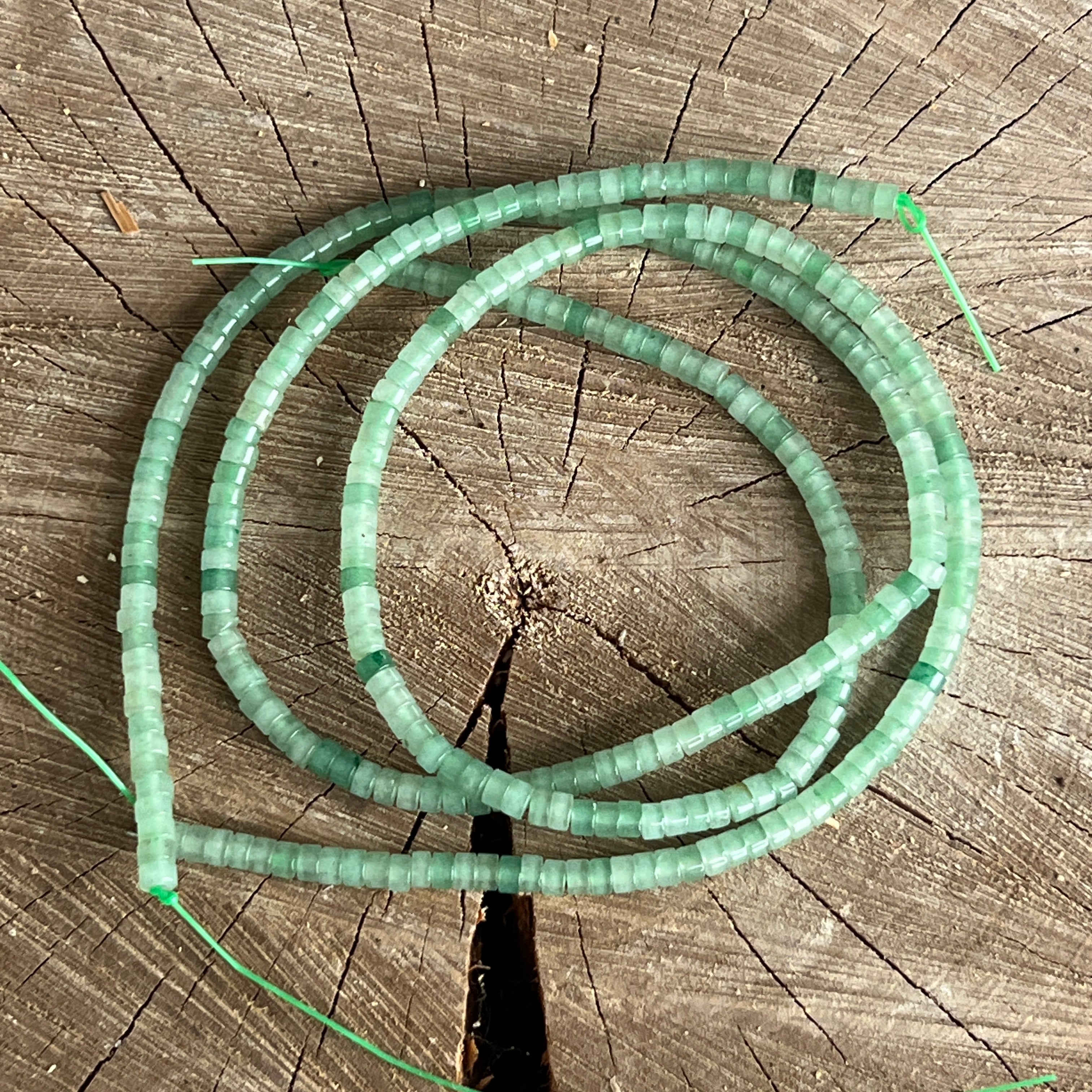 Zöld AVENTURIN gyöngysor, természetes korongokból áll, tökéletes nyakláncokhoz, karkötőkhöz vagy más kézműves ékszerekhez.