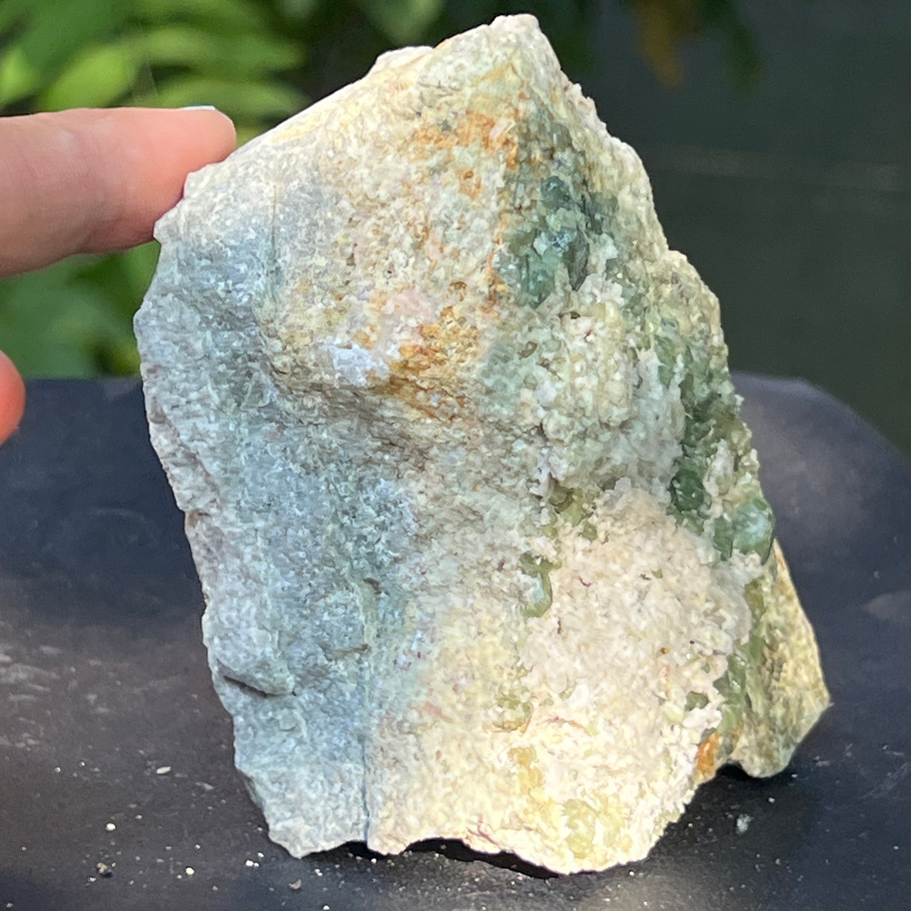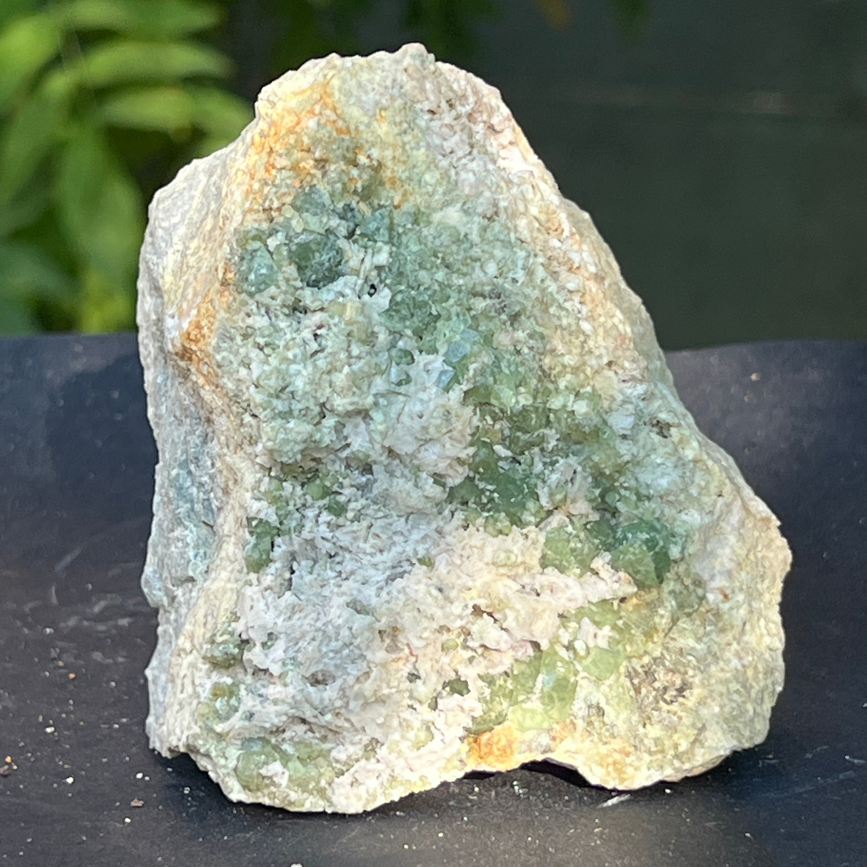 Descriere - Zöld Demantoid gránát klaszter mátrixon – nyers példány Erongóból, Namíbia | Modell 11