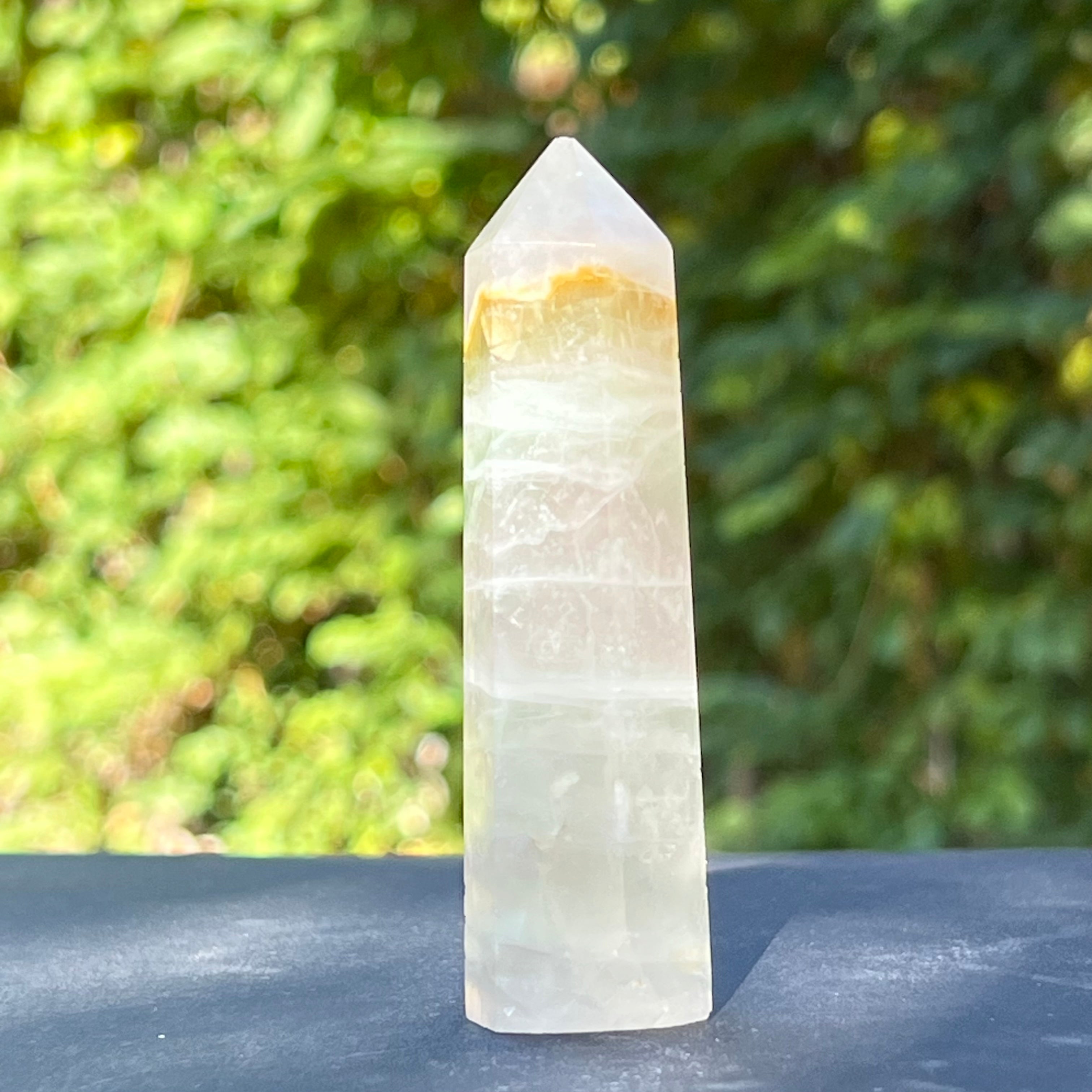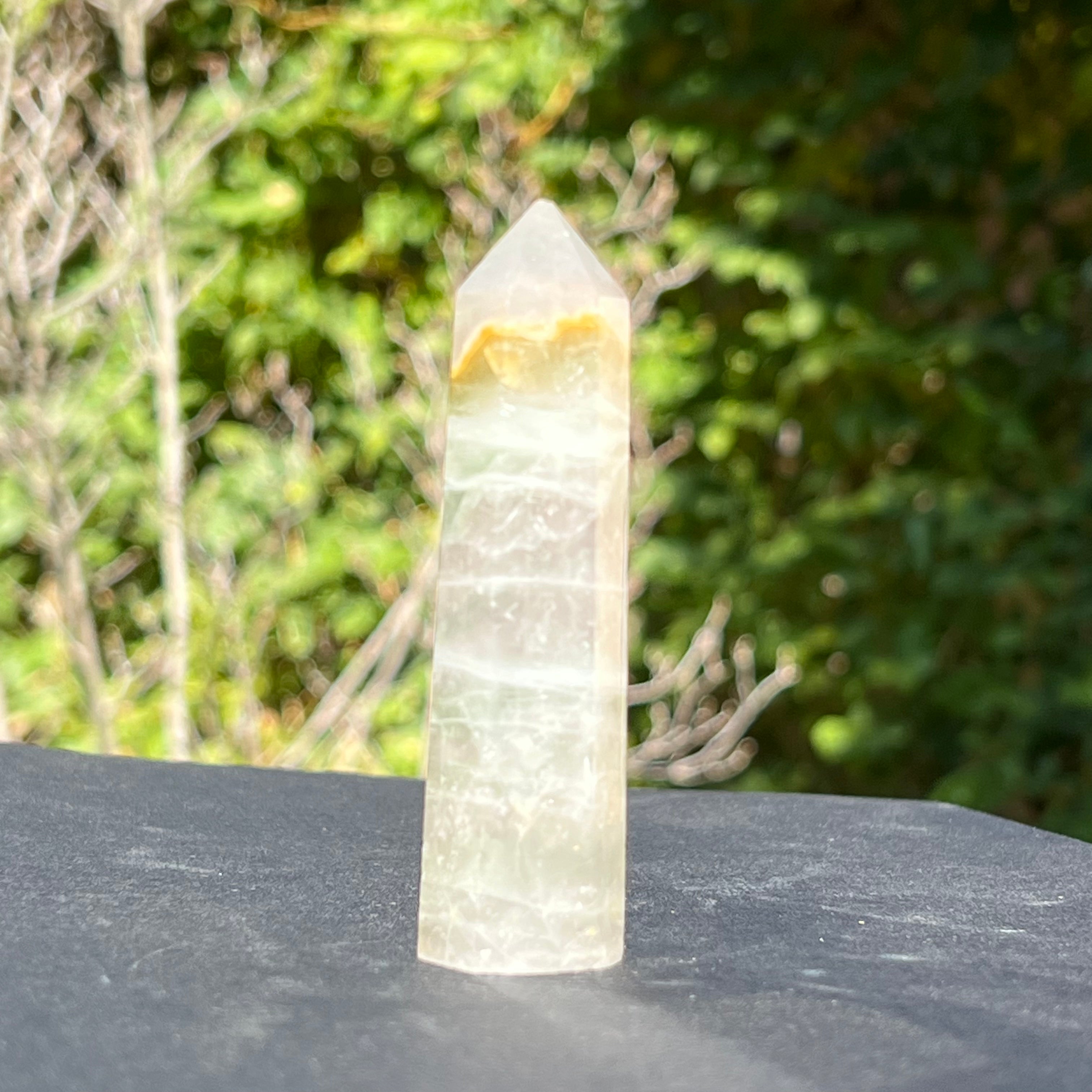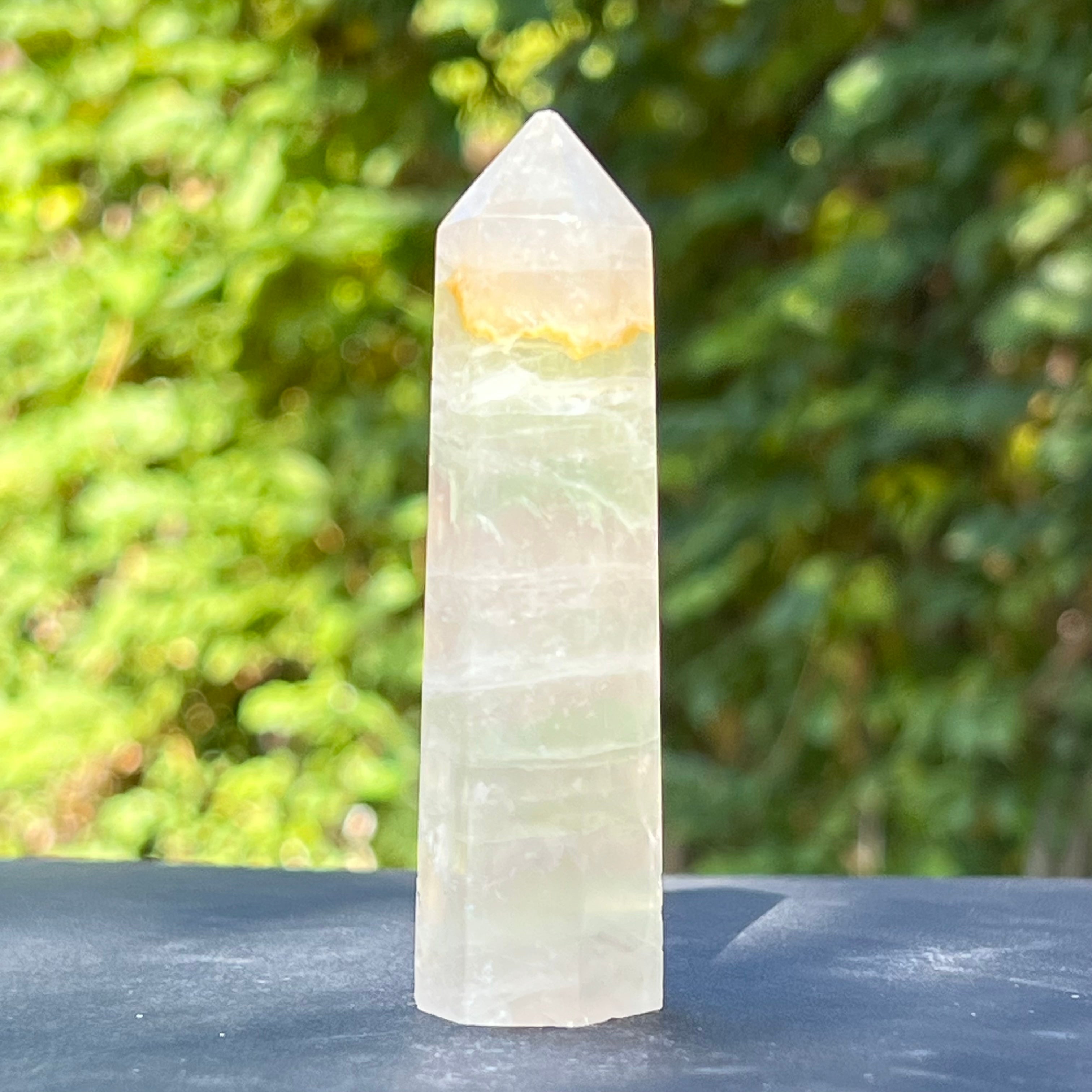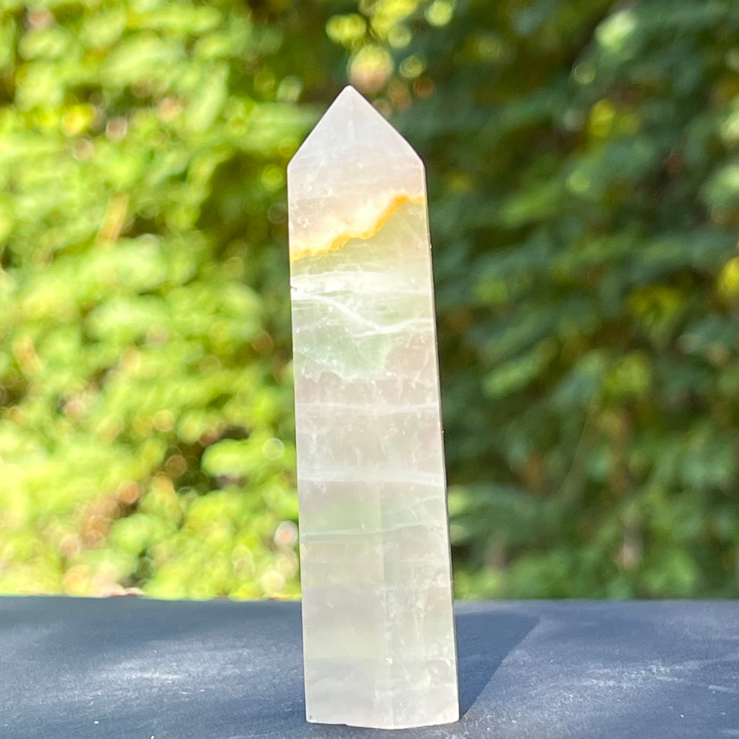 Zöld fluorit obeliszk, méret: 9*2,5*2,5cm