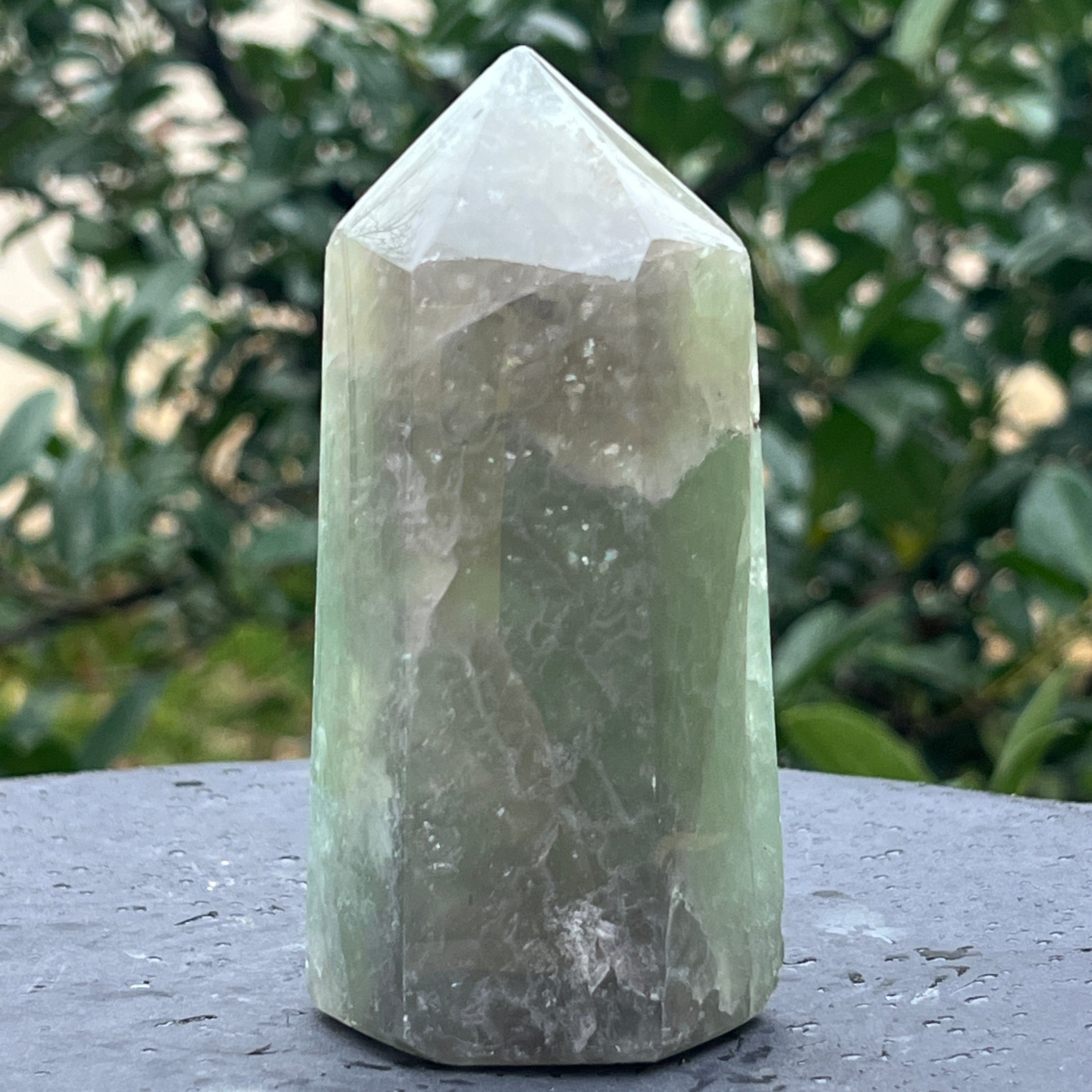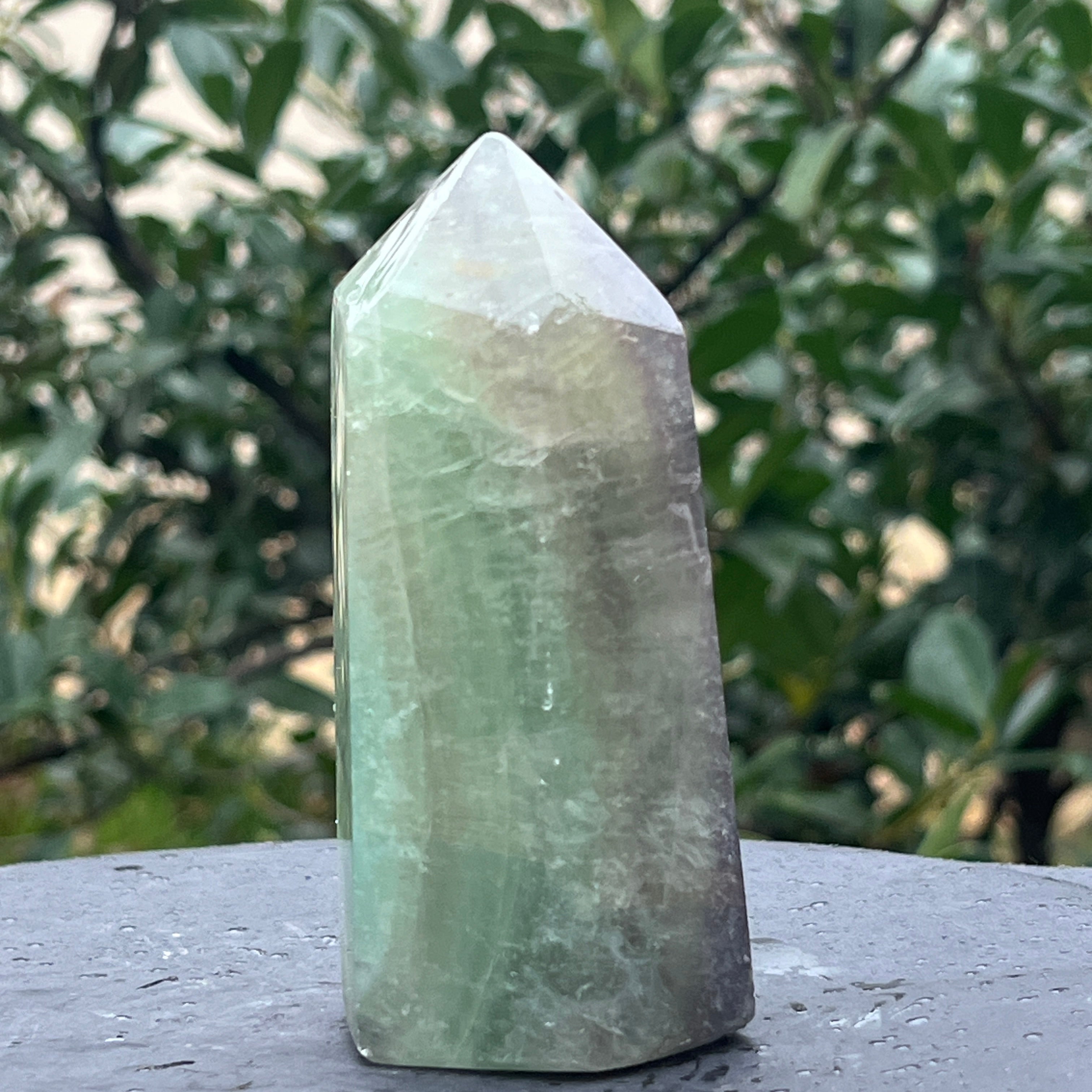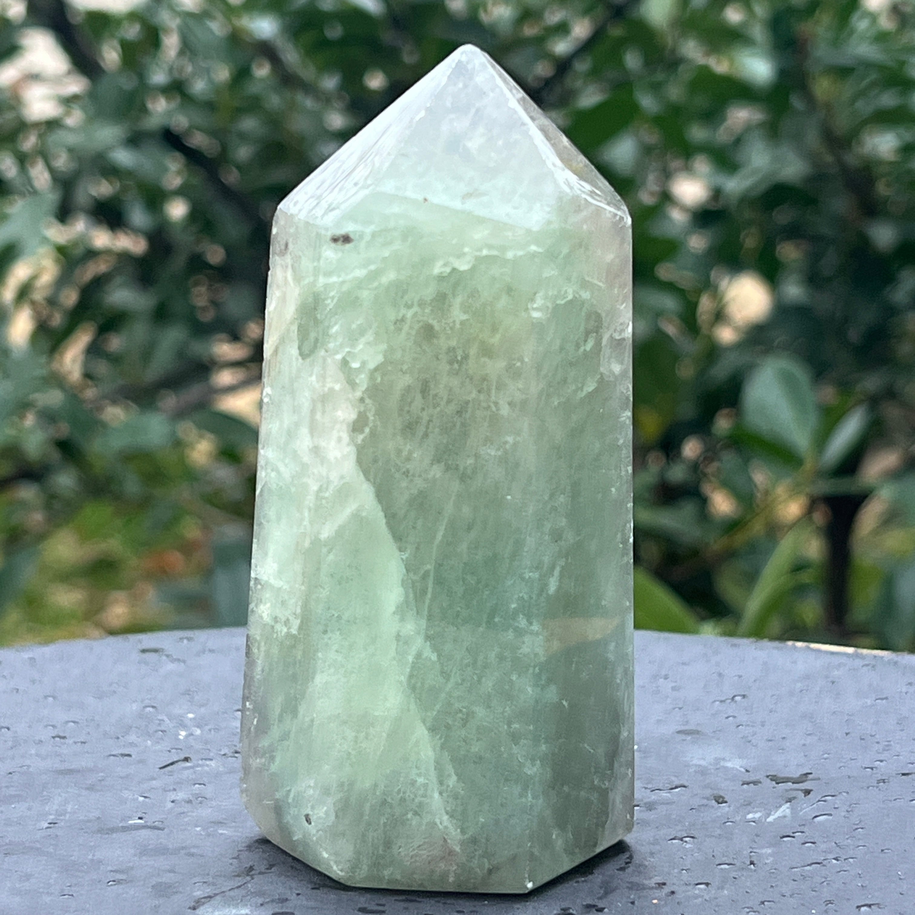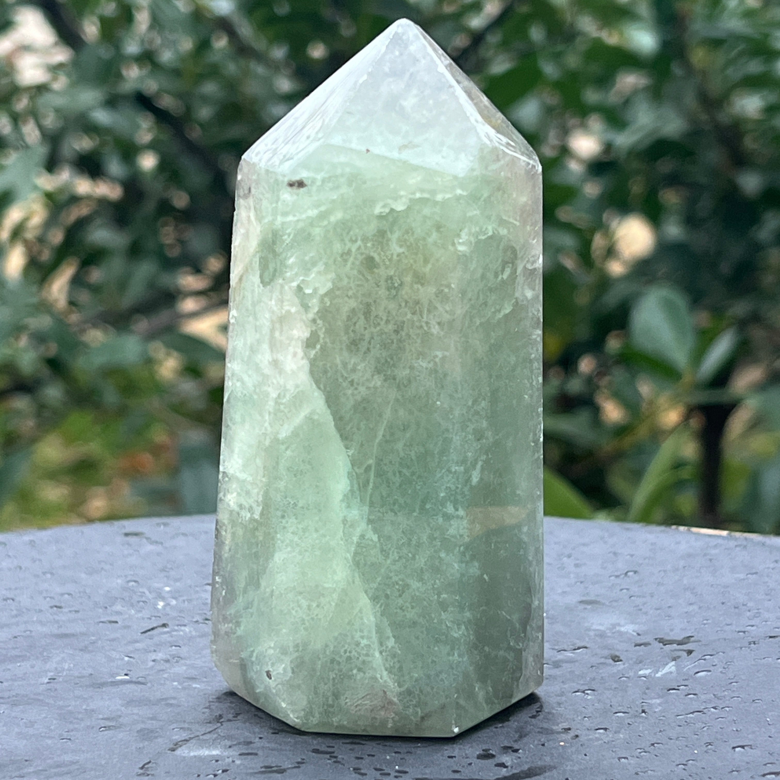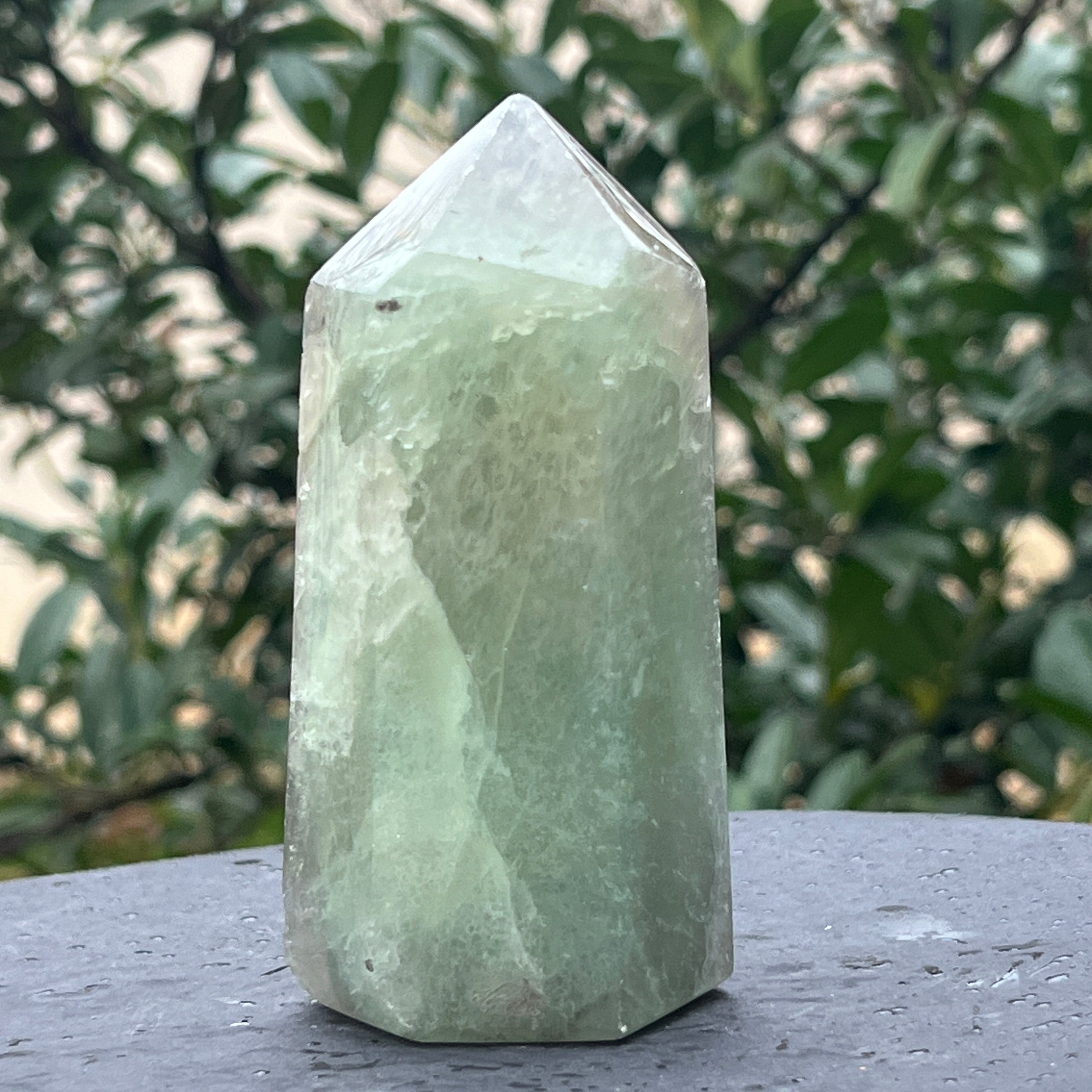 Zöld fluorit obeliszk, 22-es modell, méret: 11,1 * 5,5 * 5,5 cm