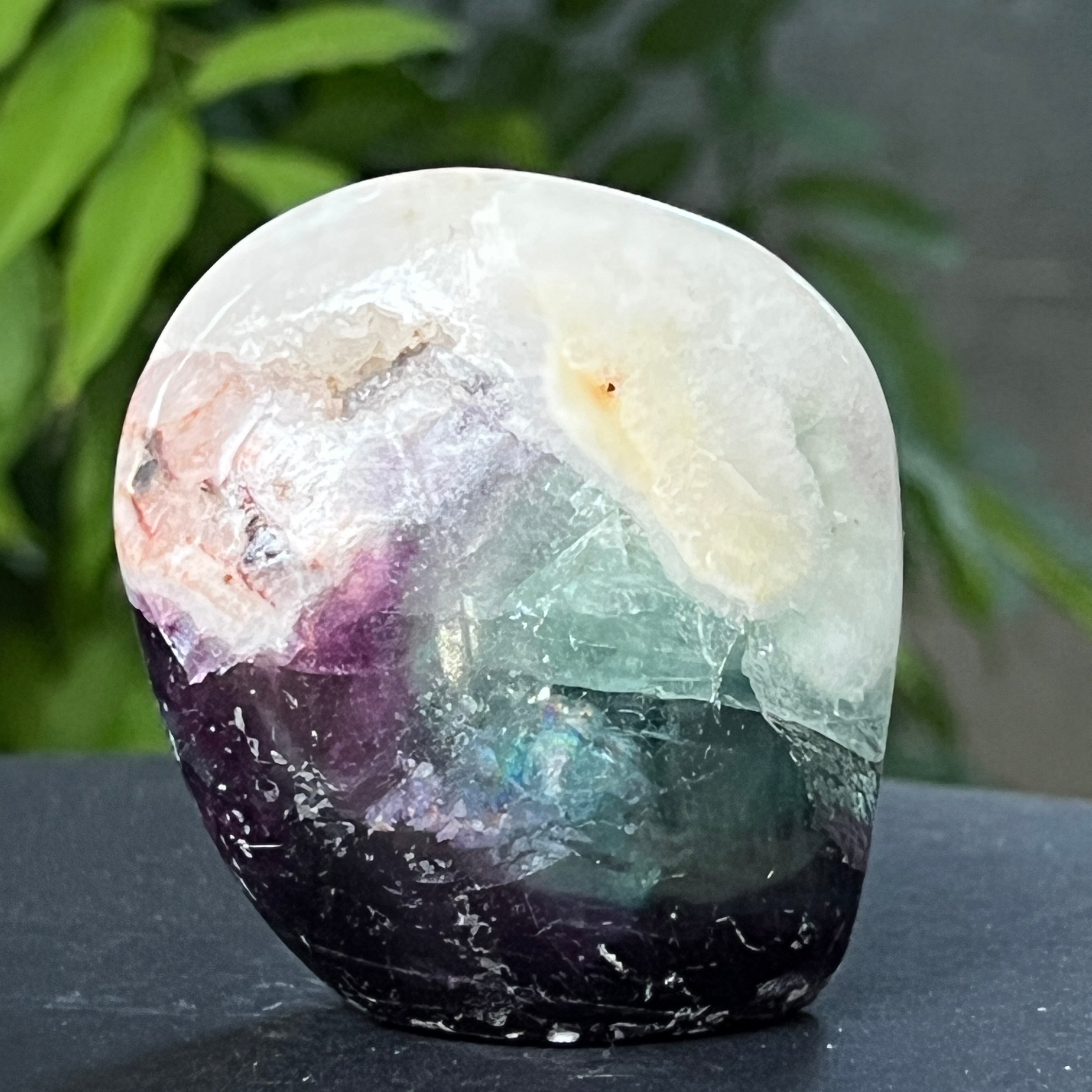 A szivárvány fluorit segít az energia kiegyensúlyozásában és harmonizálásában a környezetben, és gyakran használják annak érdekében, hogy a helyzeteket több nézőpontból láthassuk, és szélesítsük a perspektívánkat.
