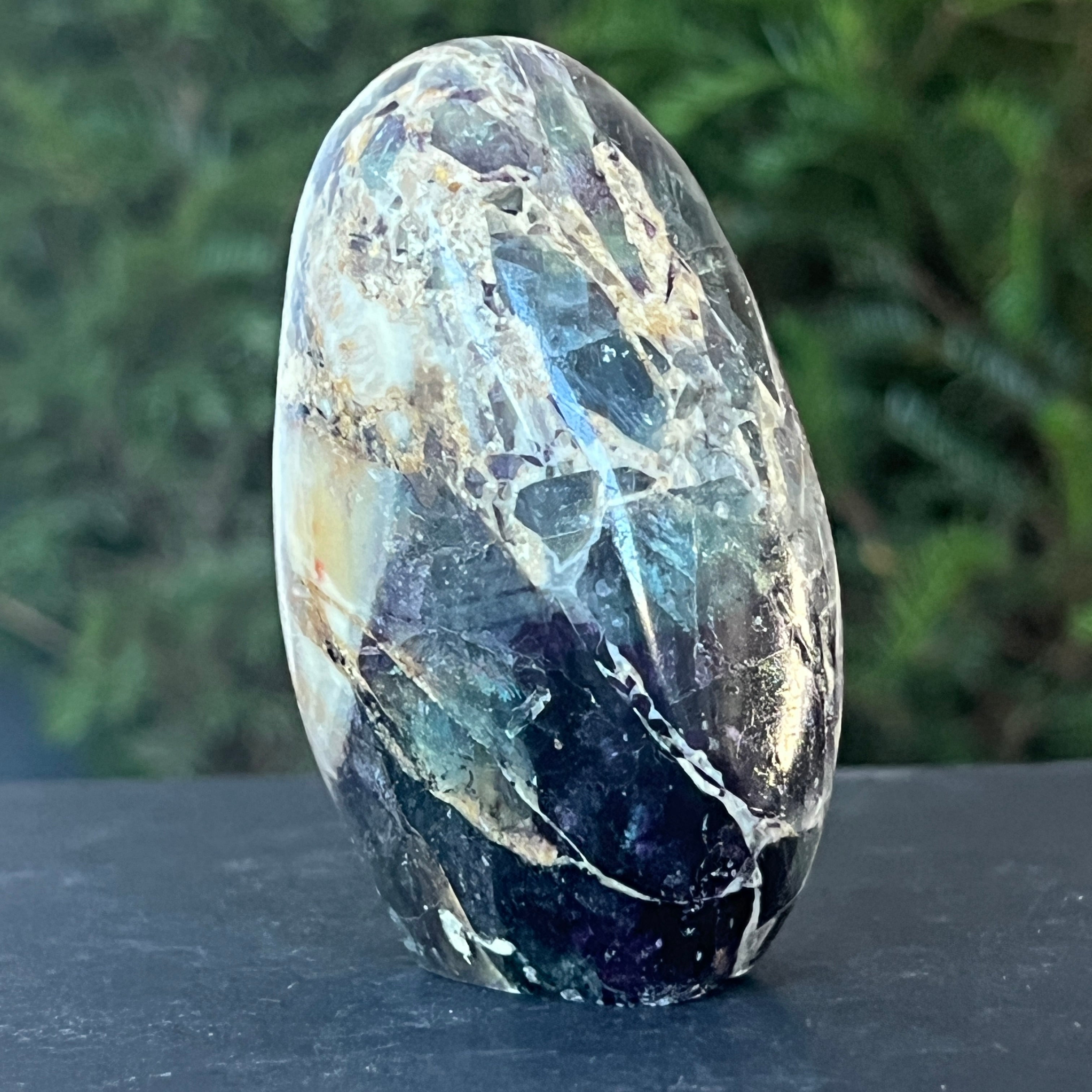 A szivárvány fluorit segít egyensúlyba hozni és harmonizálni a környező energiát, és gyakran használják a helyzetek több szemszögből való meglátására és a perspektívánk kiterjesztésére.