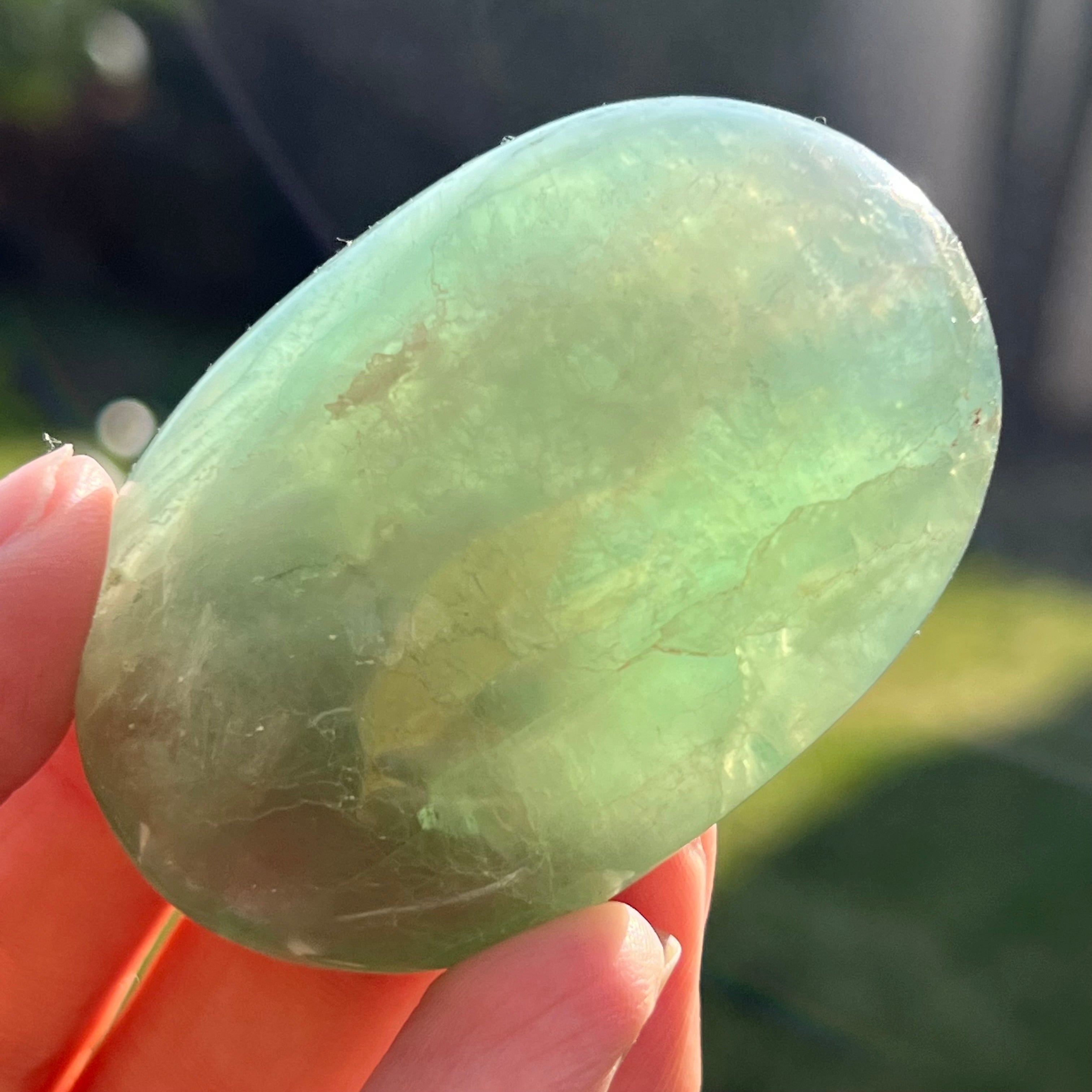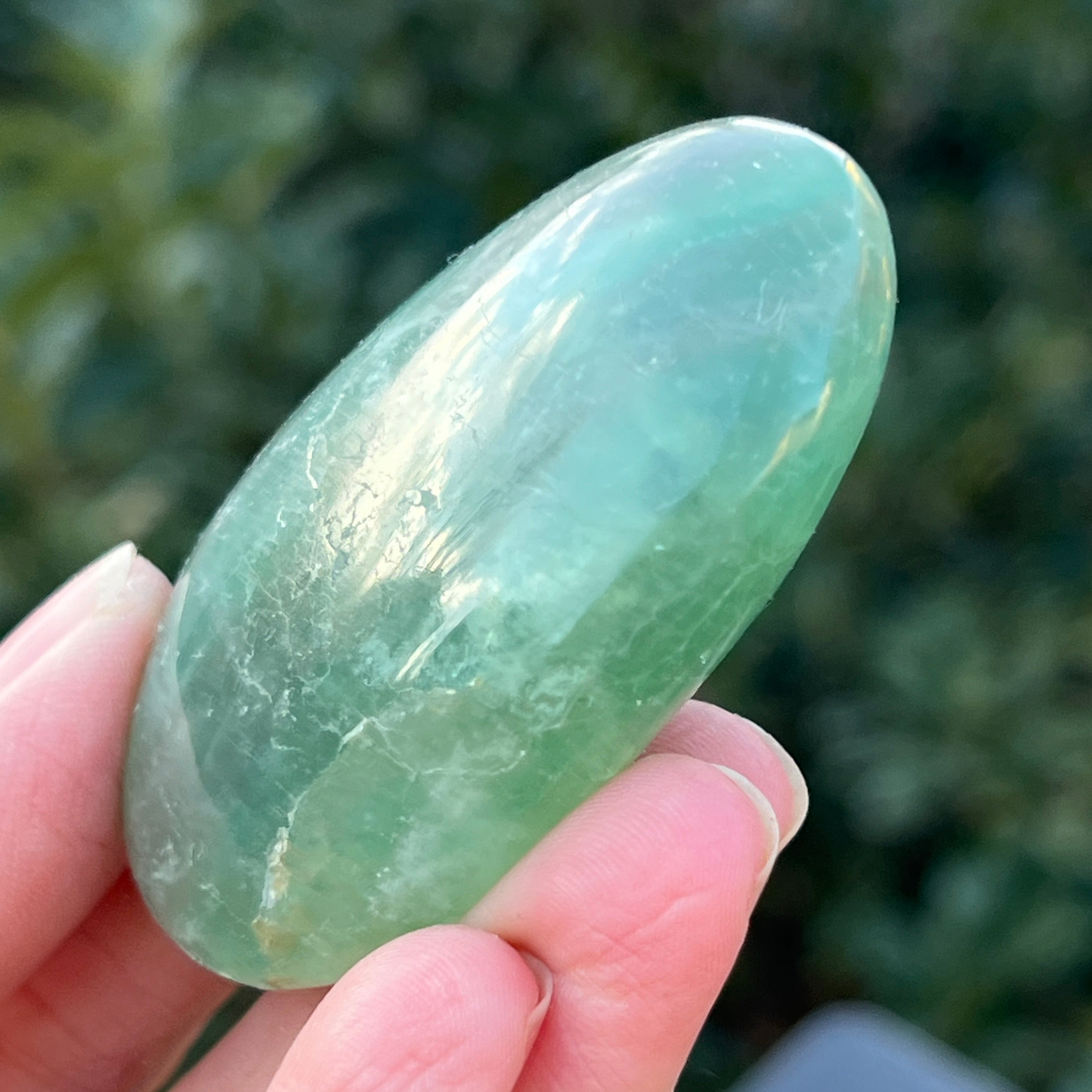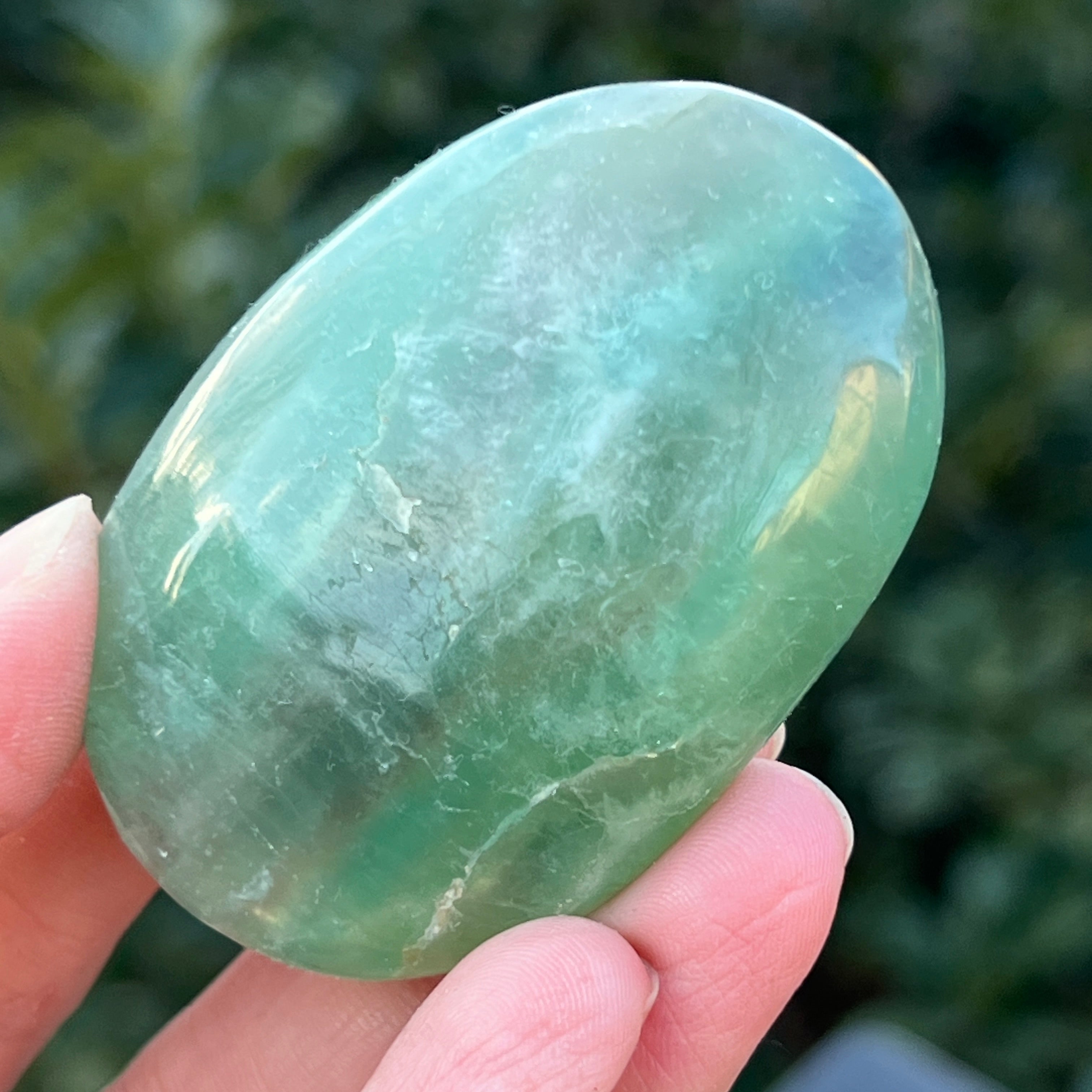 Zöld fluorit tenyérkő 11-es modell, méret: 6 * 4 * 1,8 cm