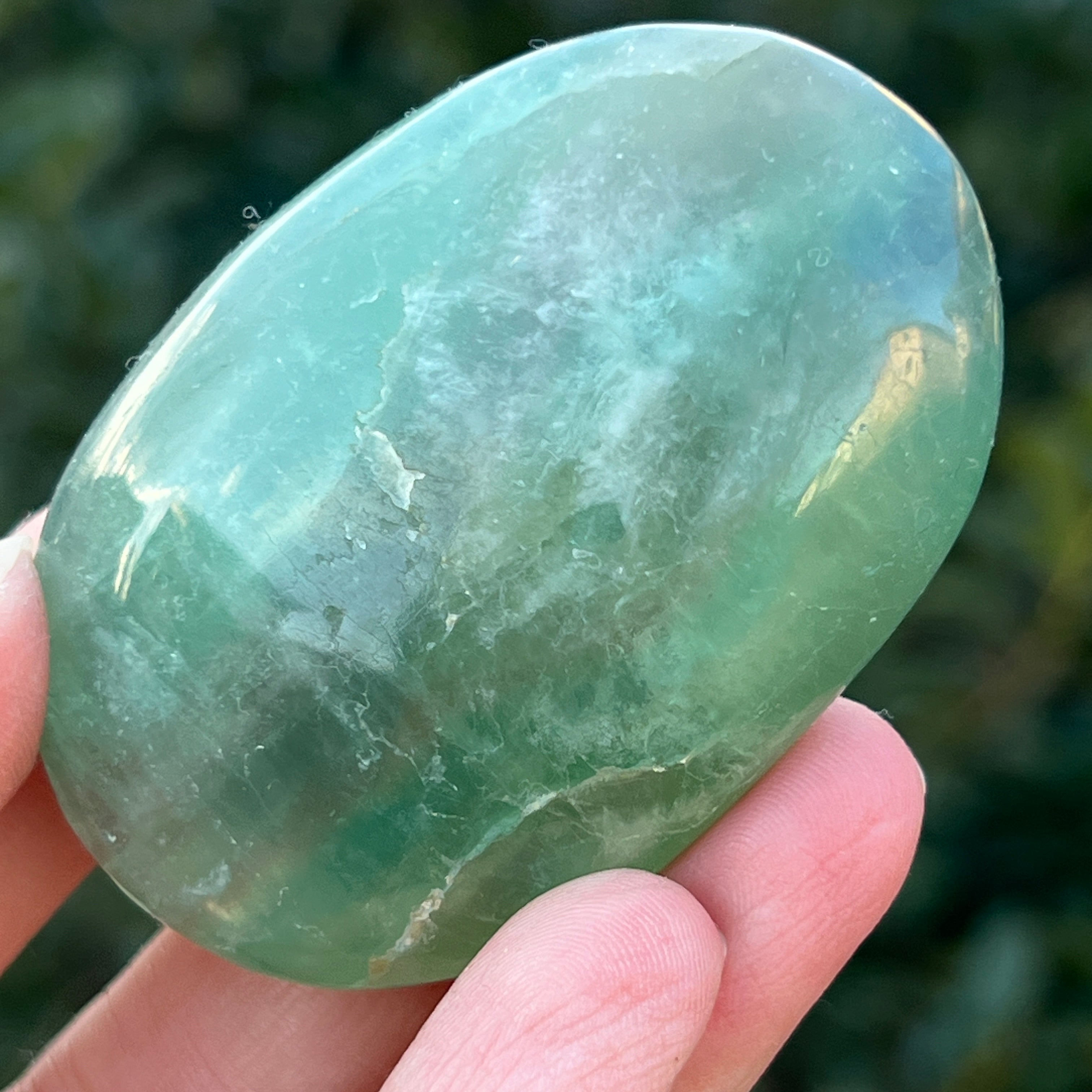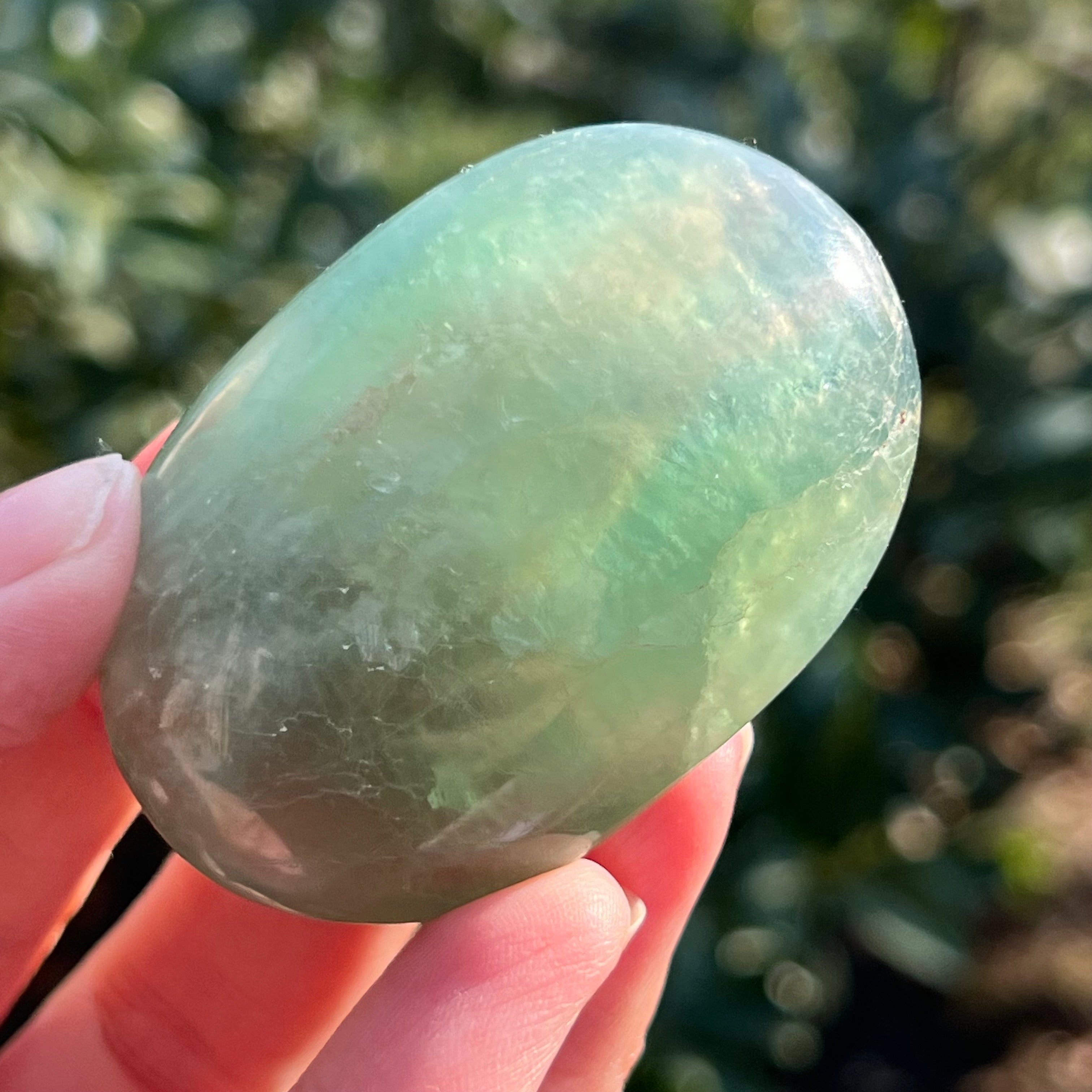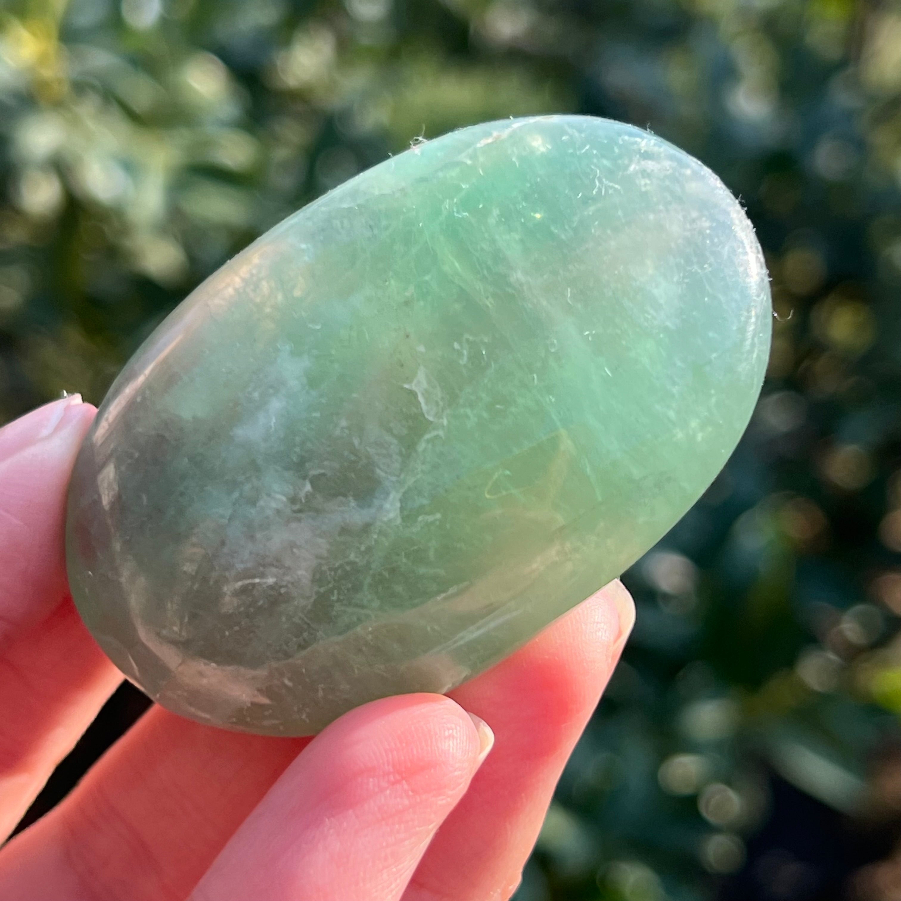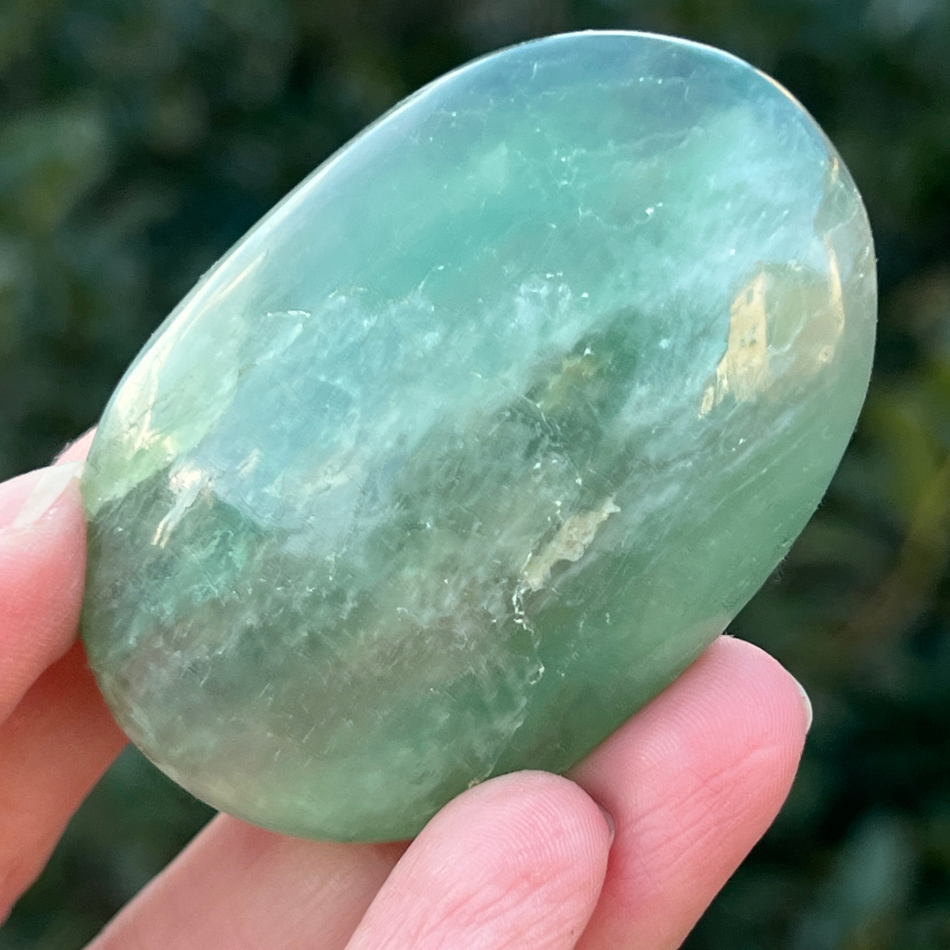 Zöld fluorit tenyérkő 11-es modell, méret: 6 * 4 * 1,8 cm