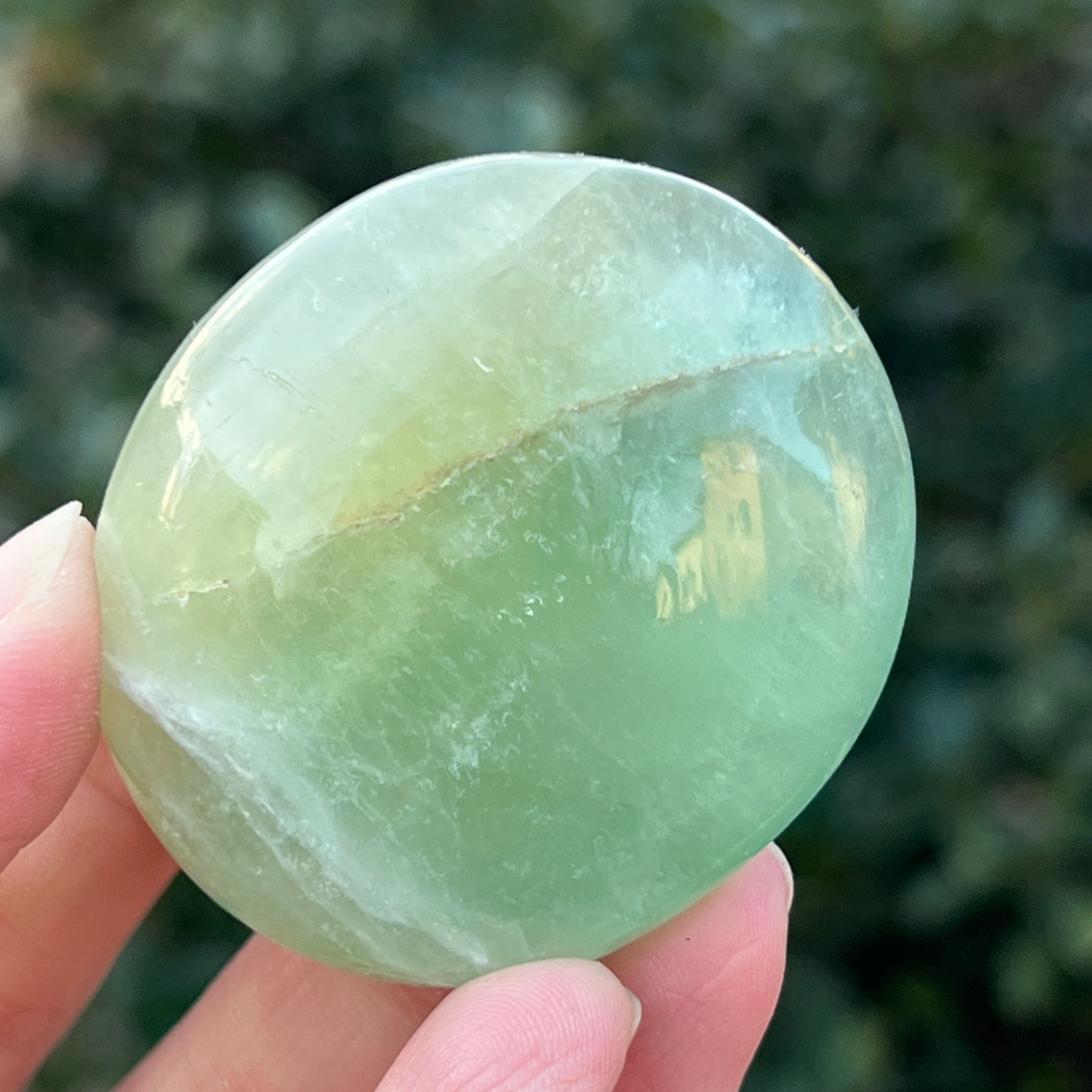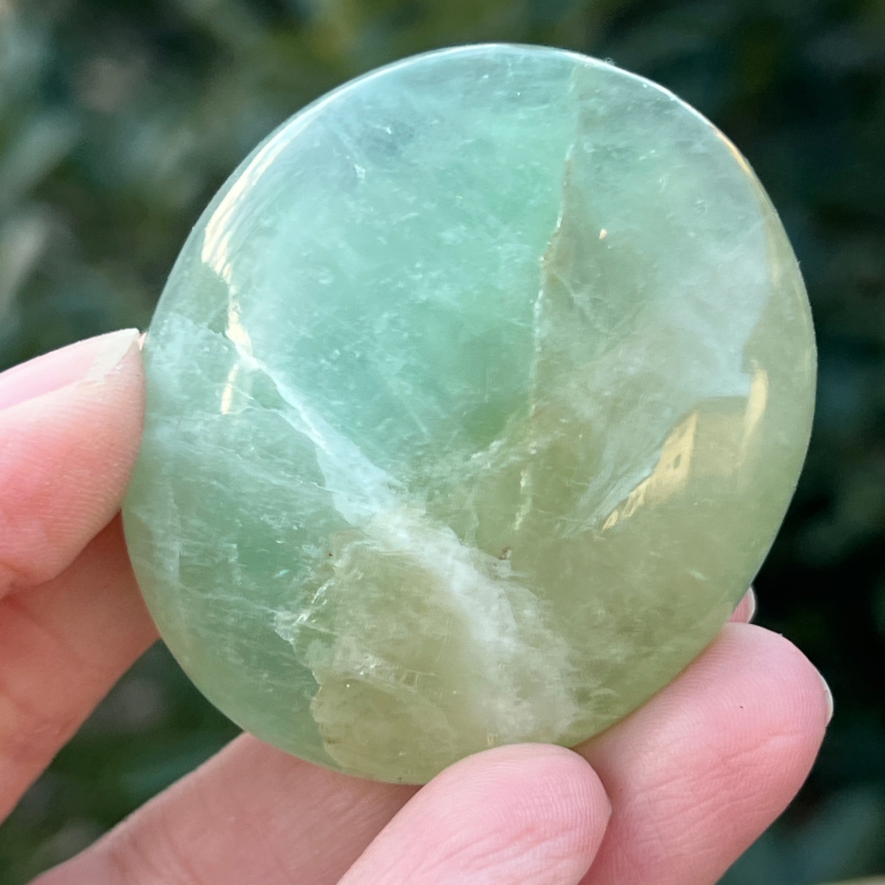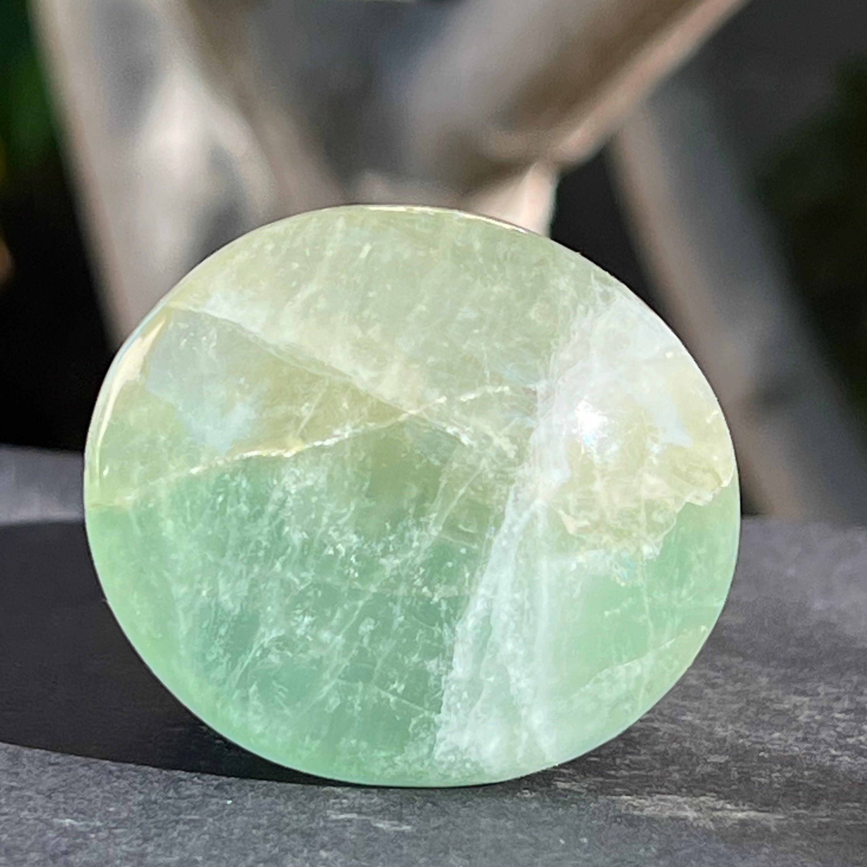 Zöld fluorit tenyérkő, 1. modell, 5,2 * 4,6 * 2 cm