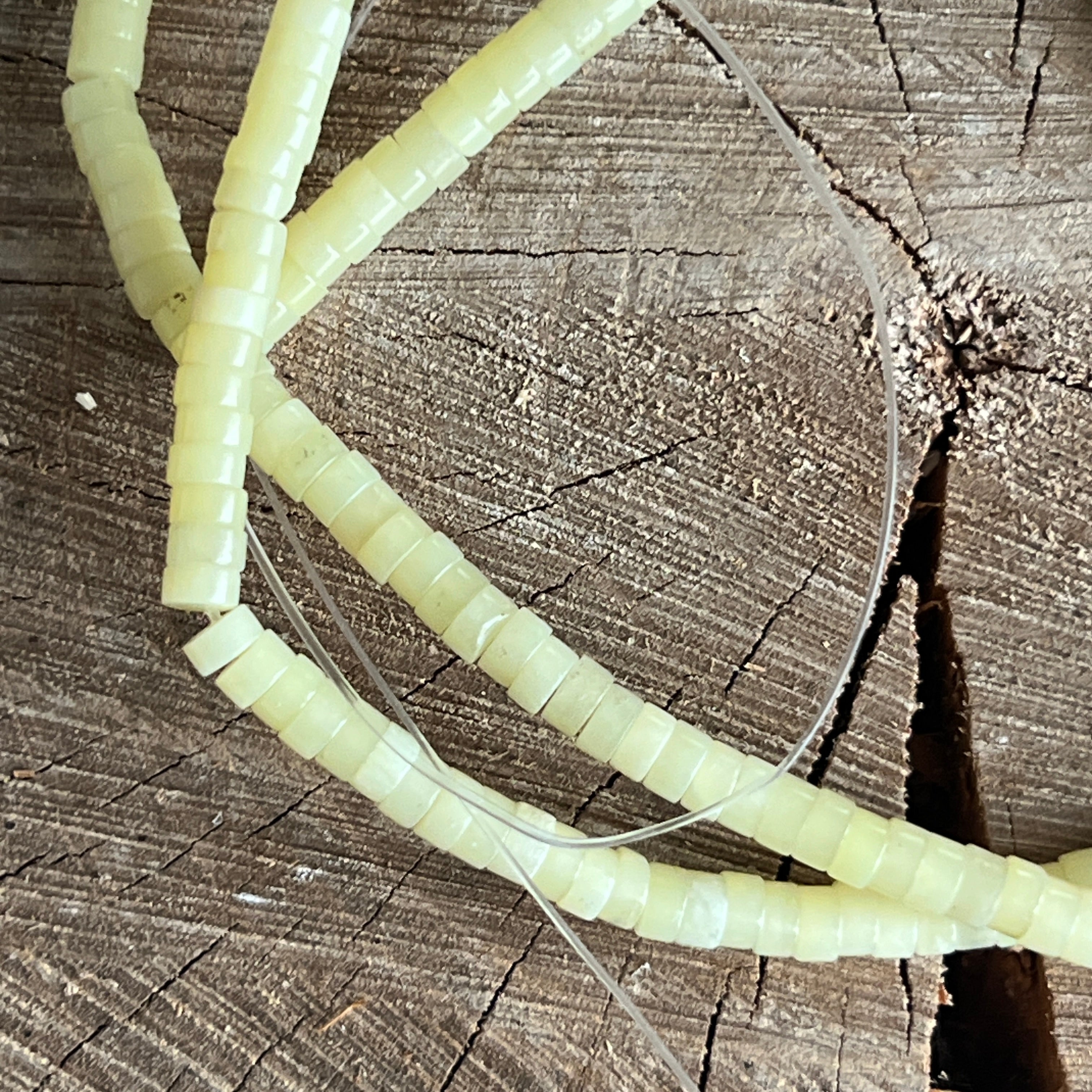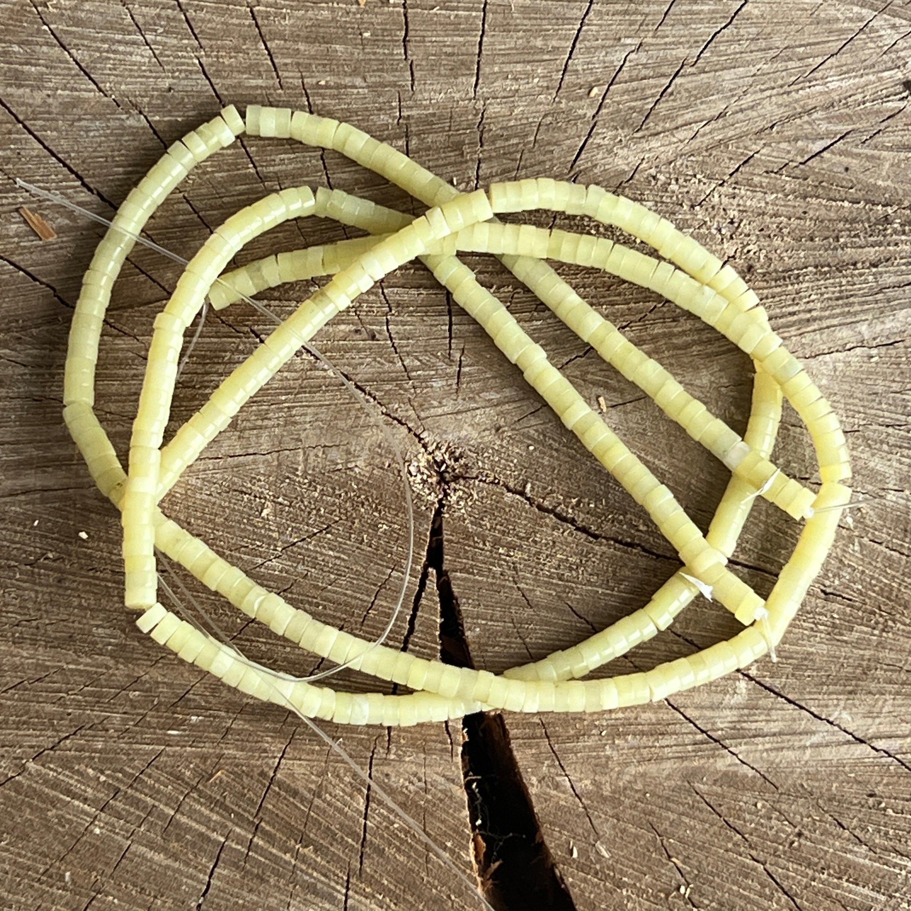 Zöld jáde gyöngy lánc, mely természetes korongokból áll, tökéletes nyakláncokhoz, karkötőkhöz vagy más kézműves ékszerekhez.