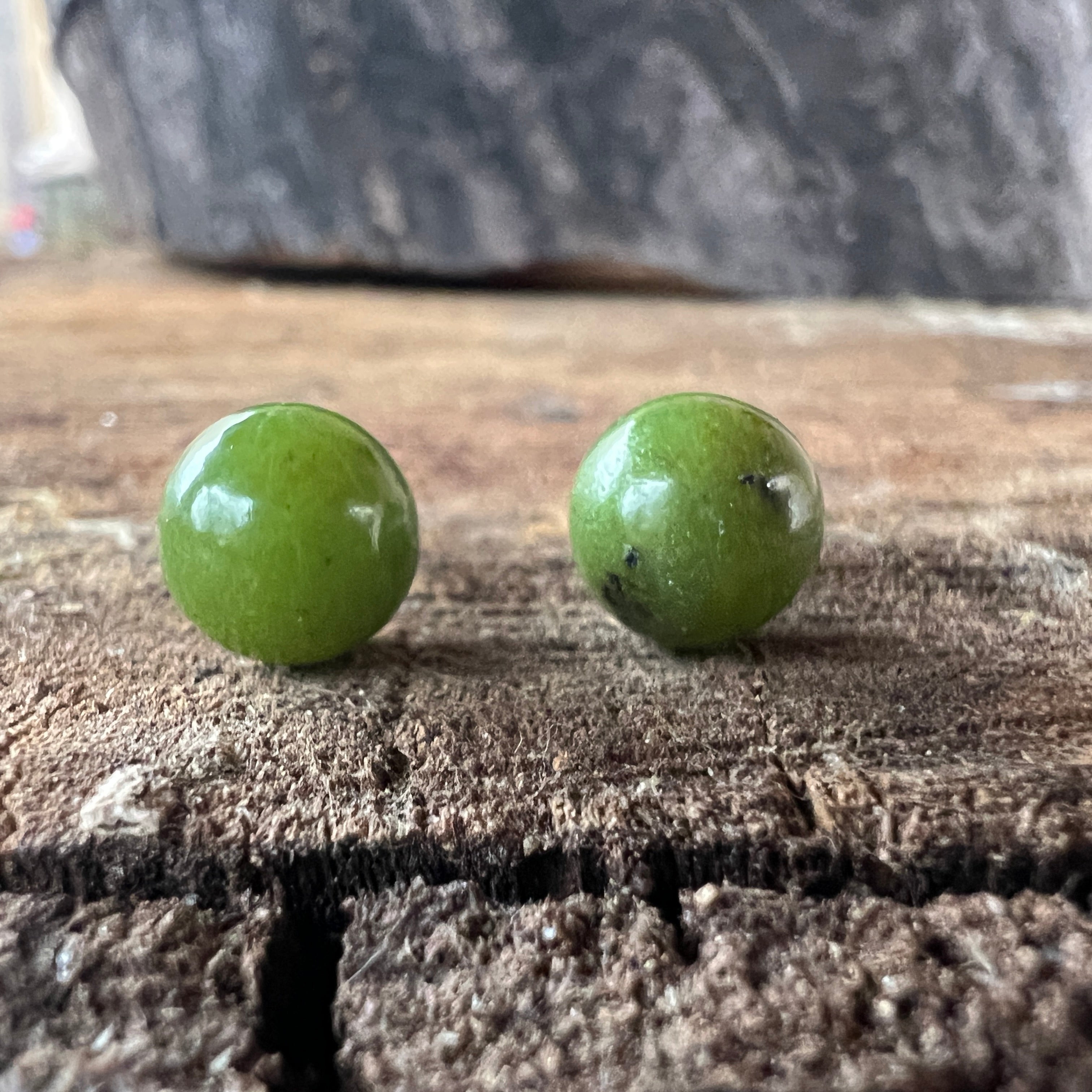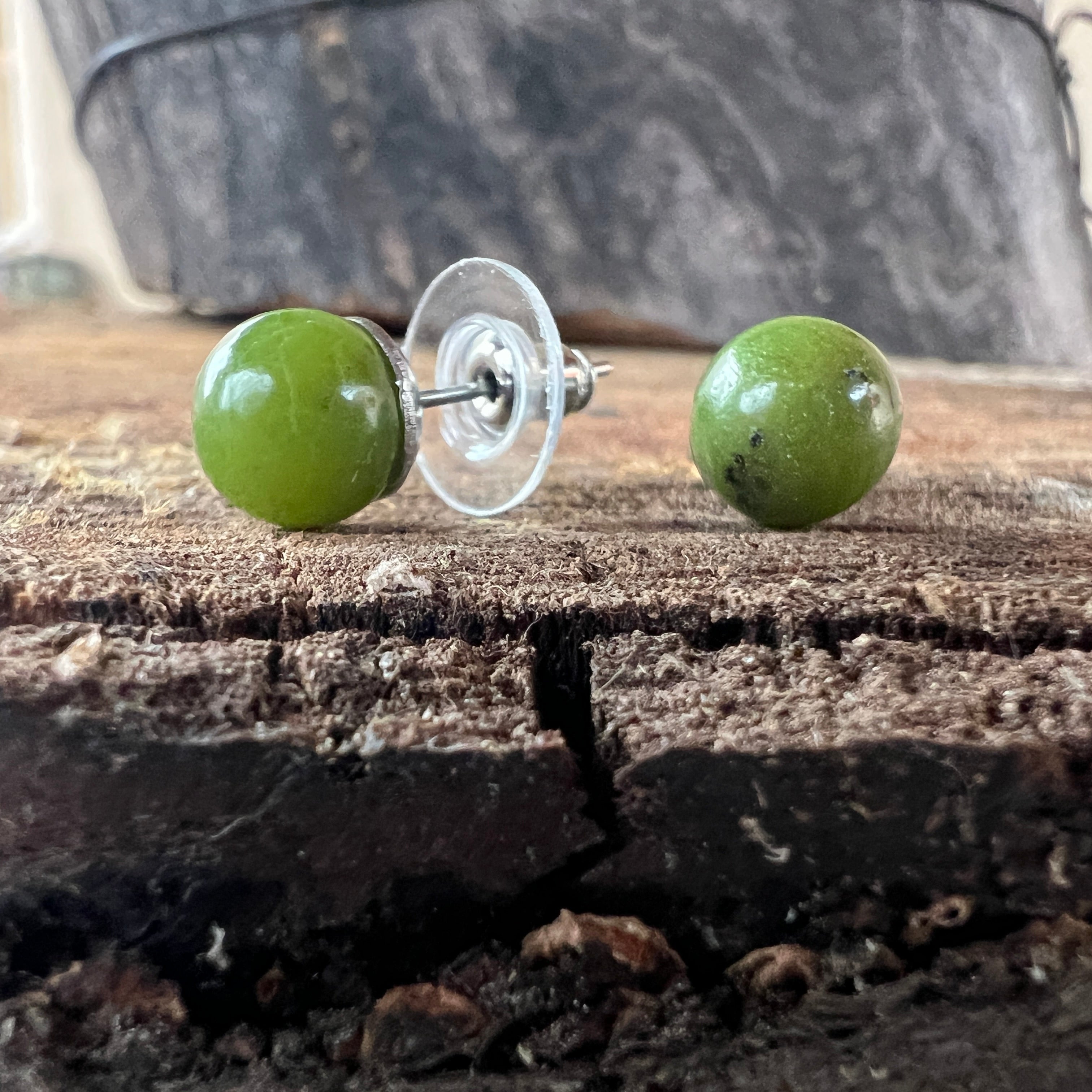 Zöld jade gömb fülbevaló 8 mm-es szegecs