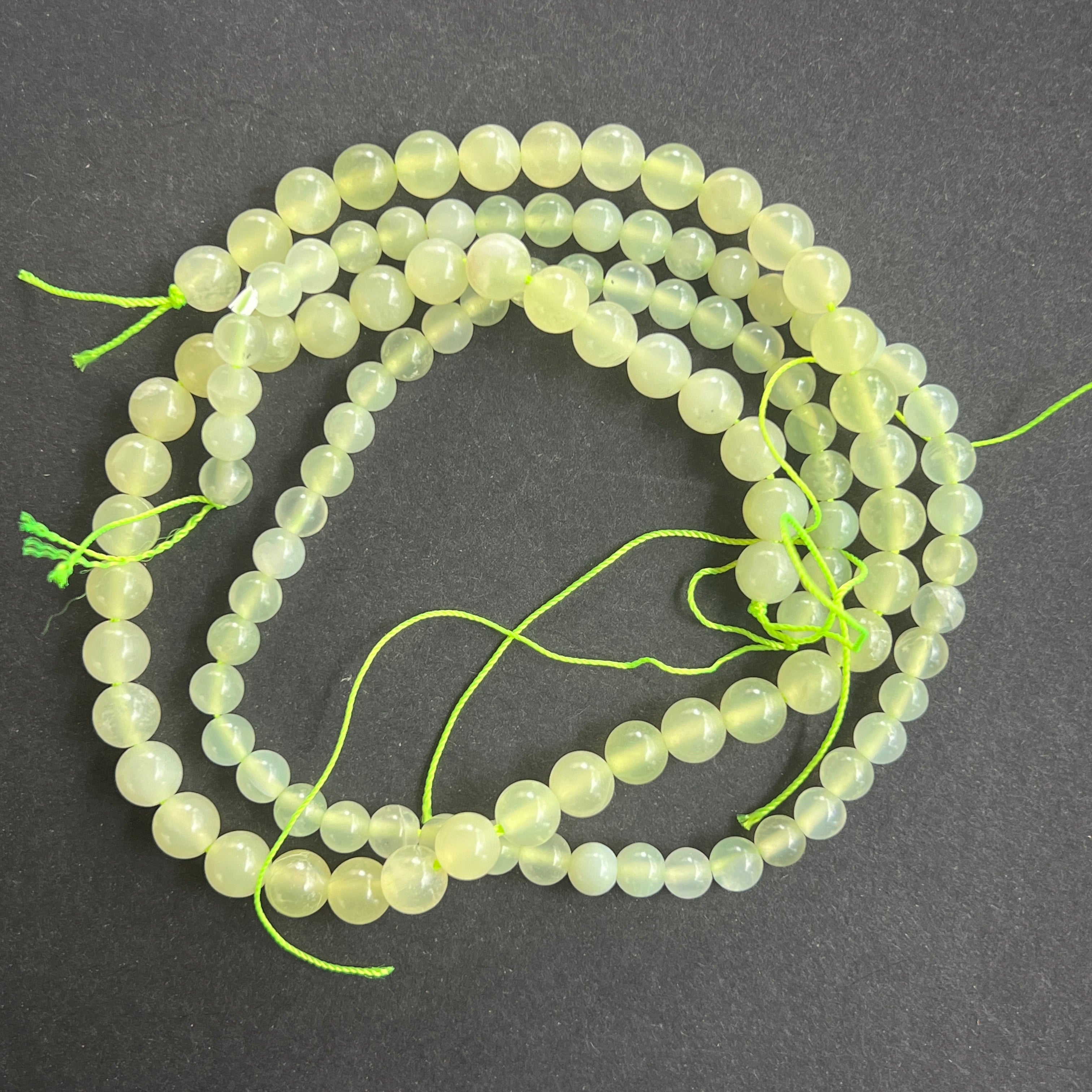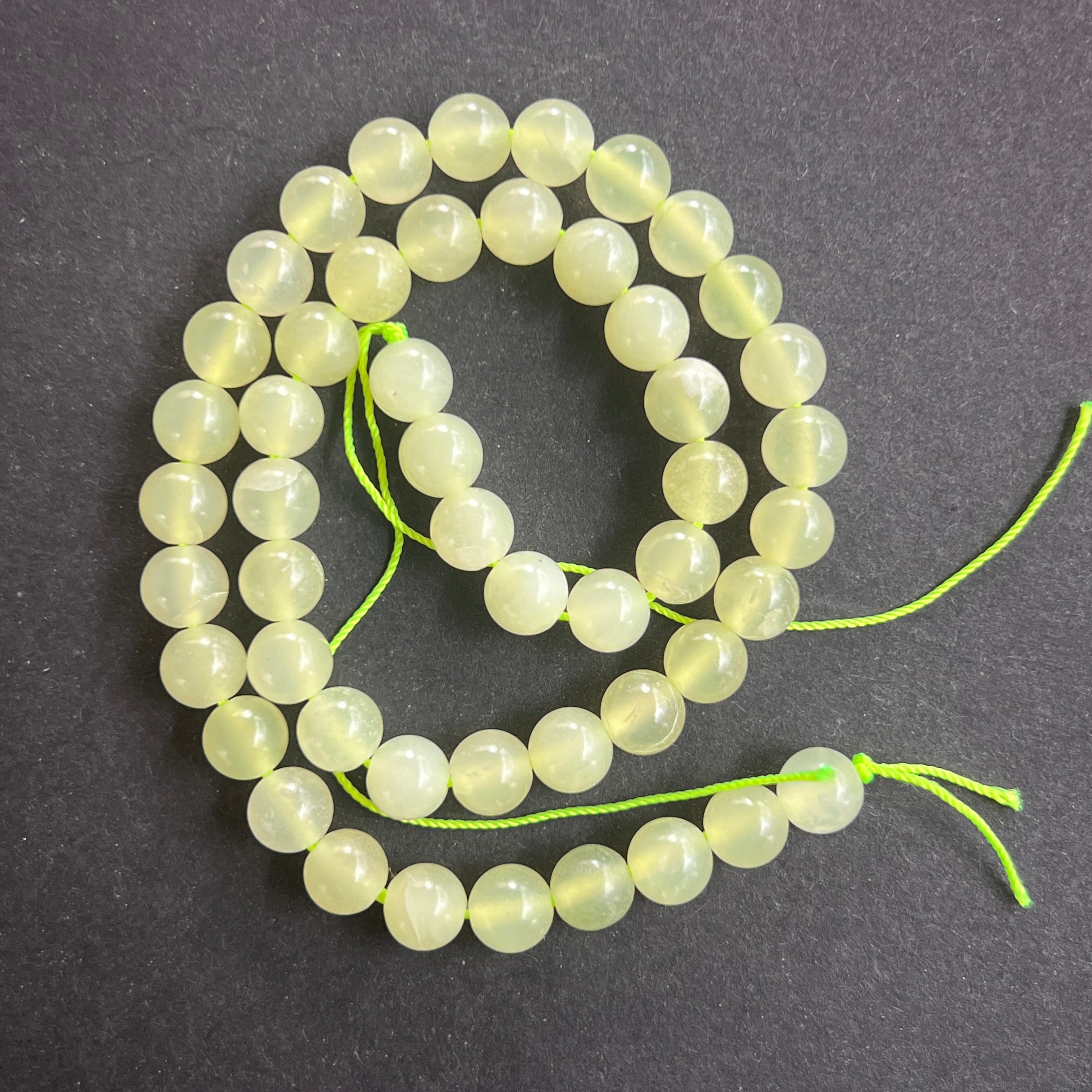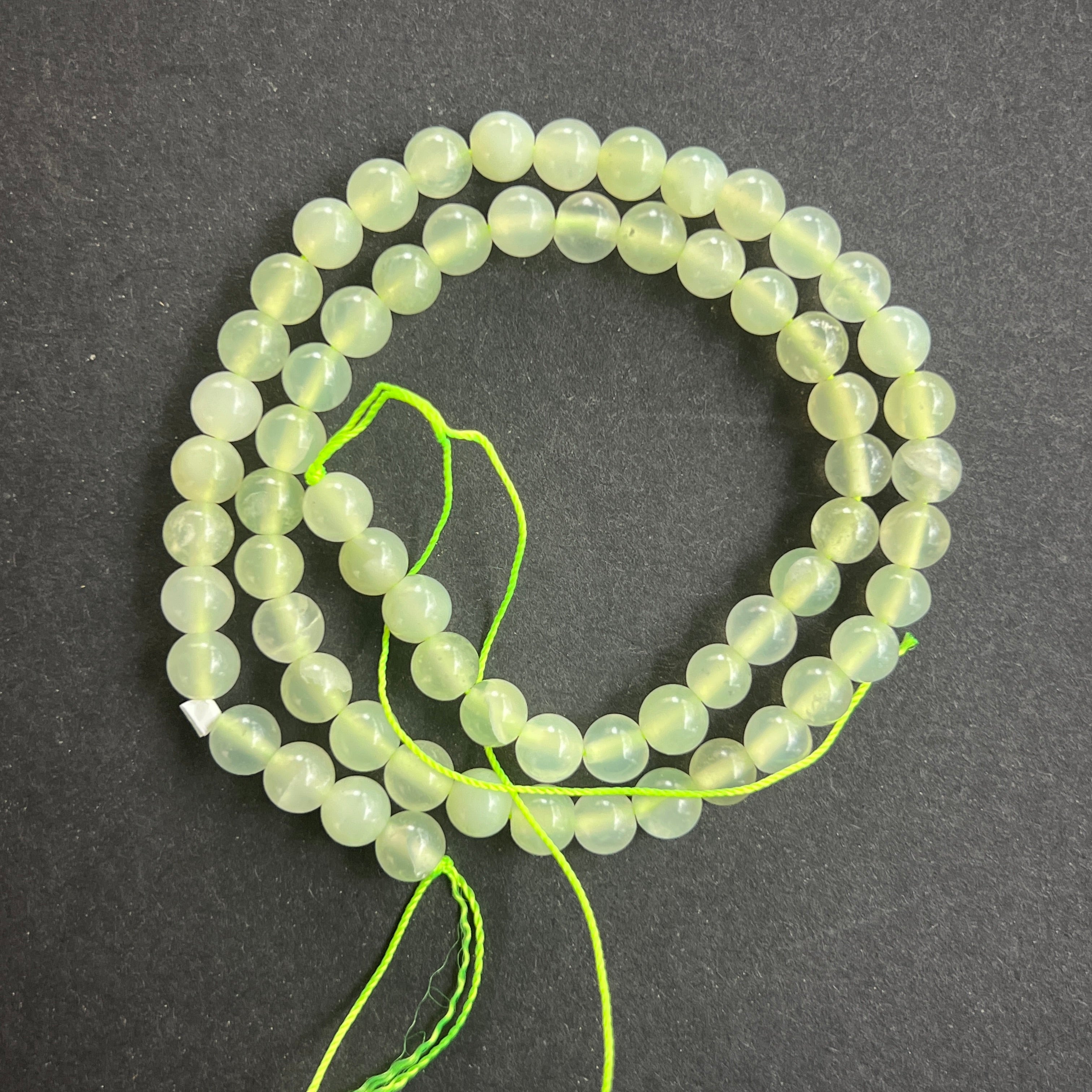 Zöld Jádé "NEW JADE" gyöngysor, amely természetes gömb alakú gyöngyökből áll, tökéletes nyakláncokhoz, karkötőkhöz vagy egyéb kézműves ékszerekhez.