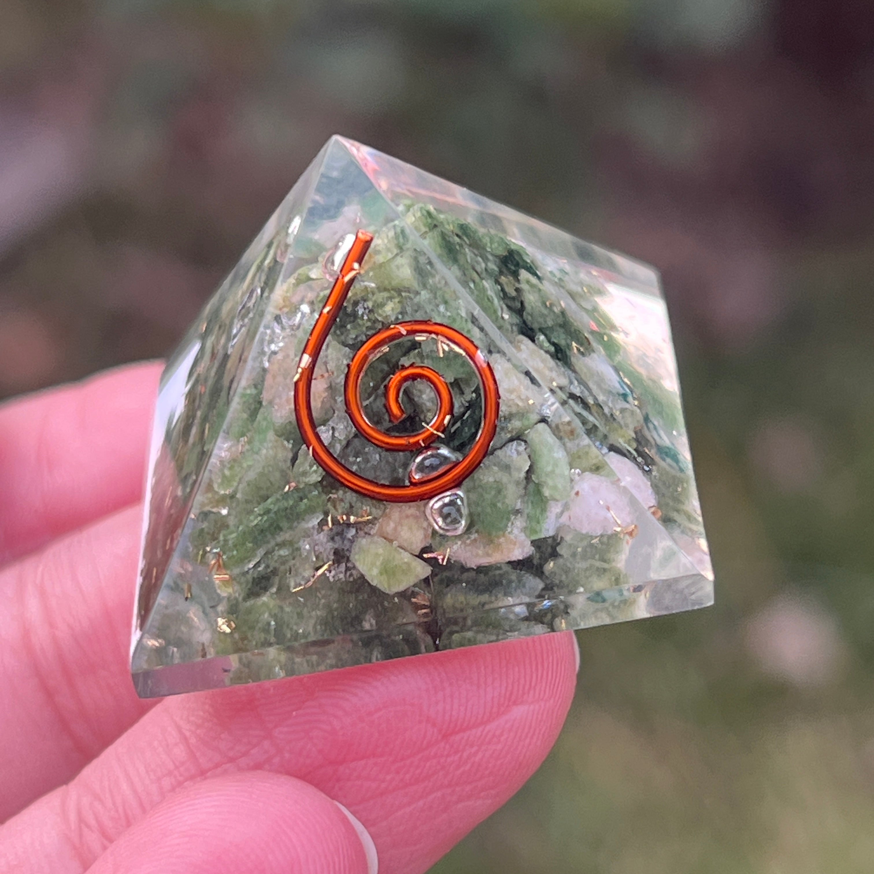 Descriere - Zöld kvarc gyanta piramis 3 cm
