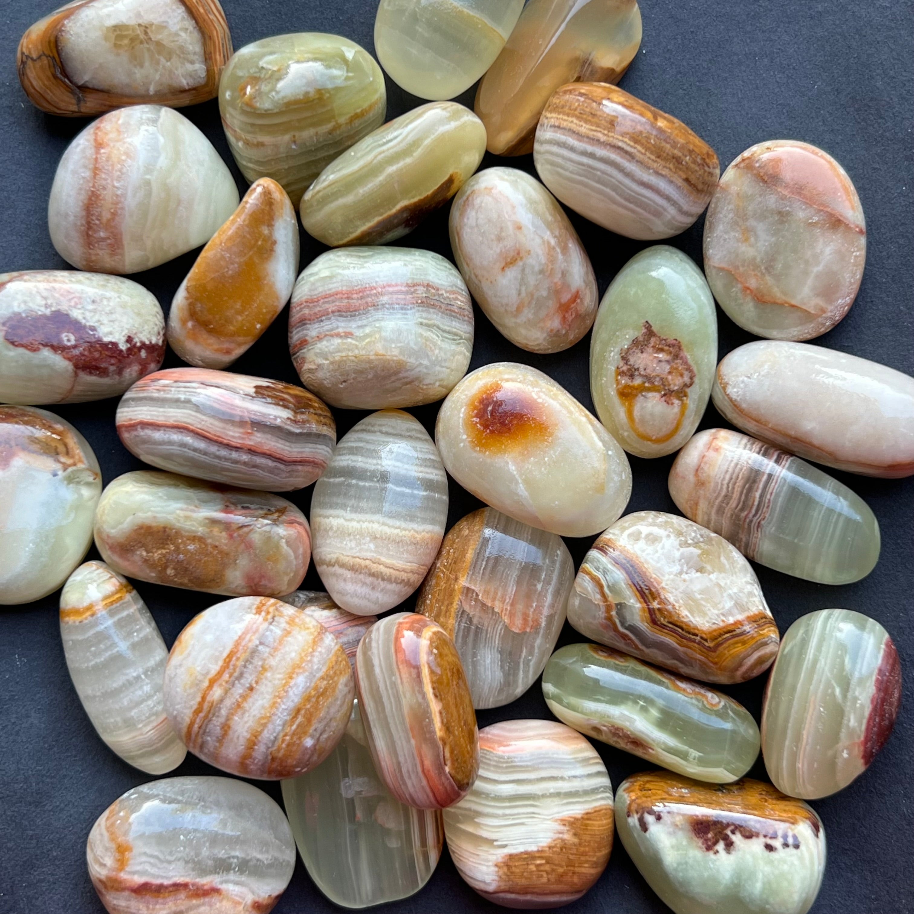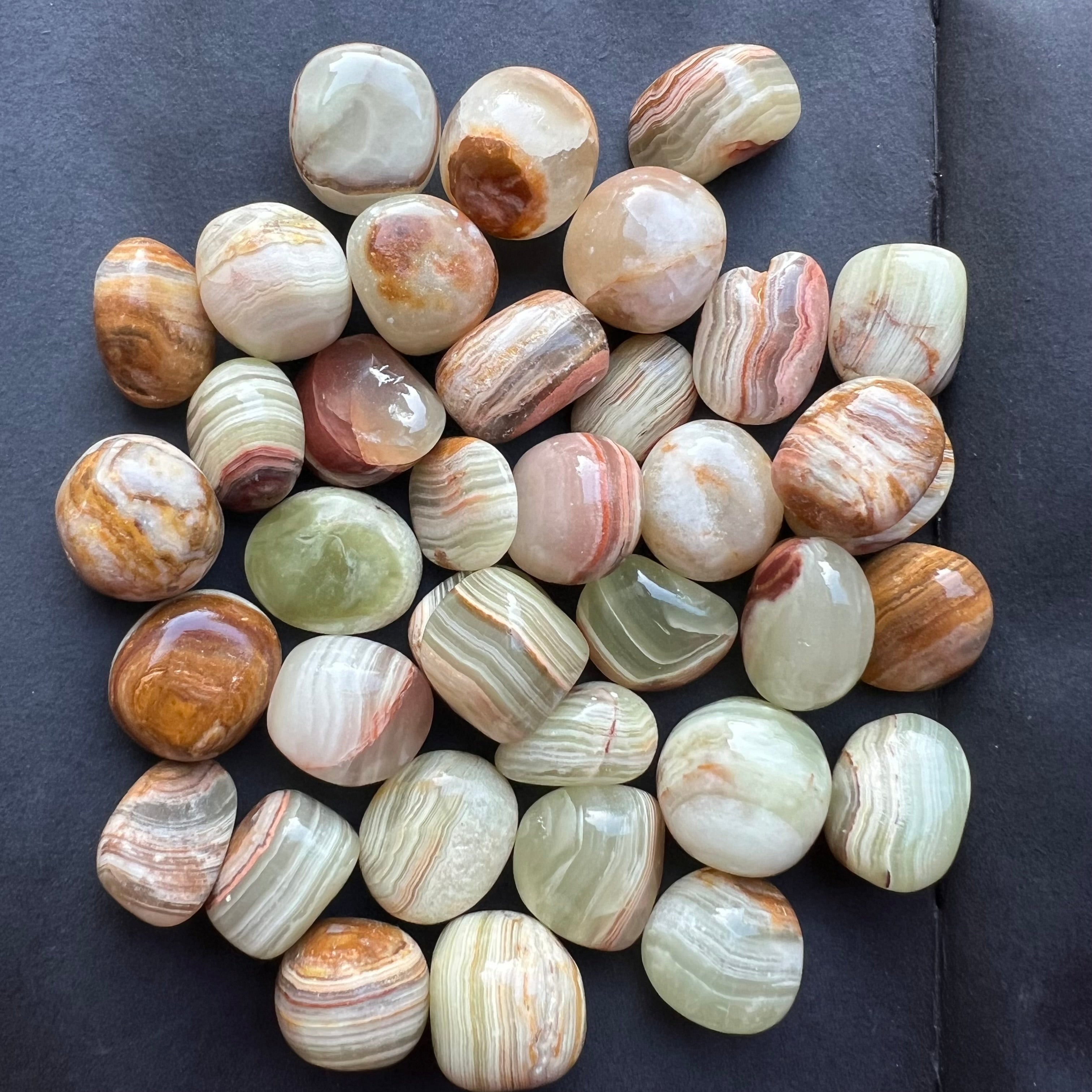 Zöld ónix aragonit hengerelt kővel
