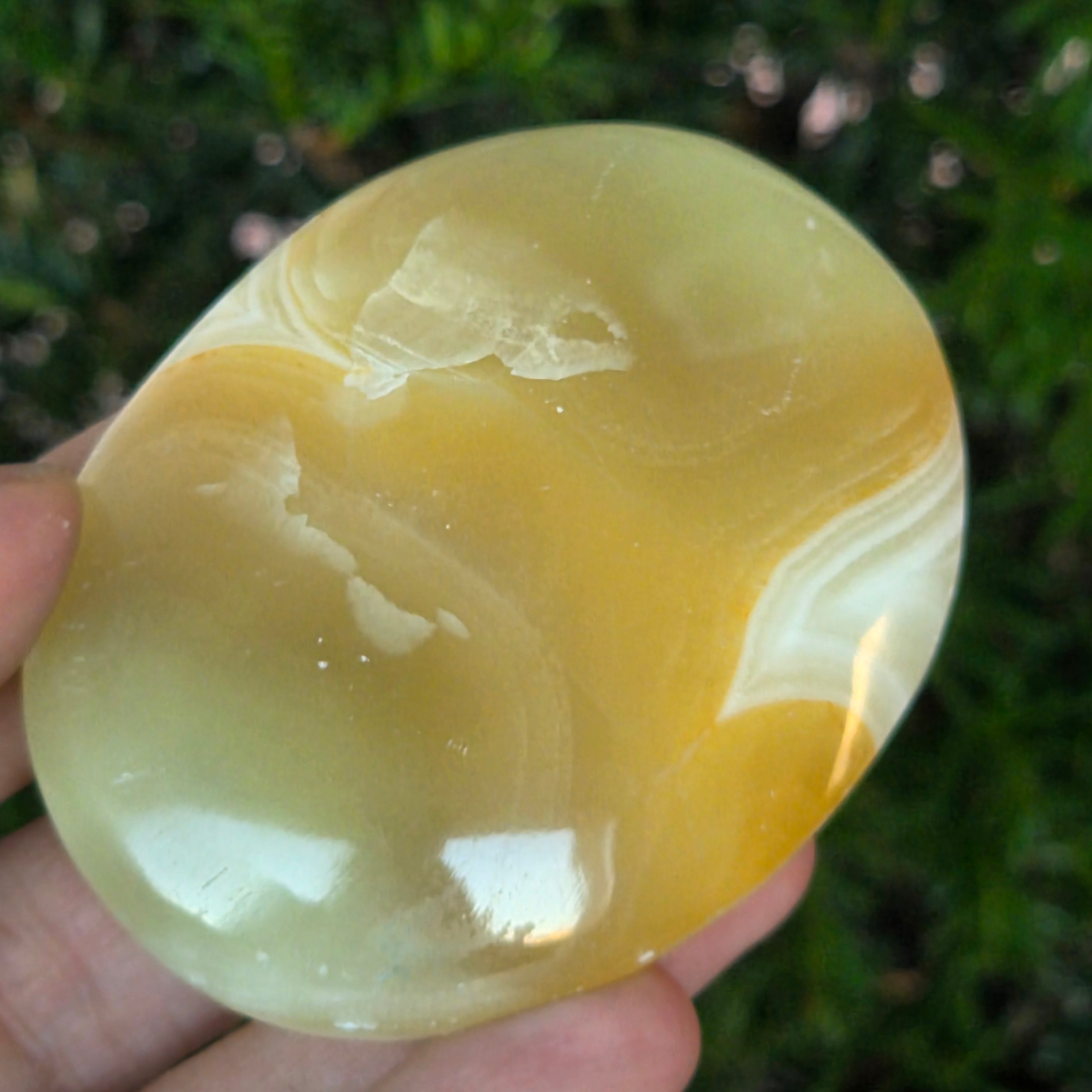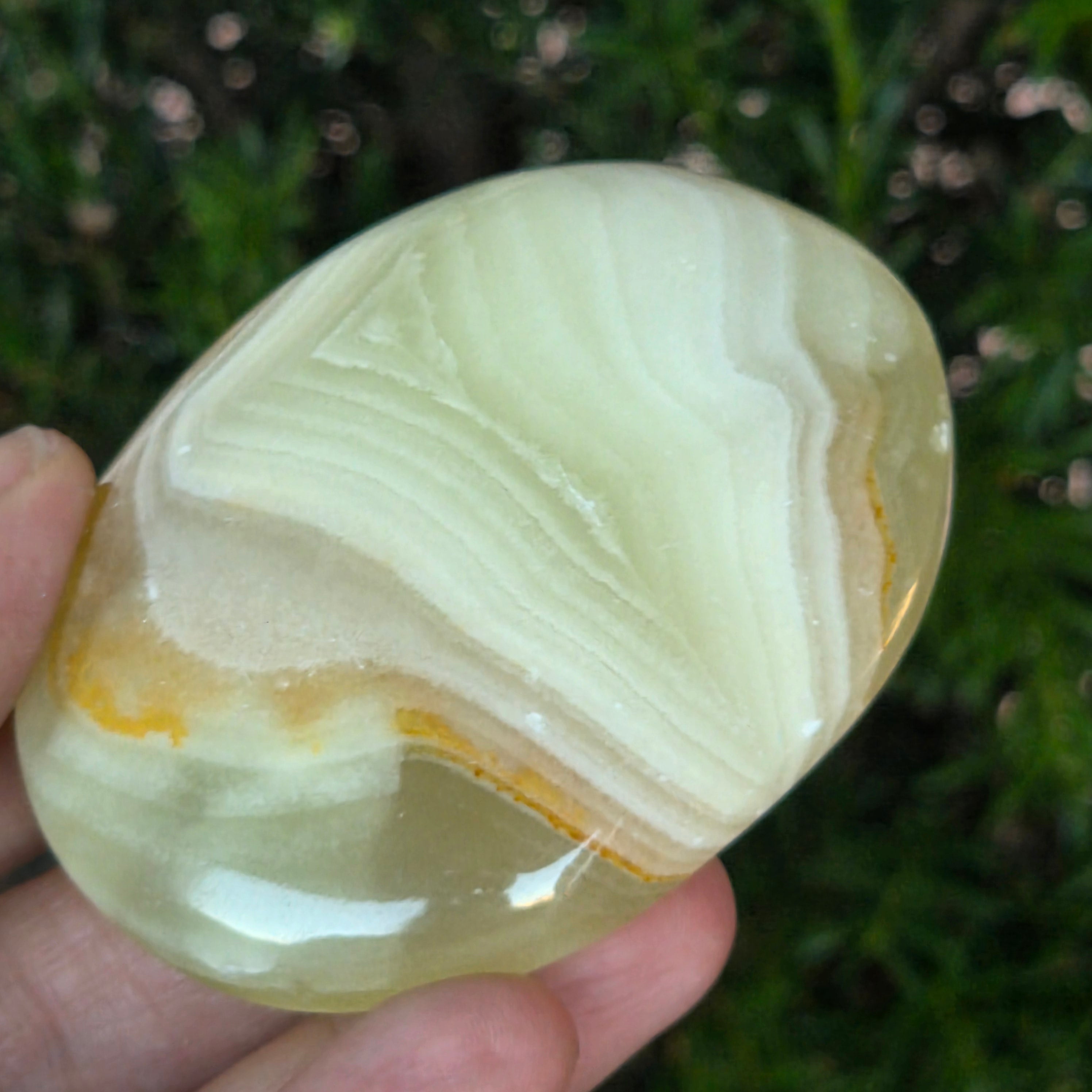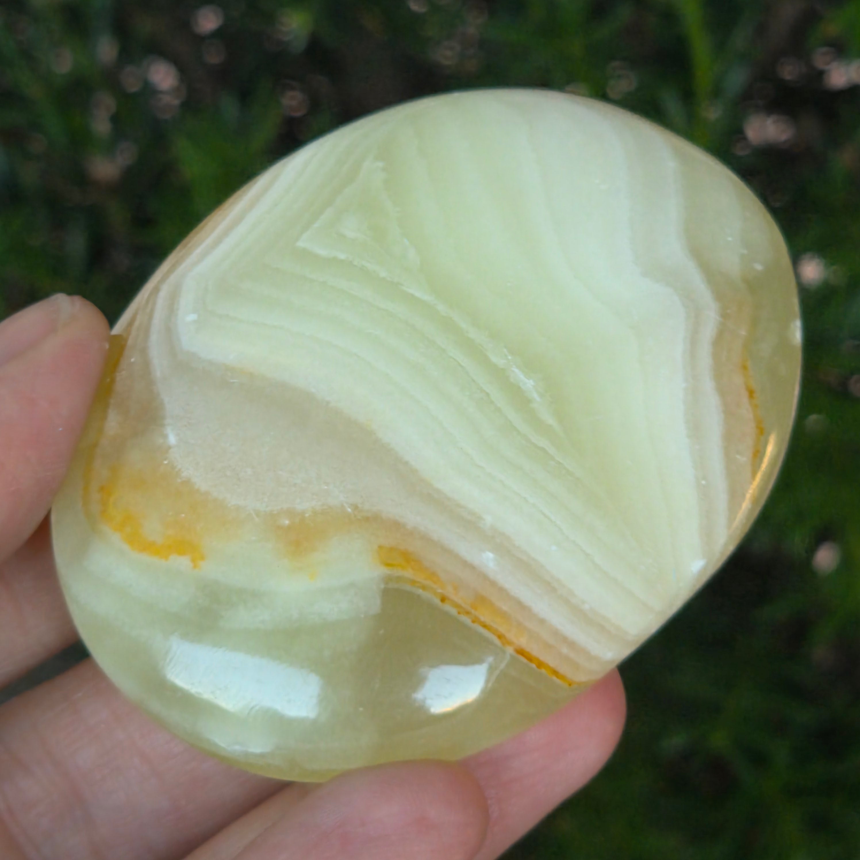 Amikor a tenyeredben tartod, ez a természetes zöld onix tenyérkő az egyensúly szövetségesévé válik, a test és a lélek harmóniájának csendes jelképe. Ideális meditációhoz, pihenéshez vagy egyszerűen gyengéd és kifinomult energiájú dekorációs tárgyként.