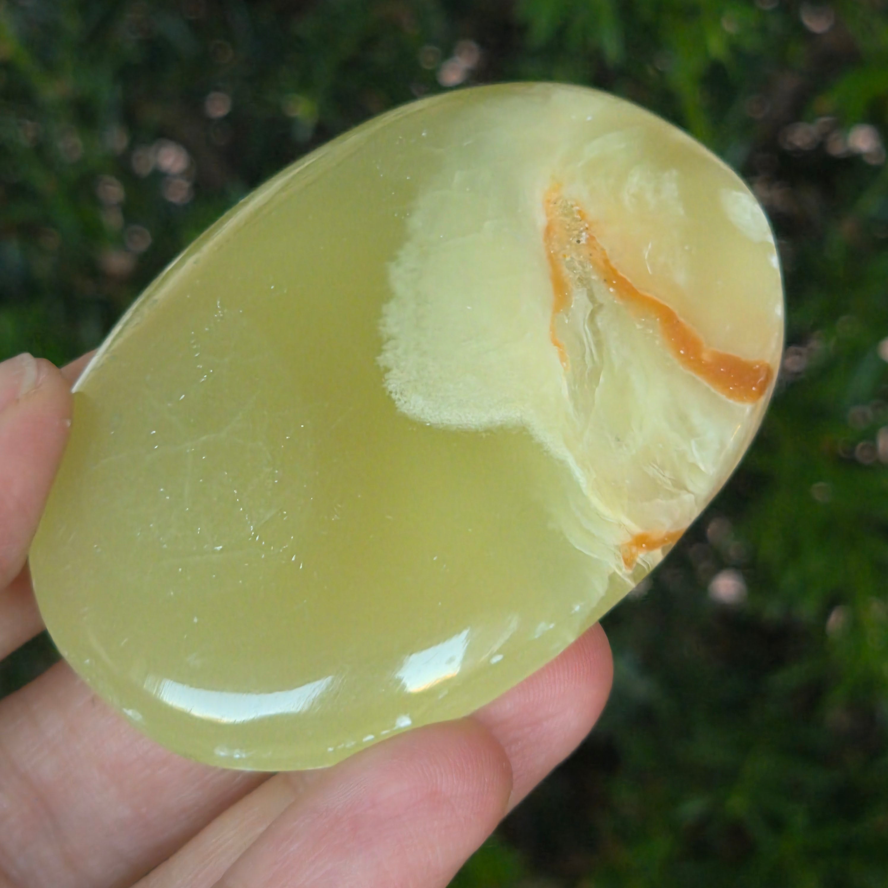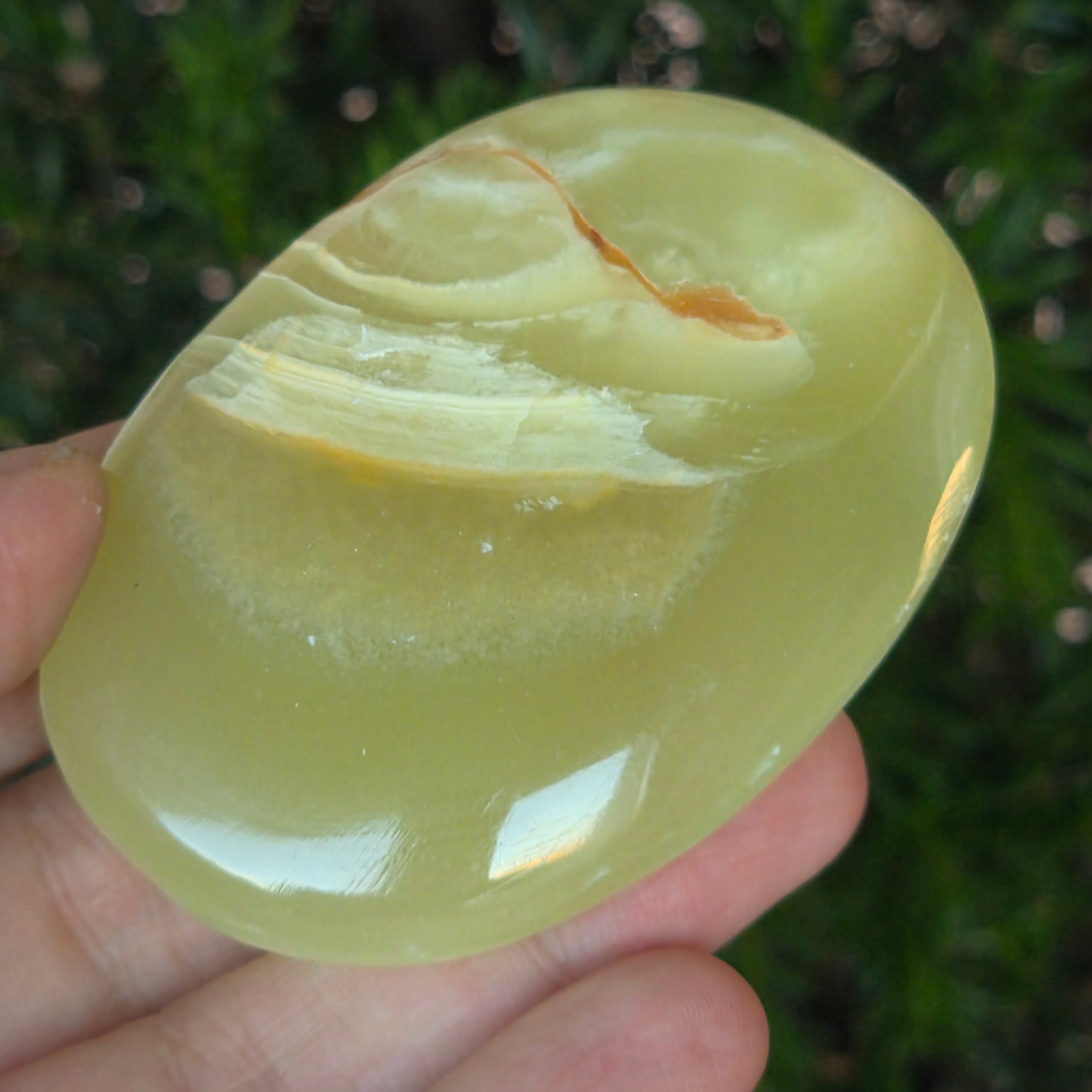 Amikor a tenyeredben tartod, ez a természetes zöld ónix tenyérkő az egyensúly szövetségesévé válik, a test és a lélek harmóniájának csendes jelképe. Ideális meditációhoz, pihenéshez vagy egyszerűen gyengéd és kifinomult energiájú dekorációs tárgyként.