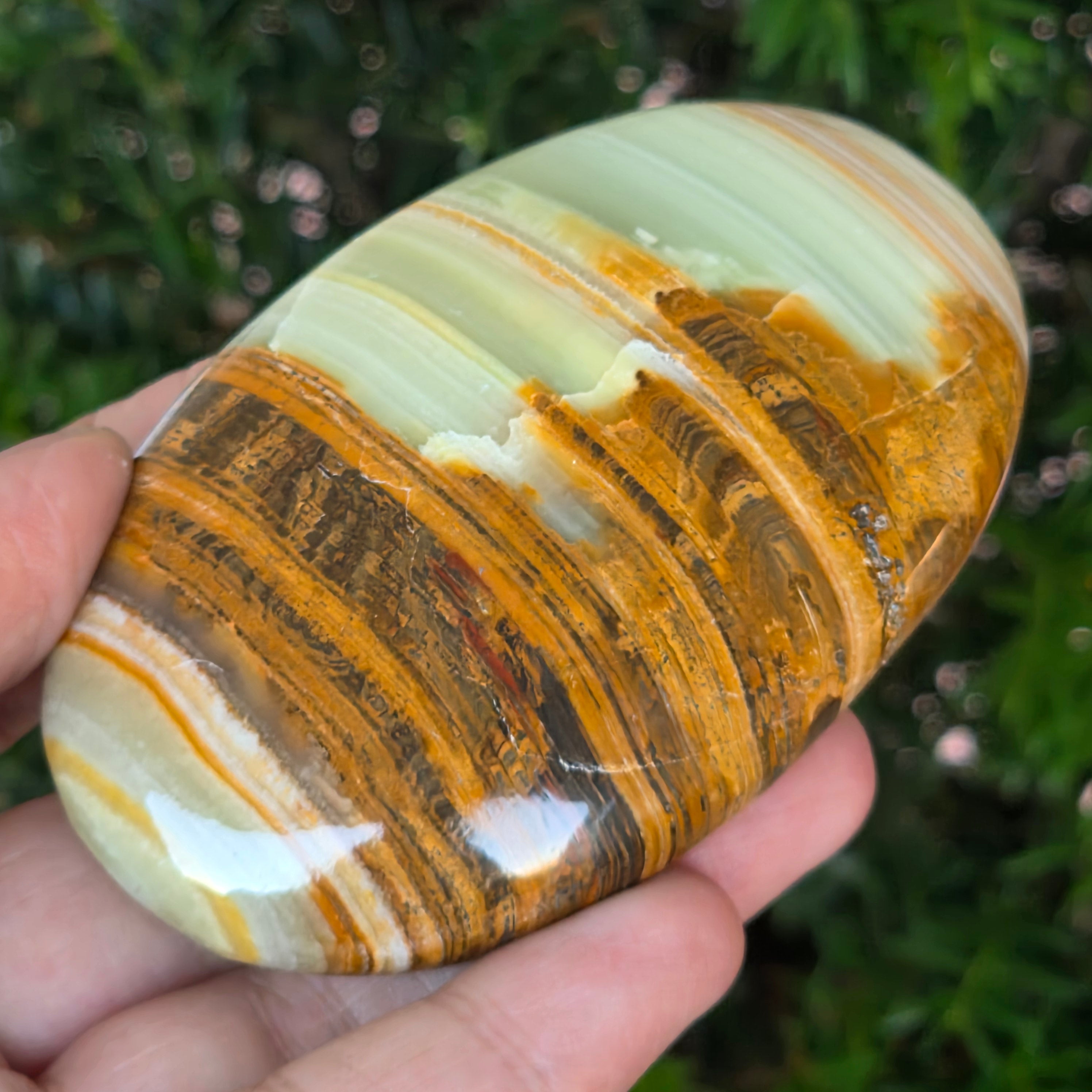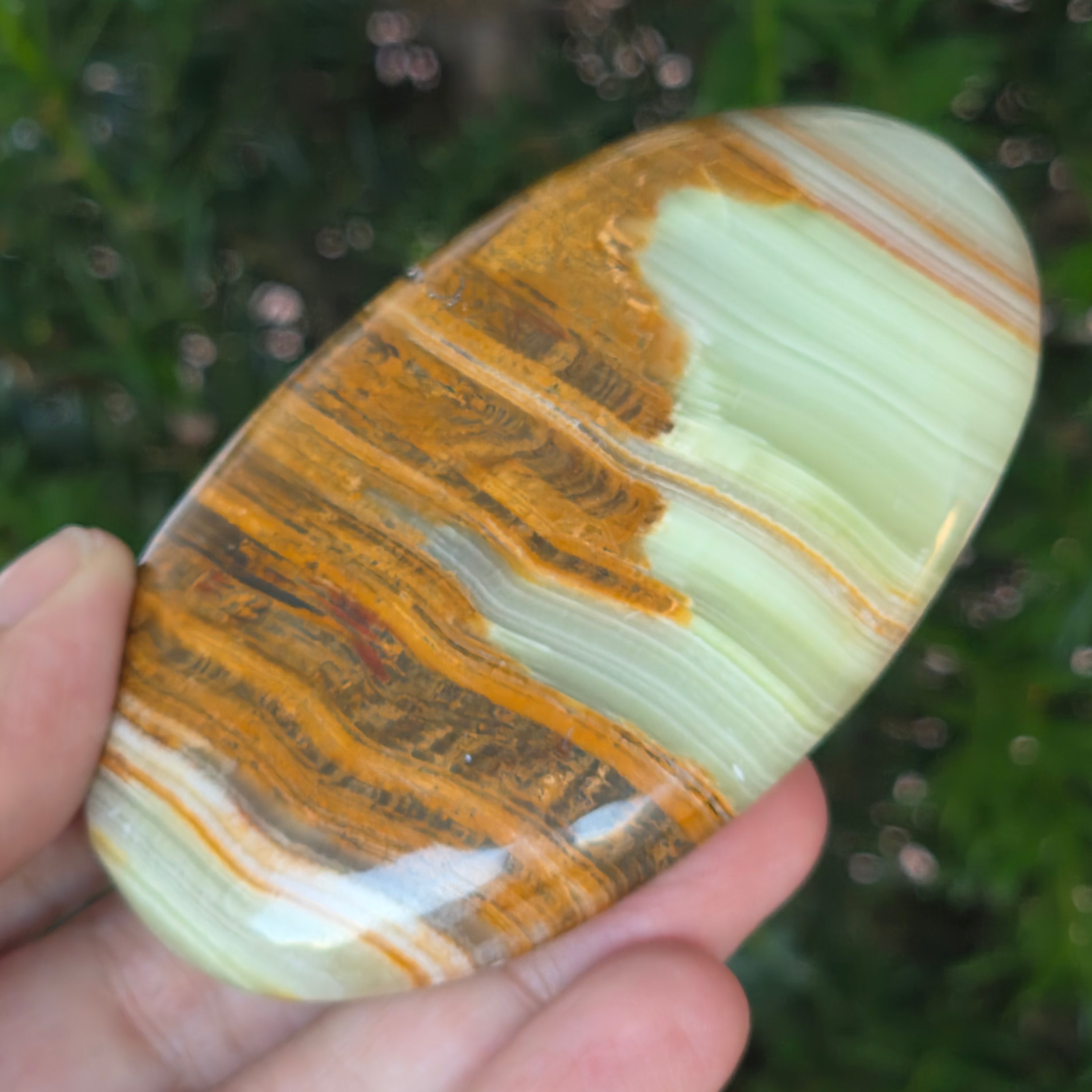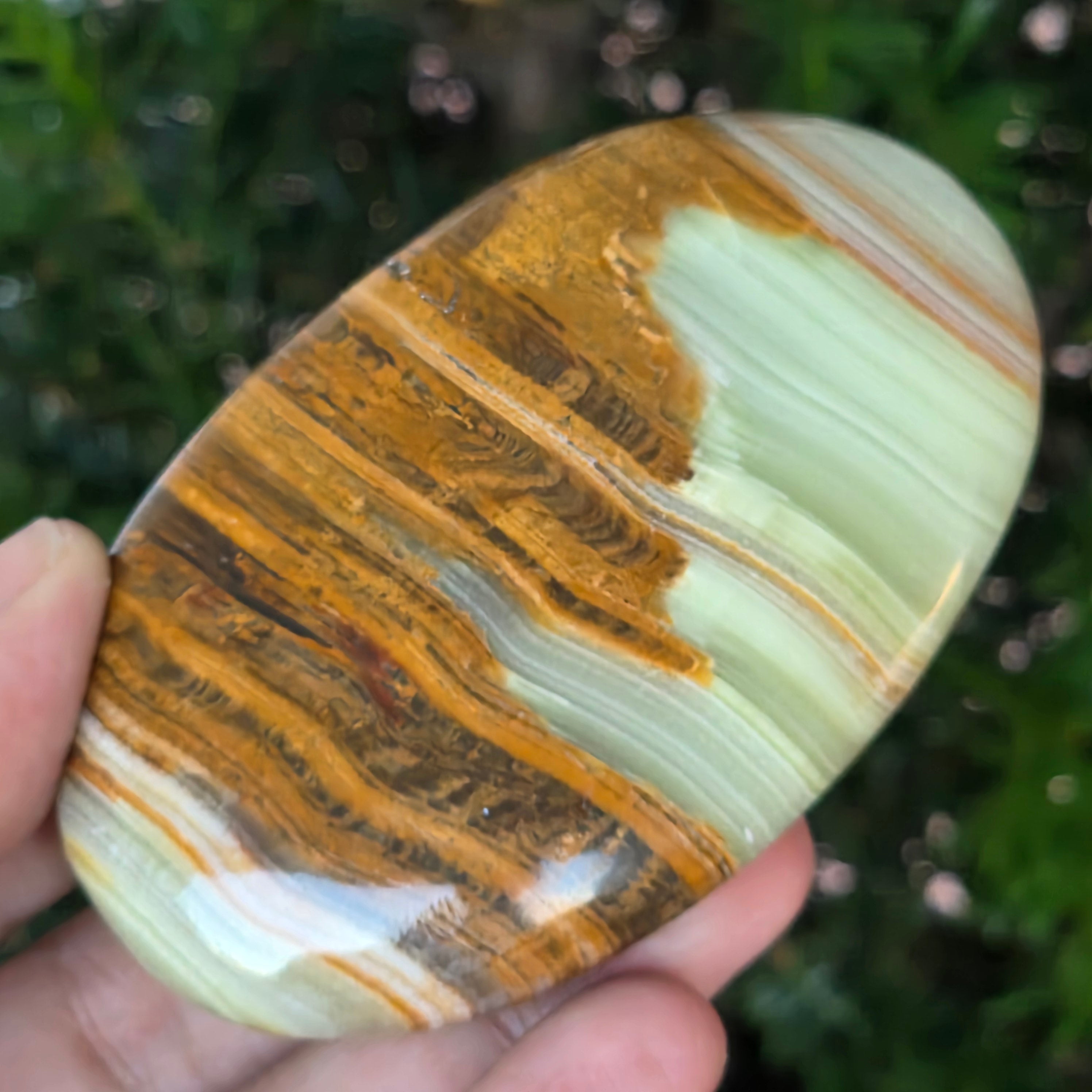 Kezed között tartva ez a természetes zöld onix tenyérkő az egyensúly szövetségese lesz, csendes emlékeztető a test és a lélek harmóniájára. Ideális meditációhoz, relaxációhoz, vagy egyszerűen mint dekoratív tárgy, amely finom és gyengéd energiával rendelkezik.