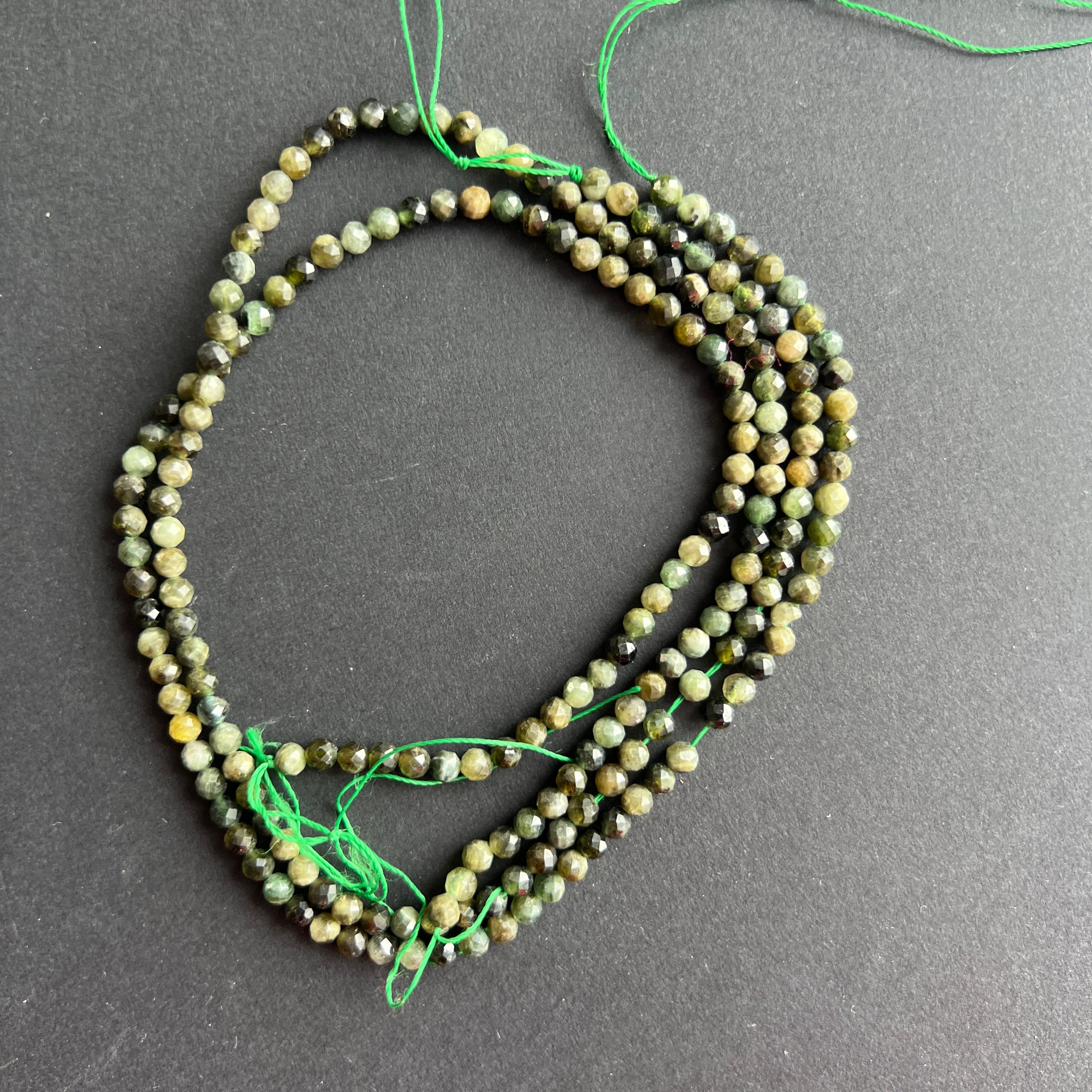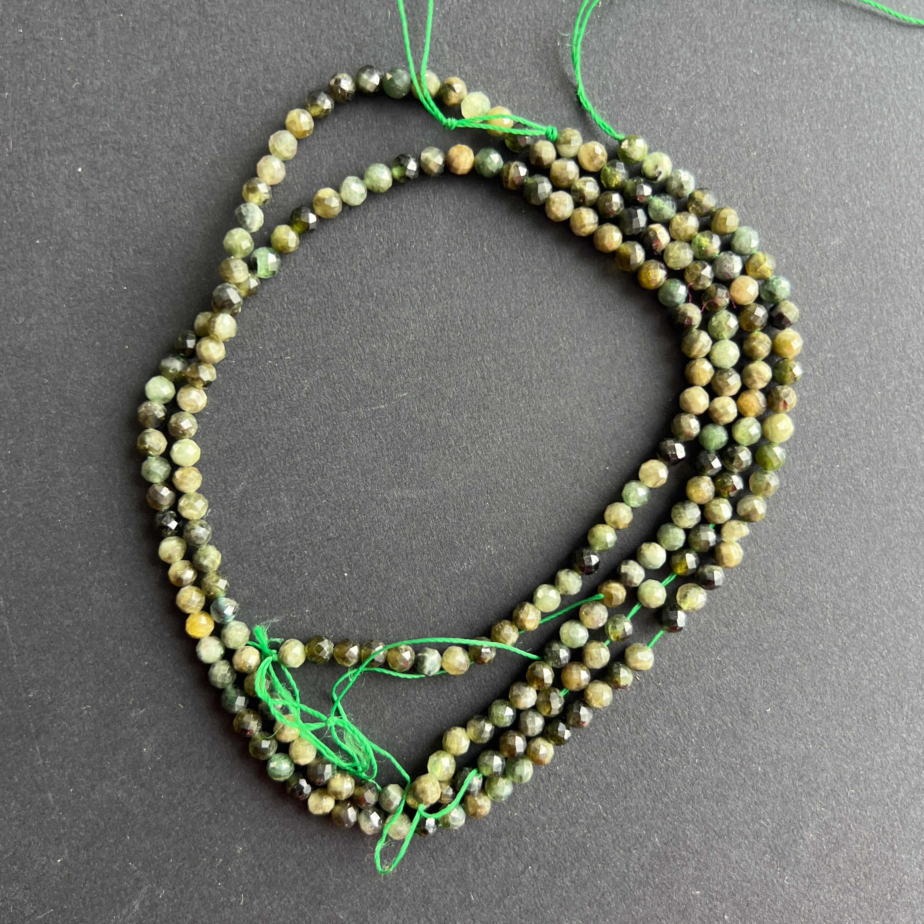 Zöld turmalin csiszolt félköves gyöngyök füzére