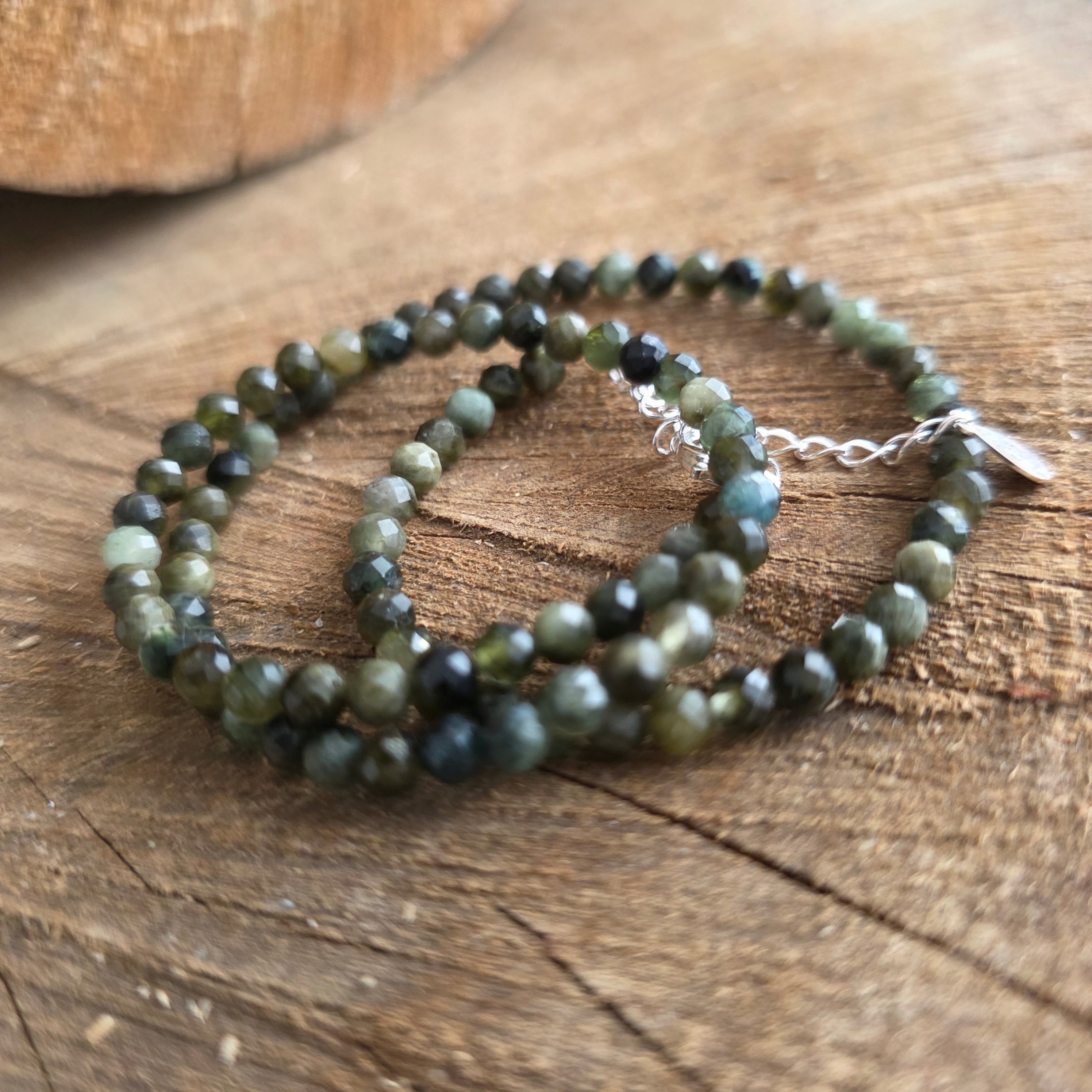 Anyagok: 2 mm-es természetes csiszolt zöld turmalin, 925-ös ezüst
