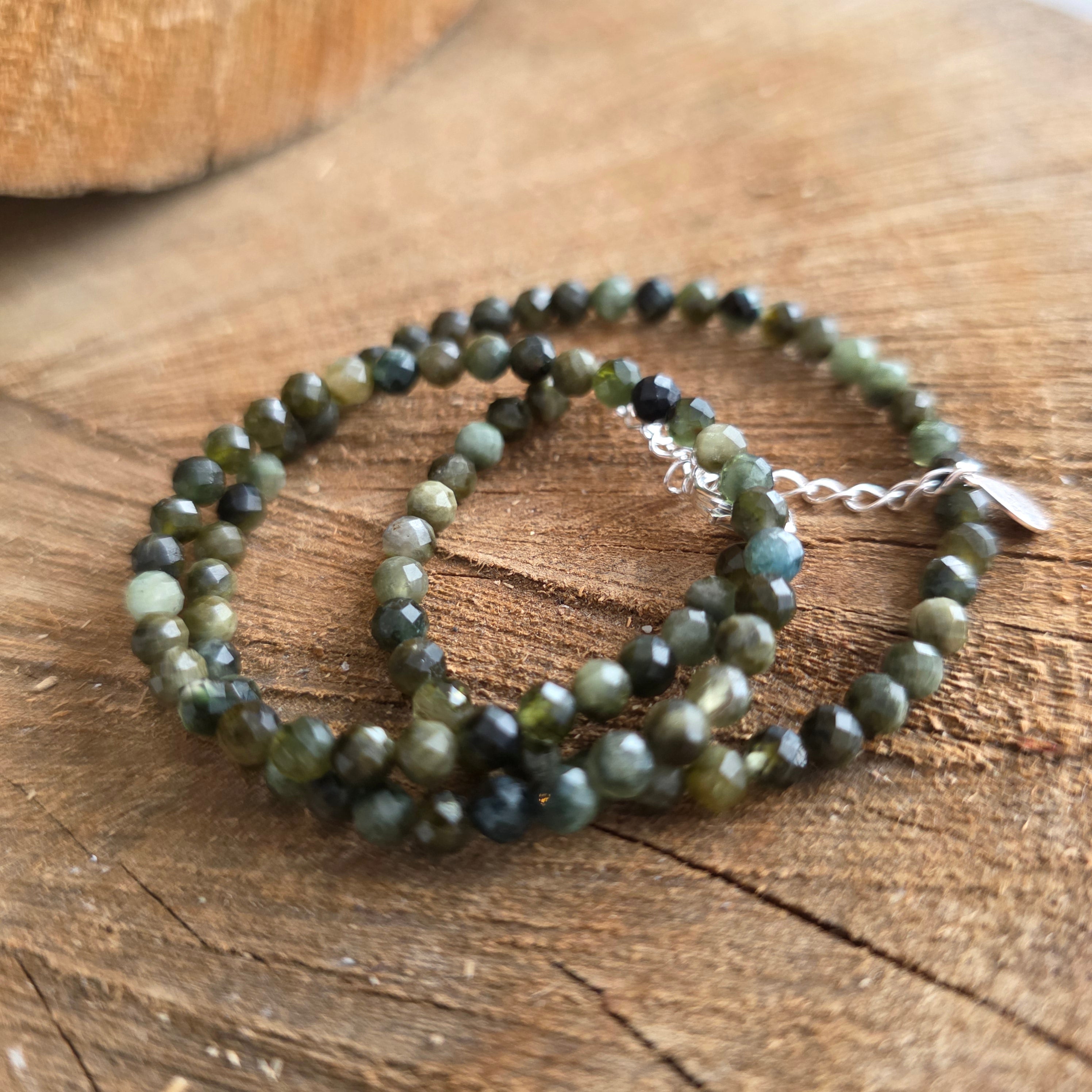 Egy nyaklánc, amely az erőt a sokszínűség szépségével ötvözi. 2 mm-es természetes csiszolt turmalin felfedi a földszínek és pasztell árnyalatok szimfóniáját, akárcsak egy őszi kertet, amelyet a fény ragyogásában látunk. Finoman csiszolt felületei minden árnyalatot visszatükröznek, kifinomult, élettel teli megjelenést kölcsönözve a nyakláncnak.