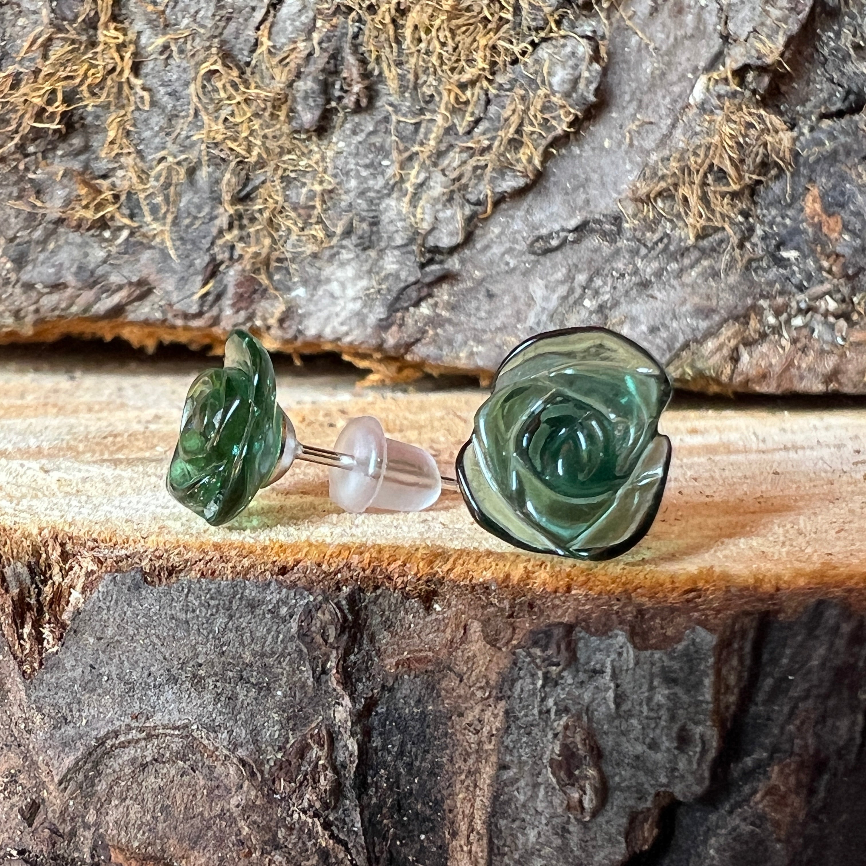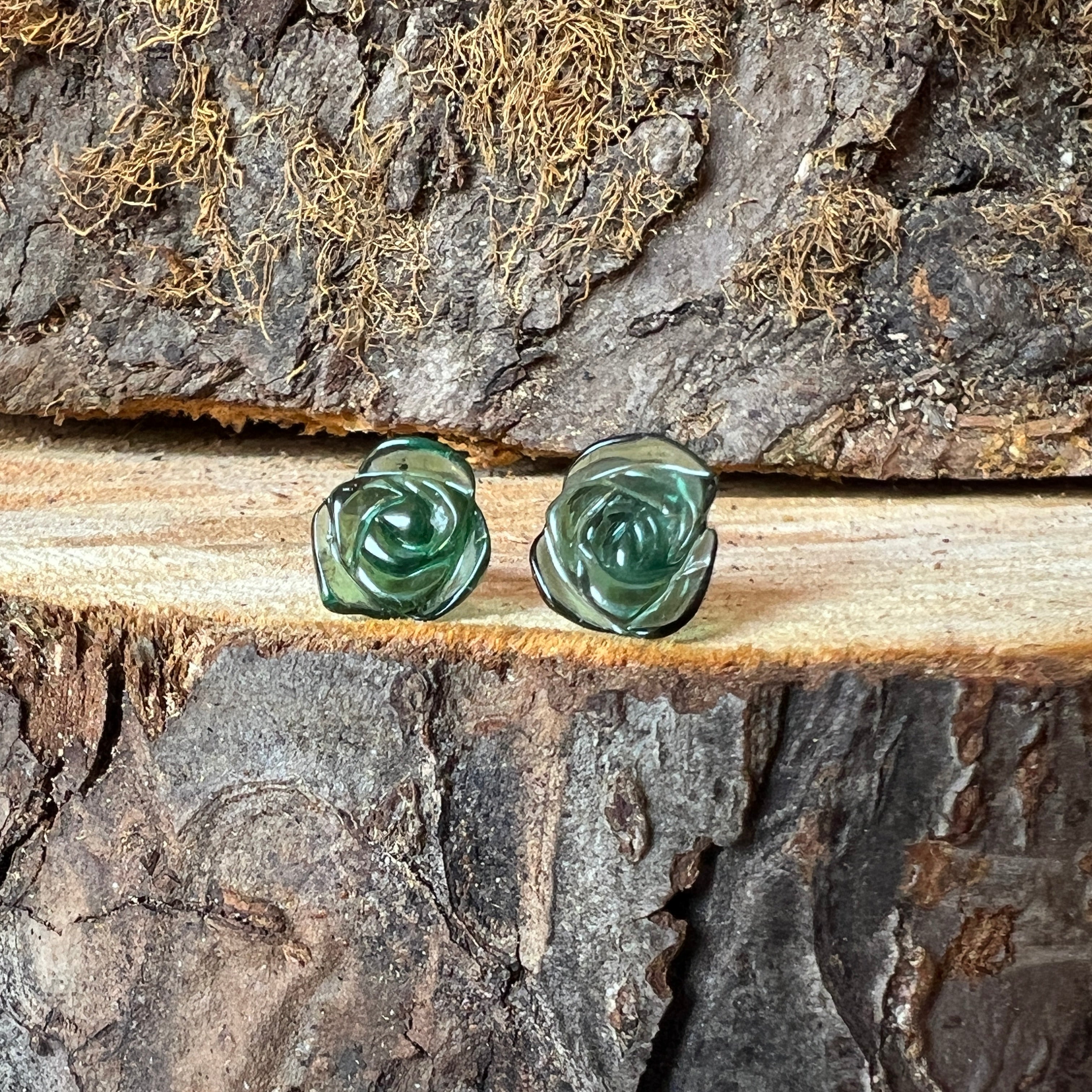 Zöld turmalin stift fülbevaló ezüstből, Flower#1 modell