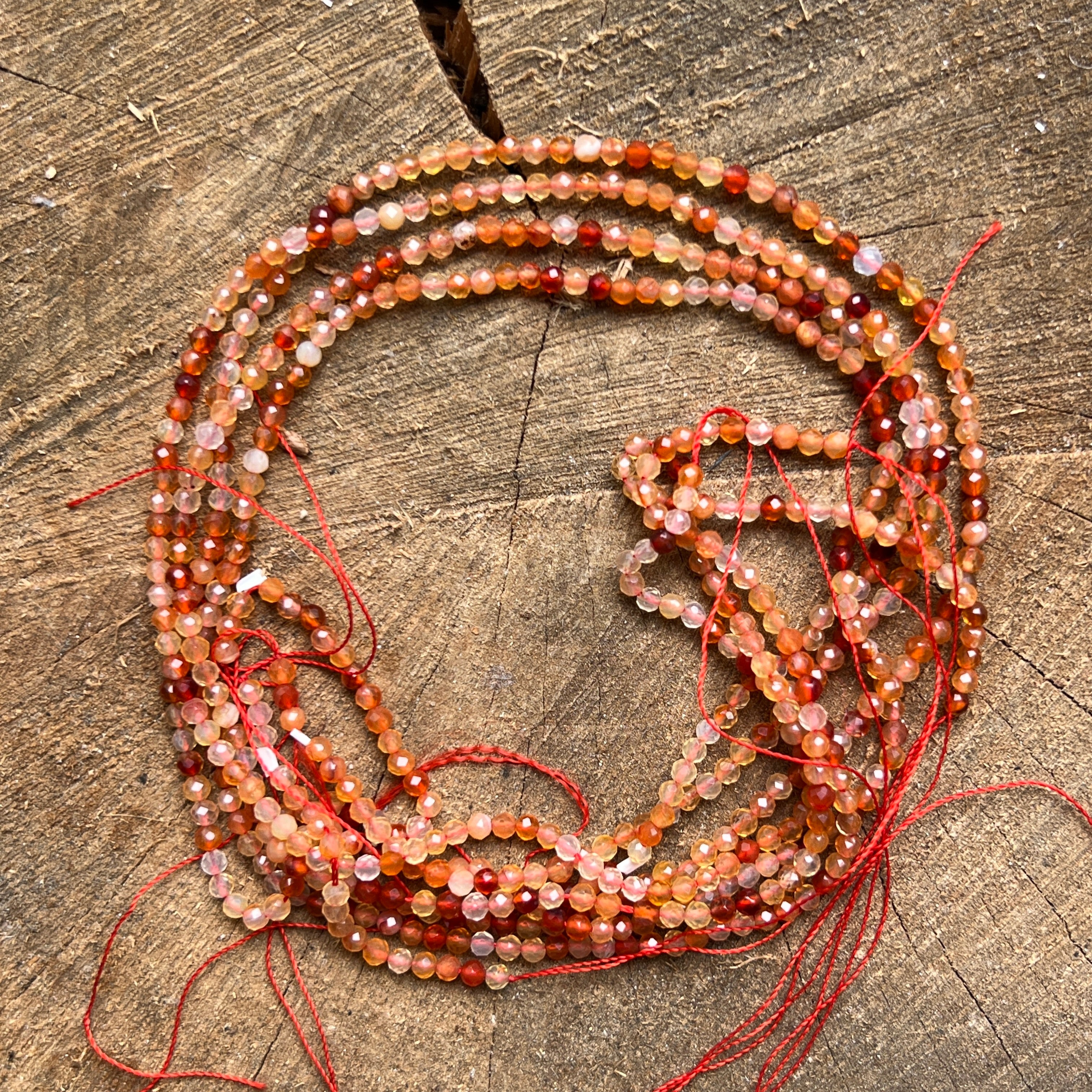 Karneol húr, amelyből áll természetes FACETED gömbgyöngyök, tökéletes nyaklánchoz, karkötőhöz vagy más kézzel készített ékszerhez.