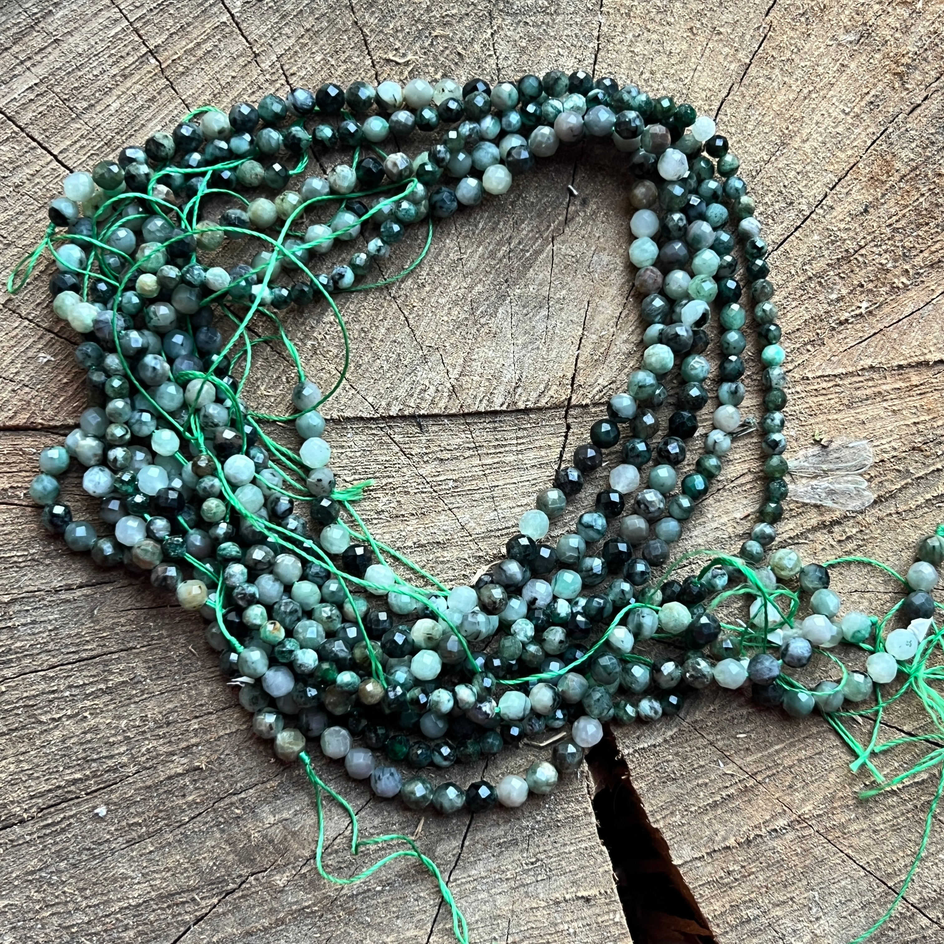 Smaragd nyaklánc, amelyből áll természetes FACETED gömbgyöngyök, tökéletes nyaklánchoz, karkötőhöz vagy más kézzel készített ékszerhez.